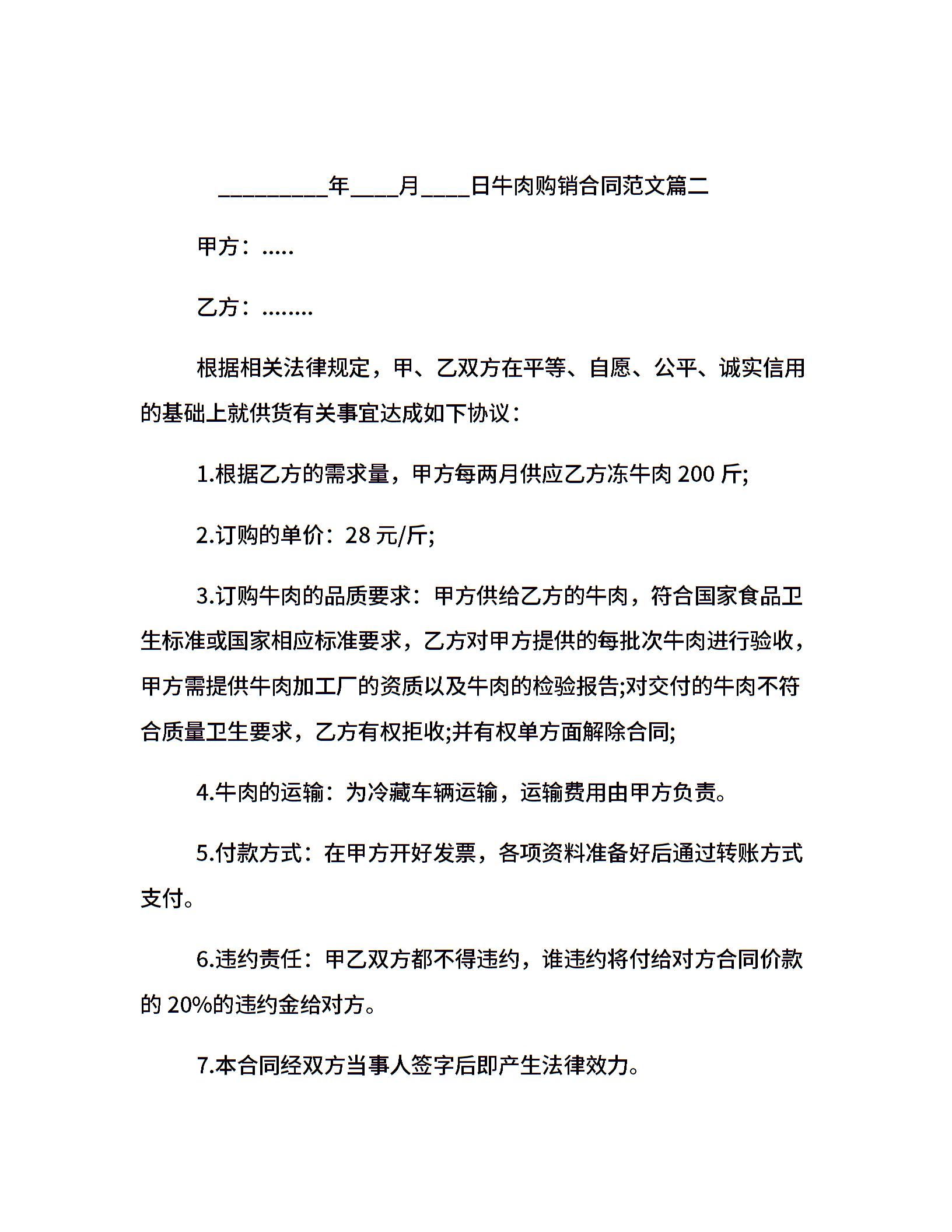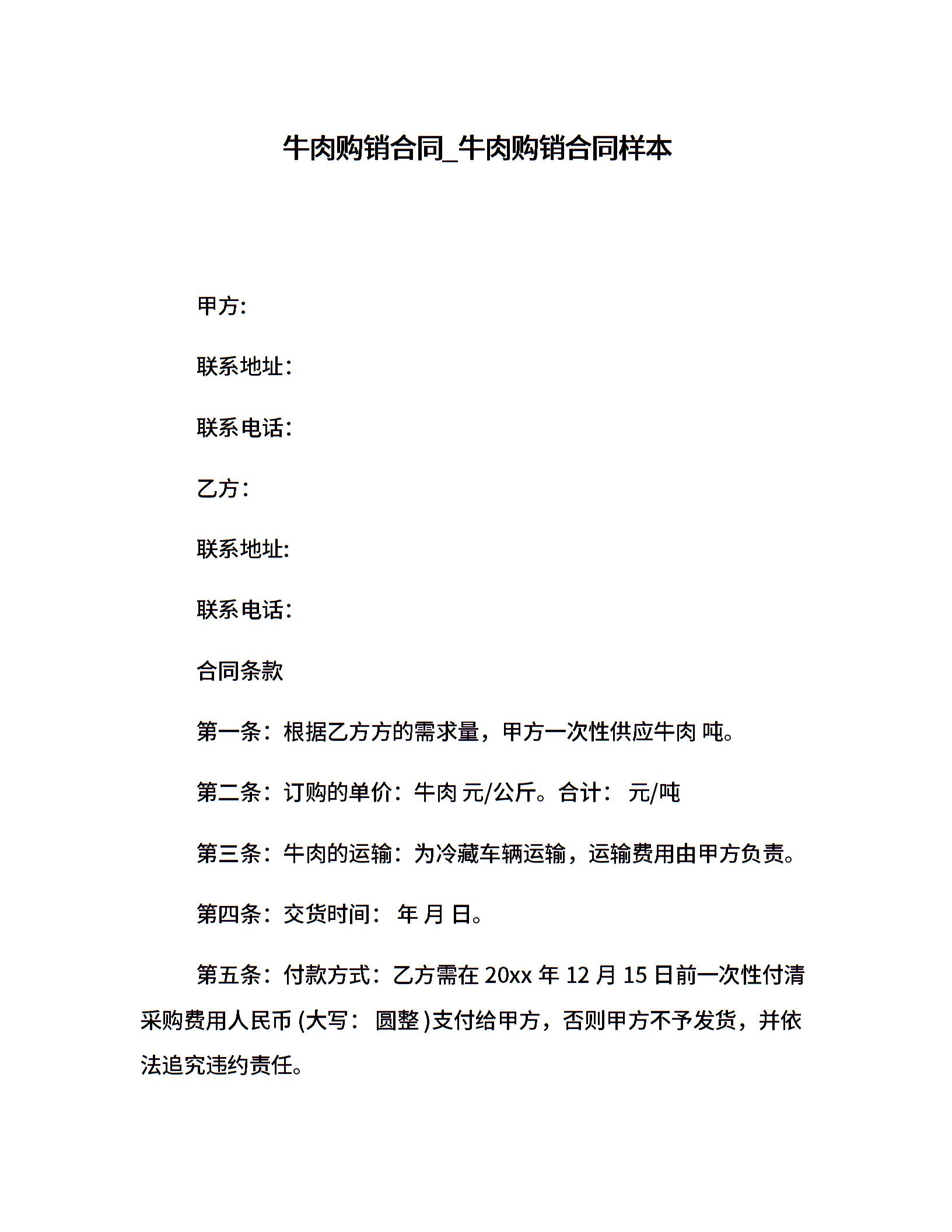 牛肉购销合同_牛肉购销合同样本