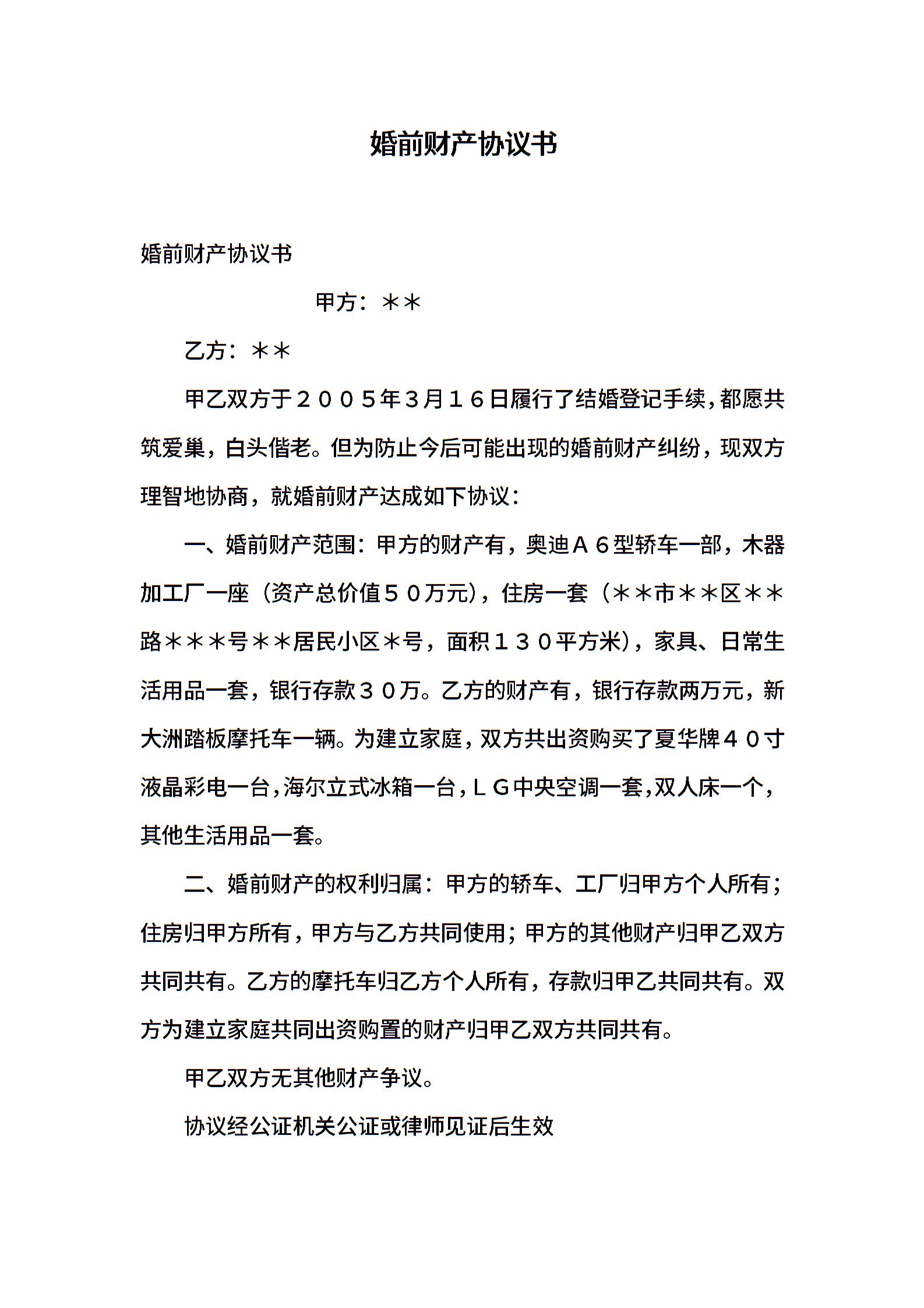 婚前财产协议书