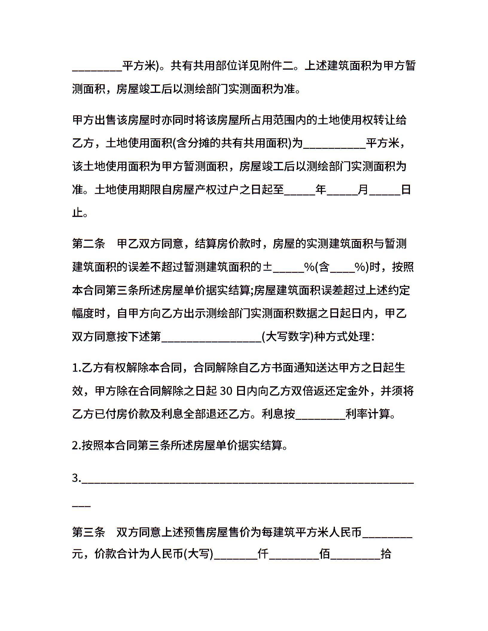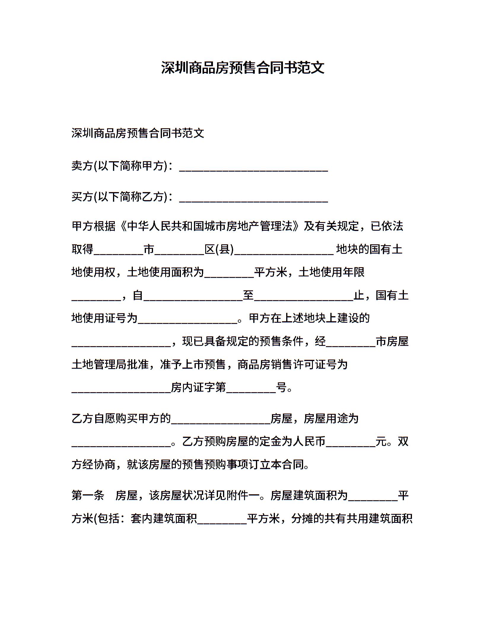 深圳商品房预售合同书范文