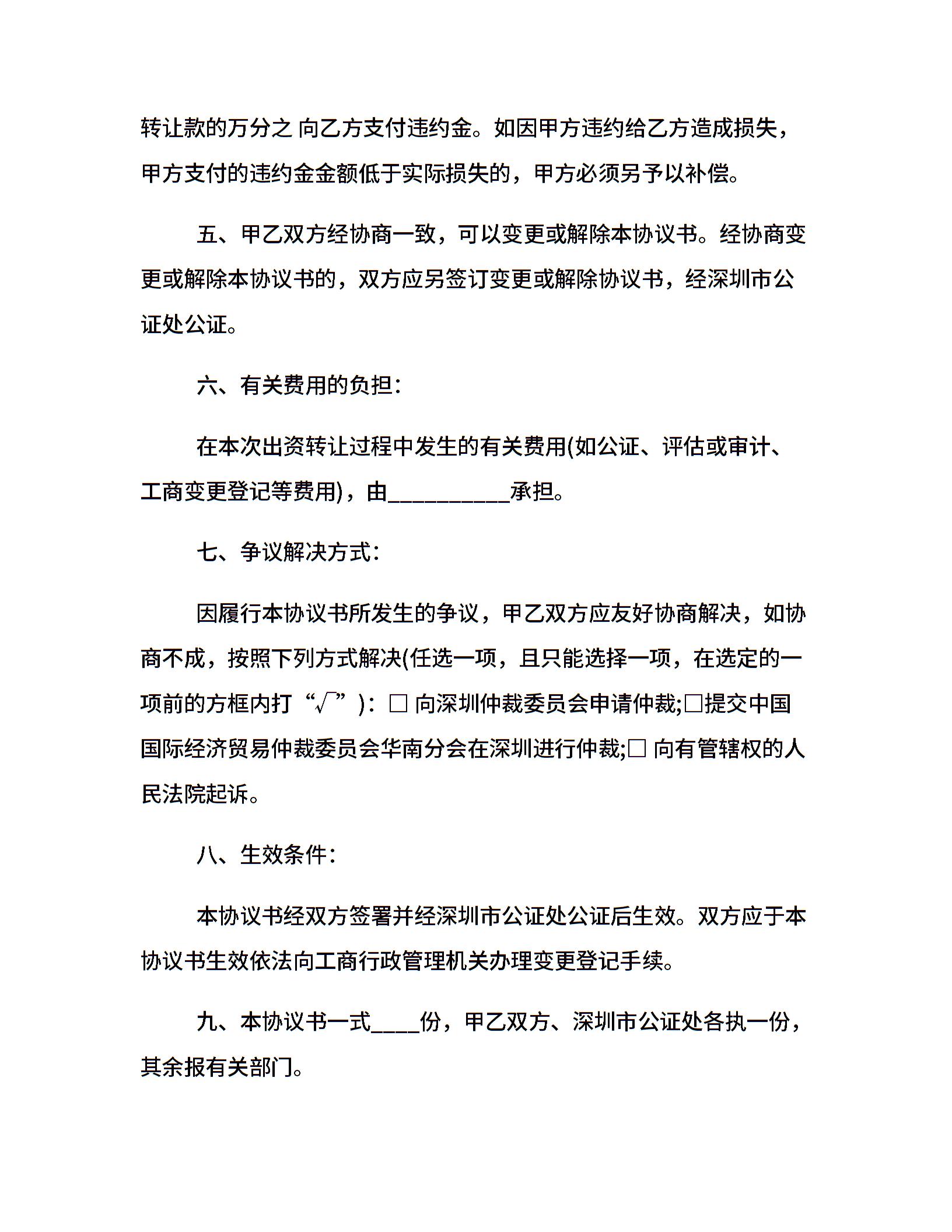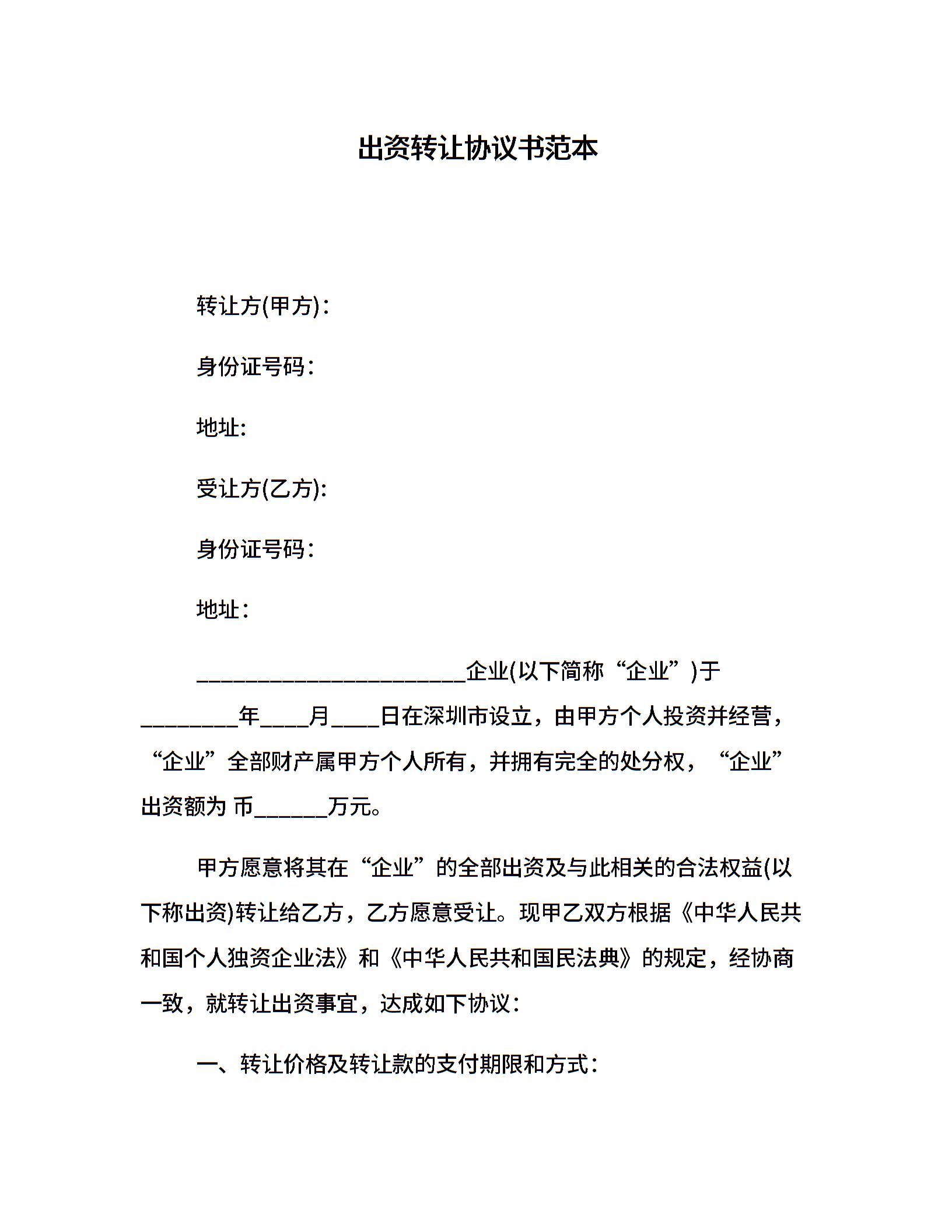 出资转让协议书范本