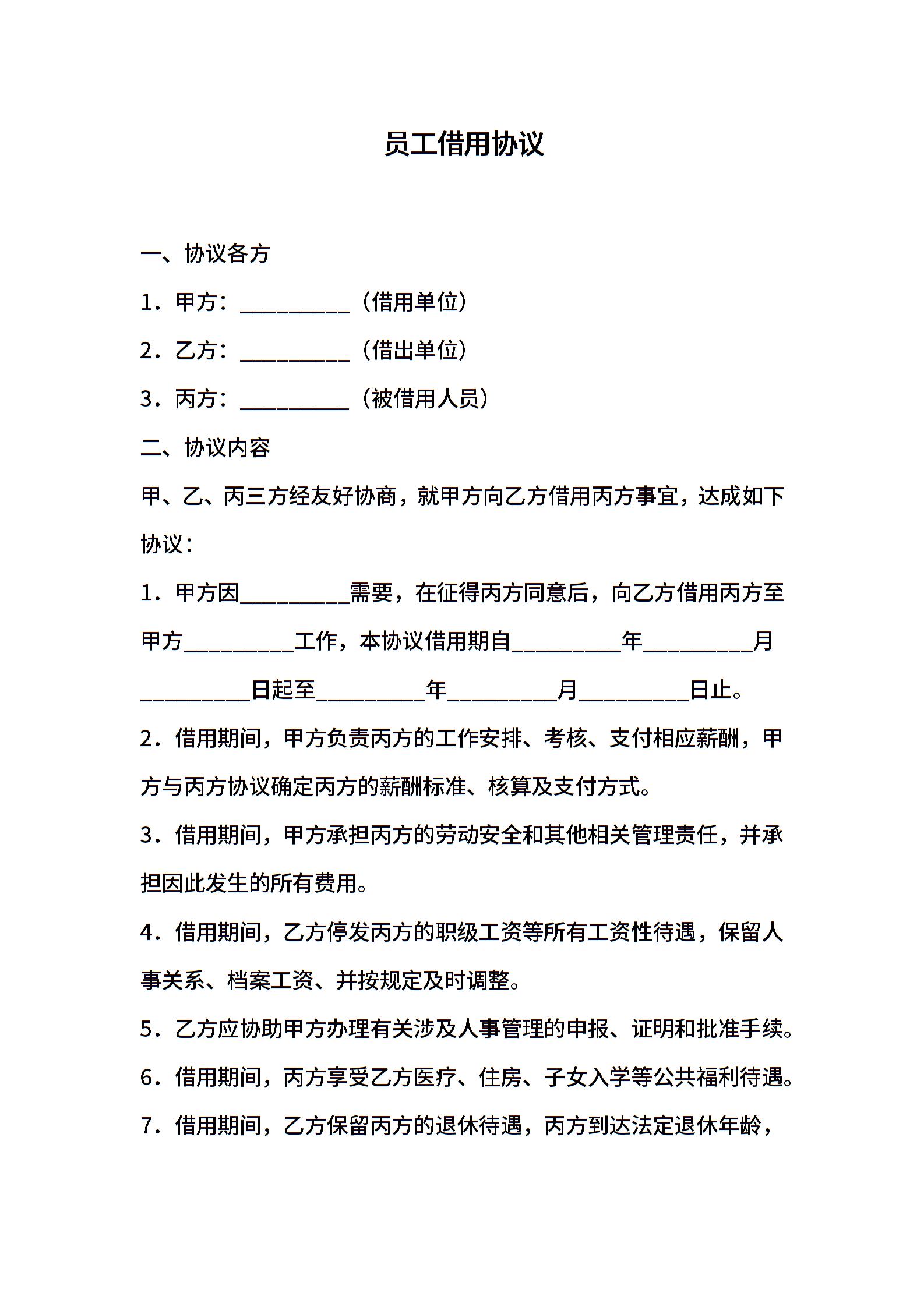 员工借用协议