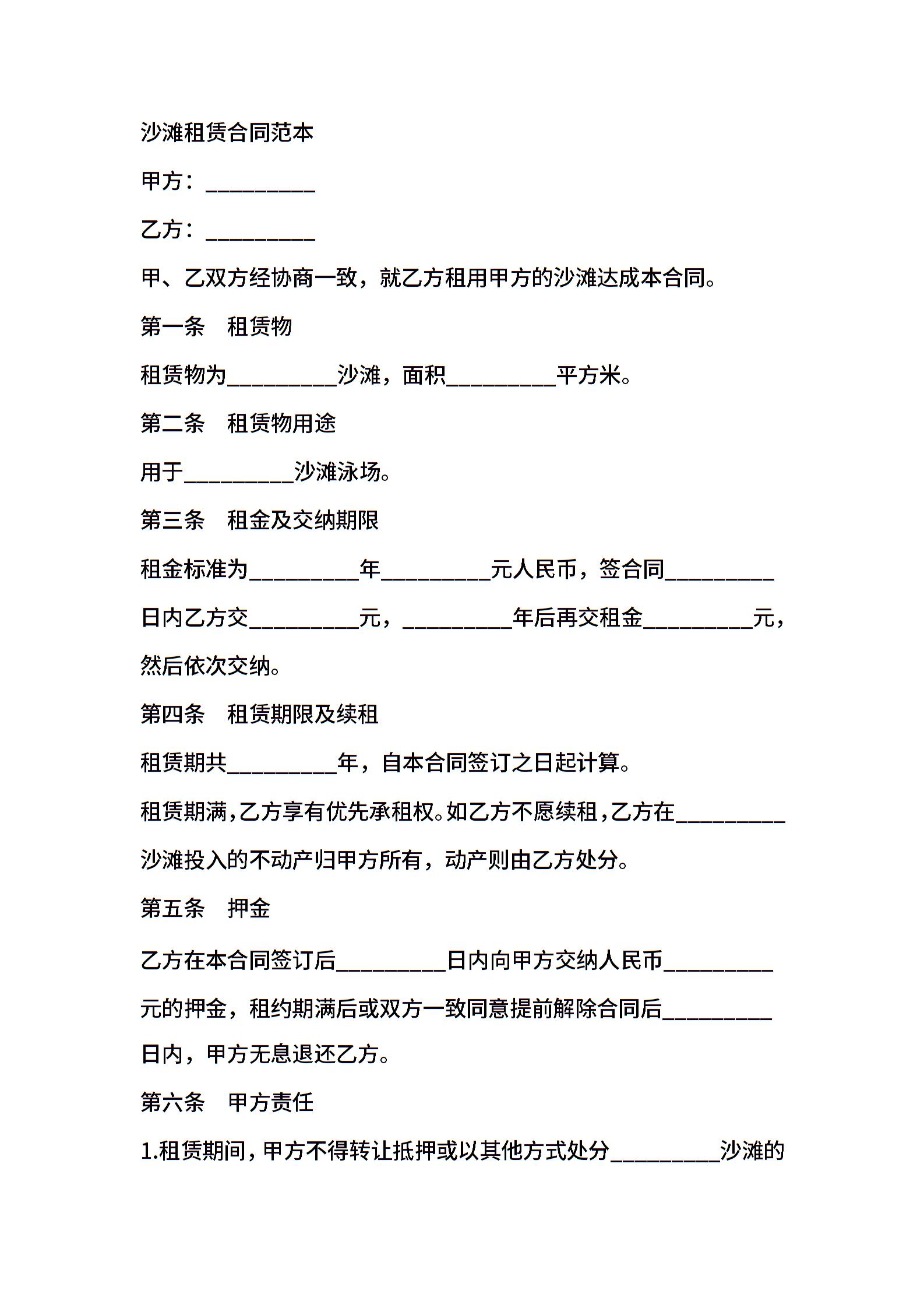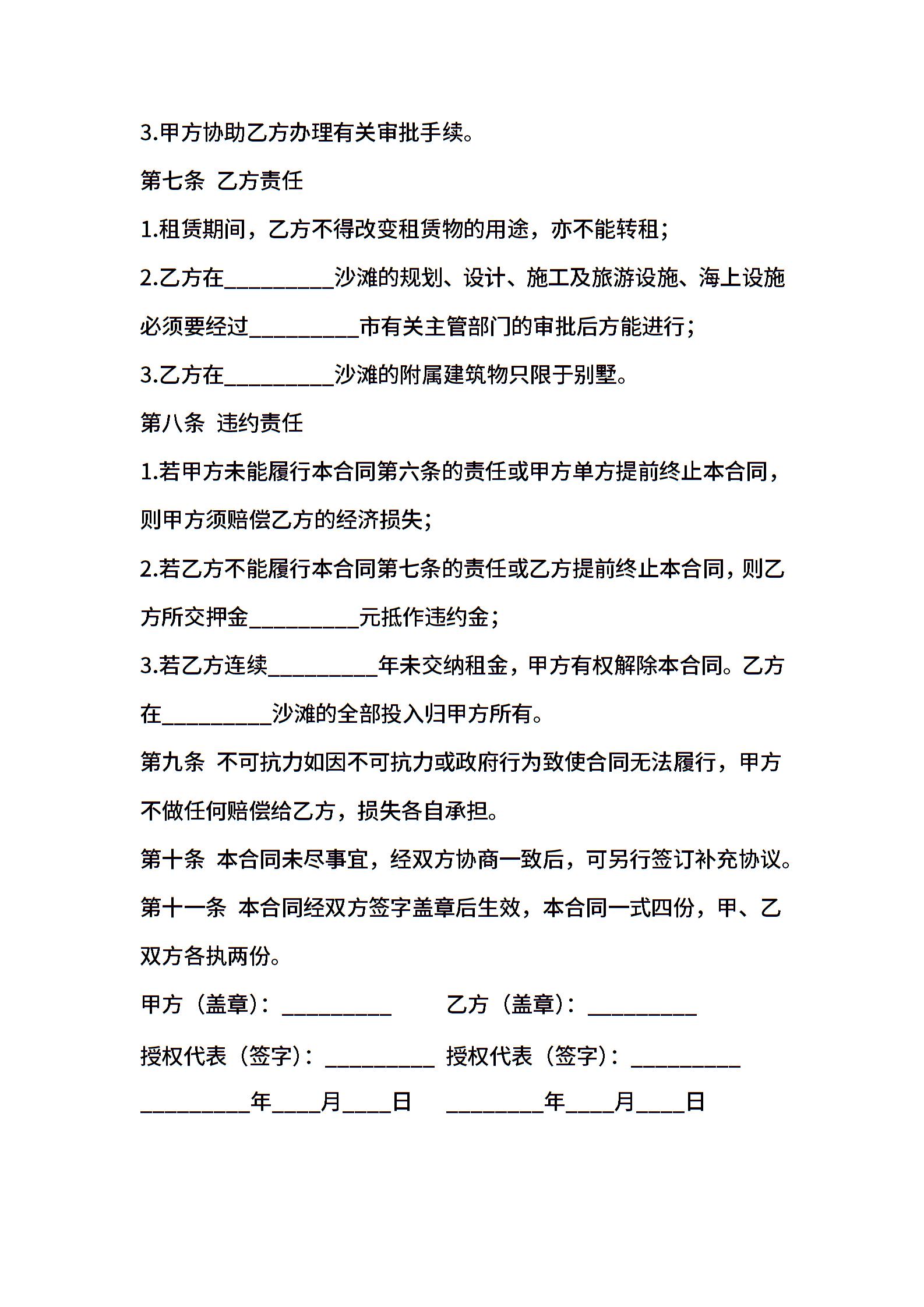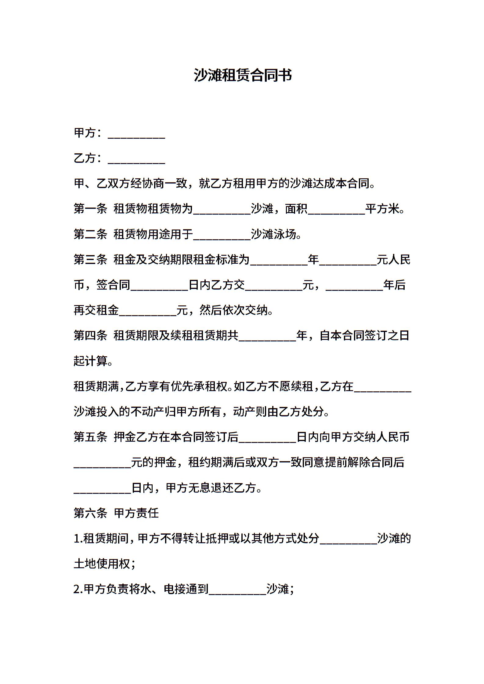 沙滩租赁合同书