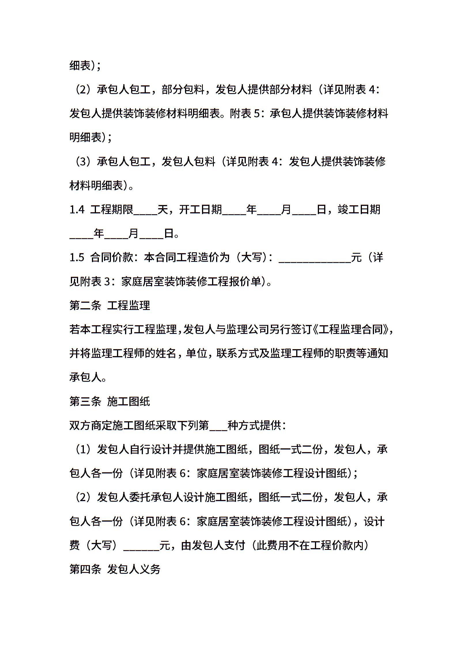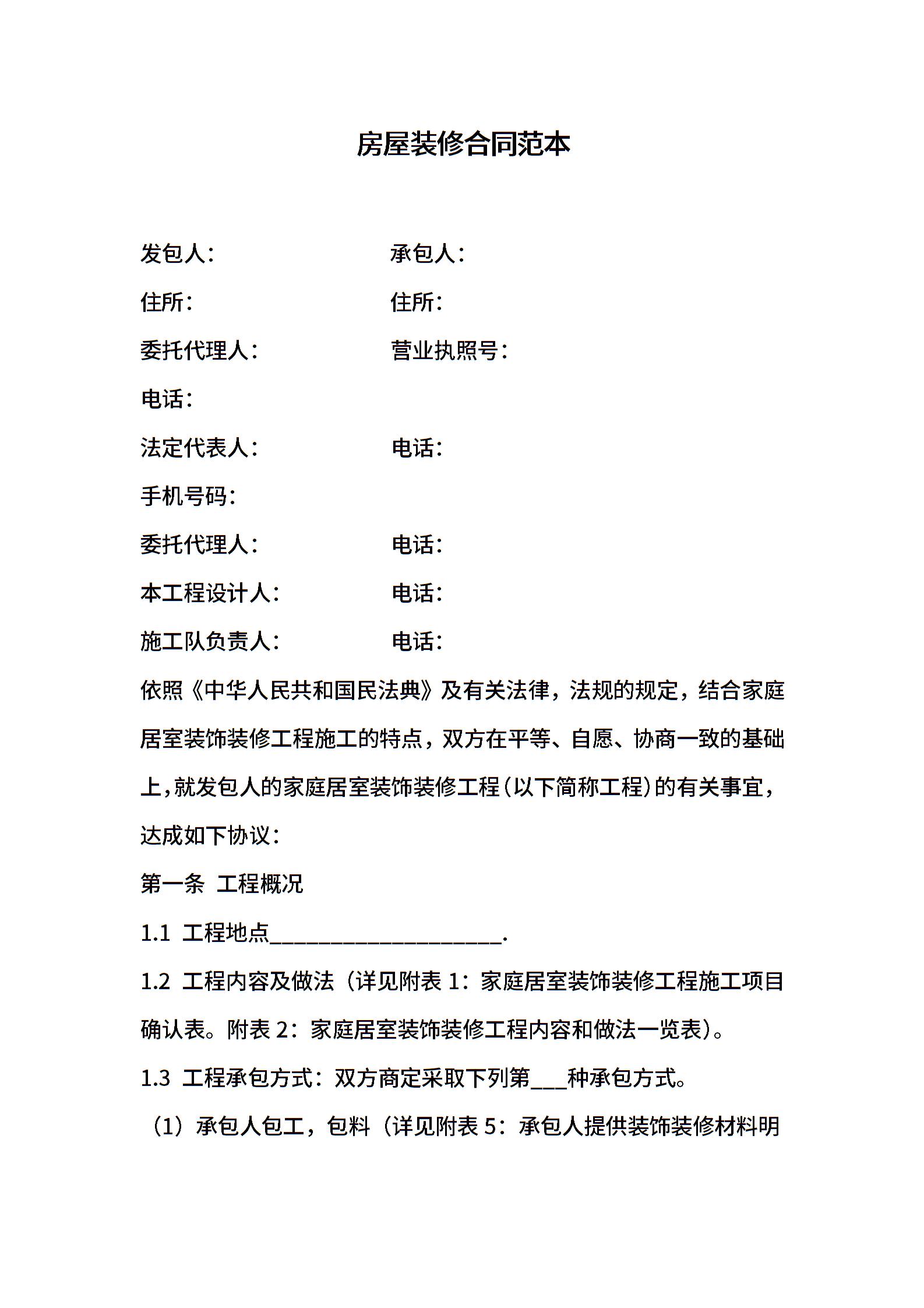 房屋装修合同范本