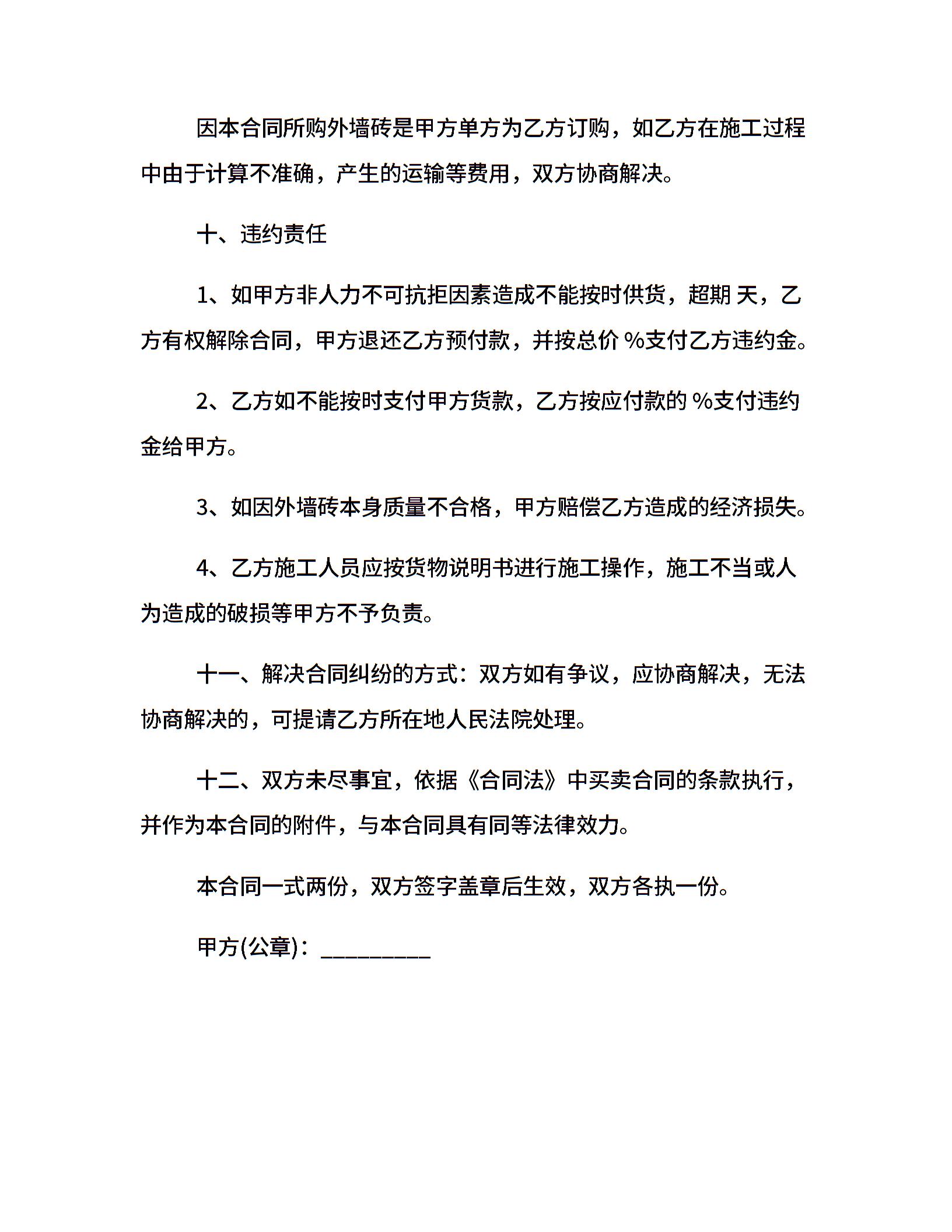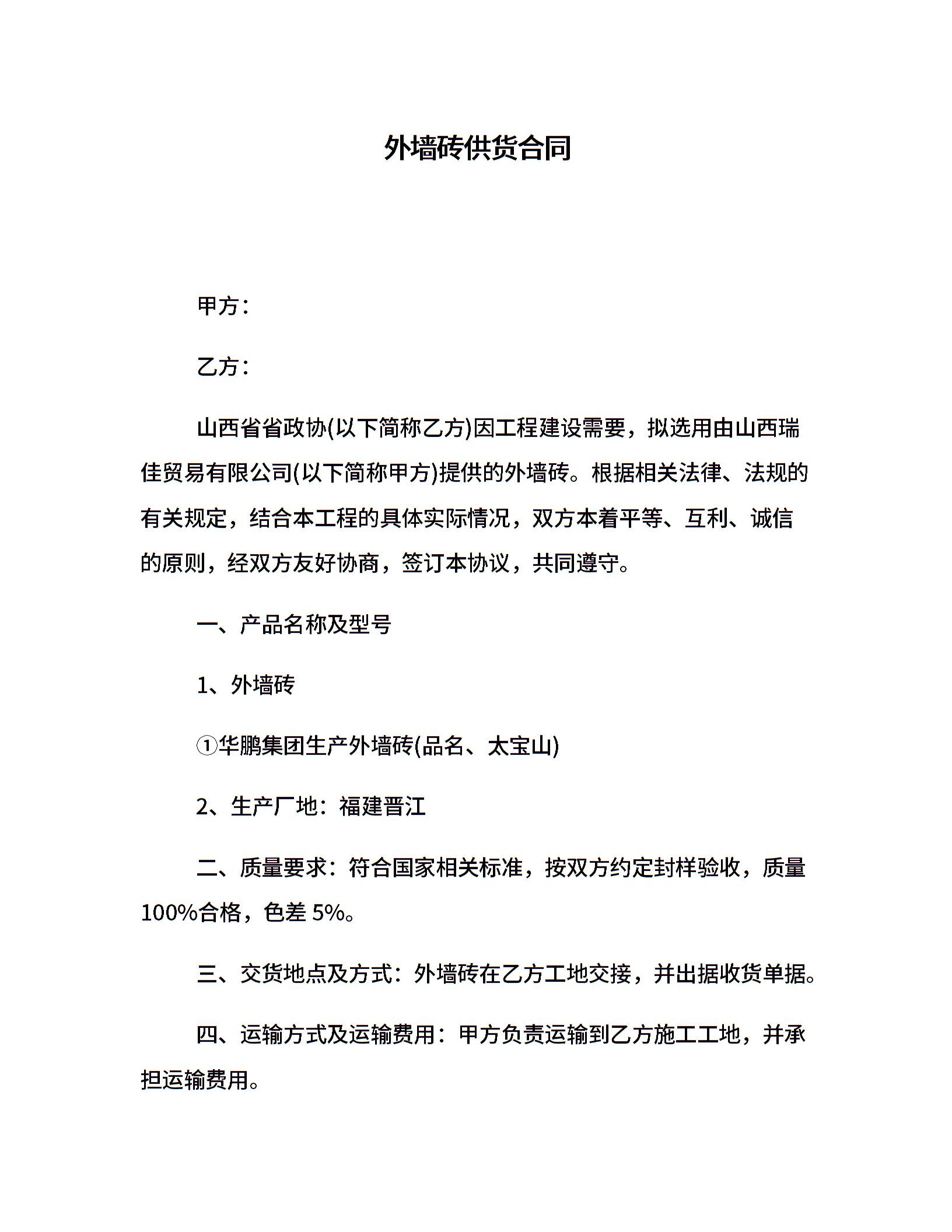 外墙砖供货合同