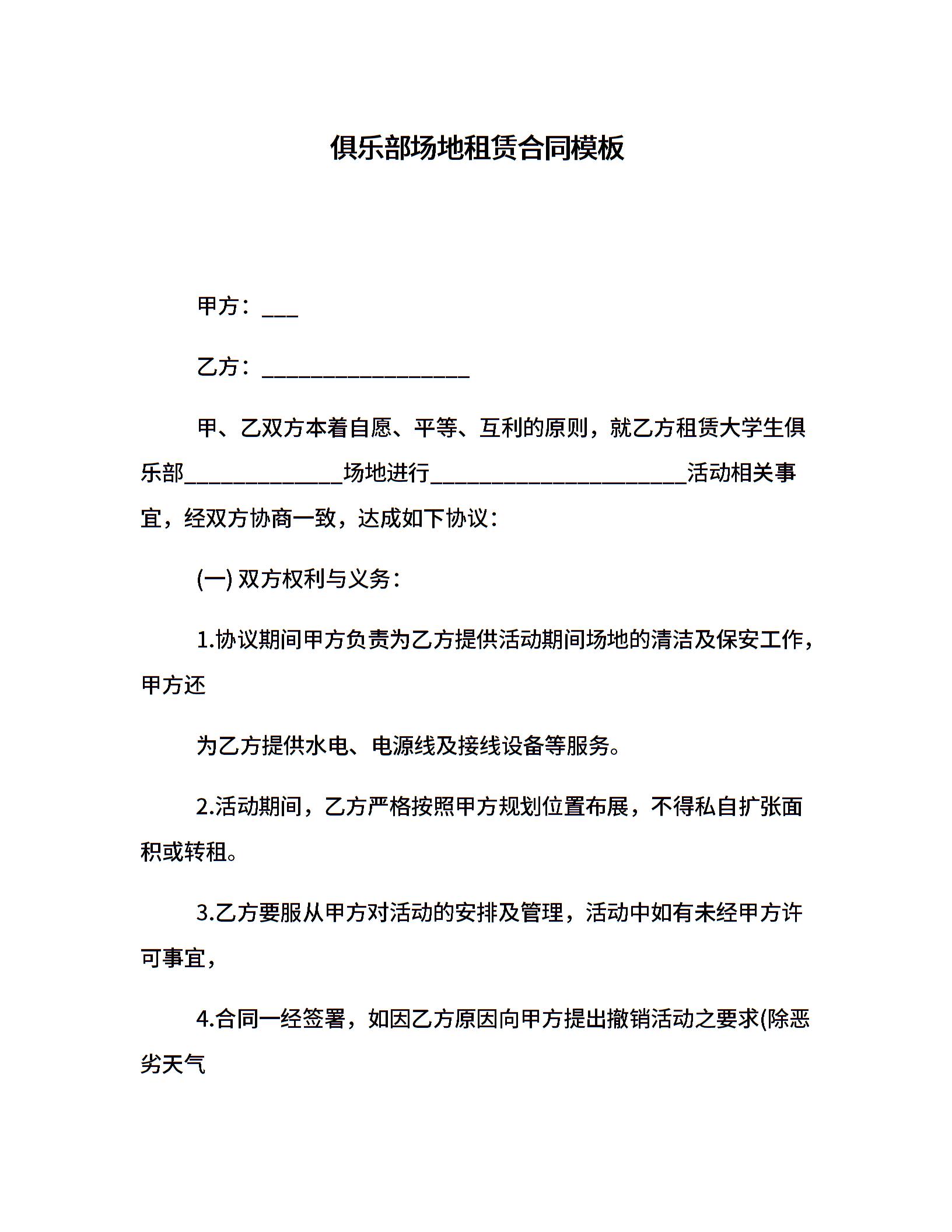 俱乐部场地租赁合同模板