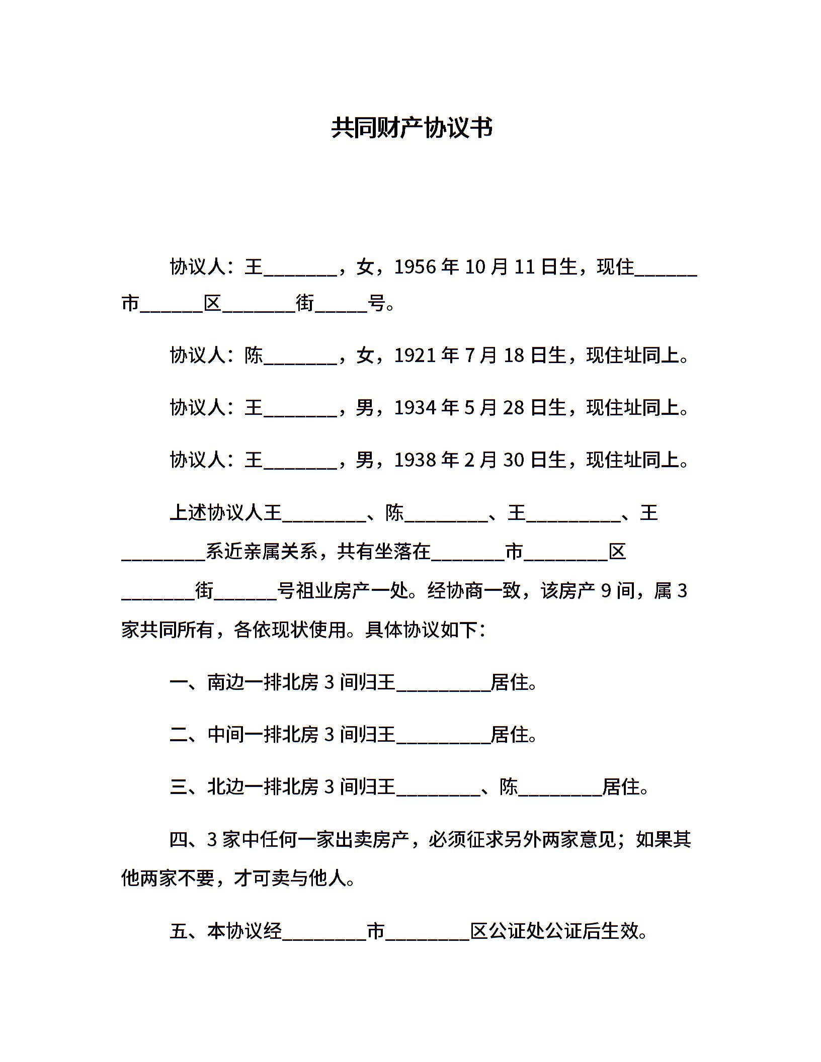 共同财产协议书