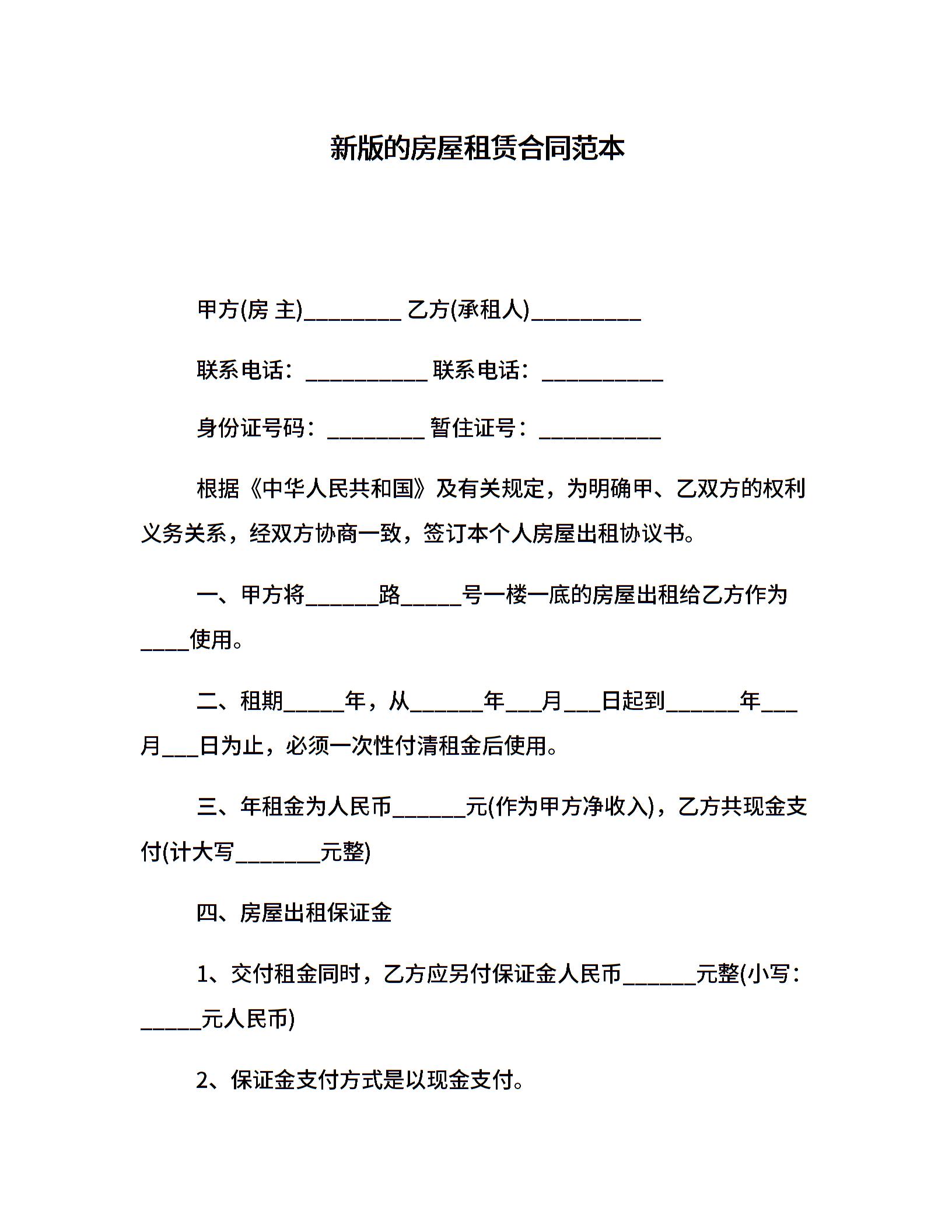 新版的房屋租赁合同范本