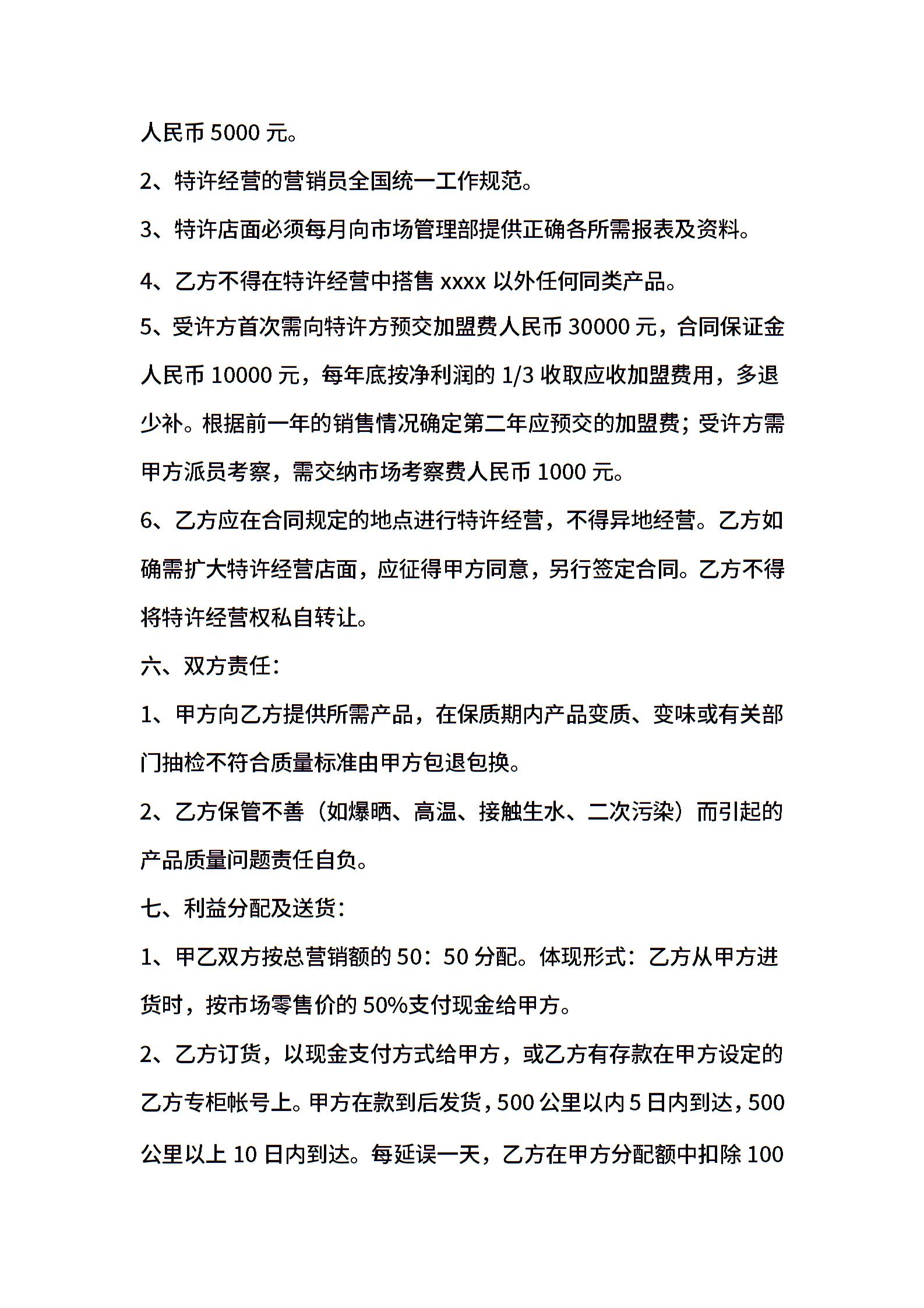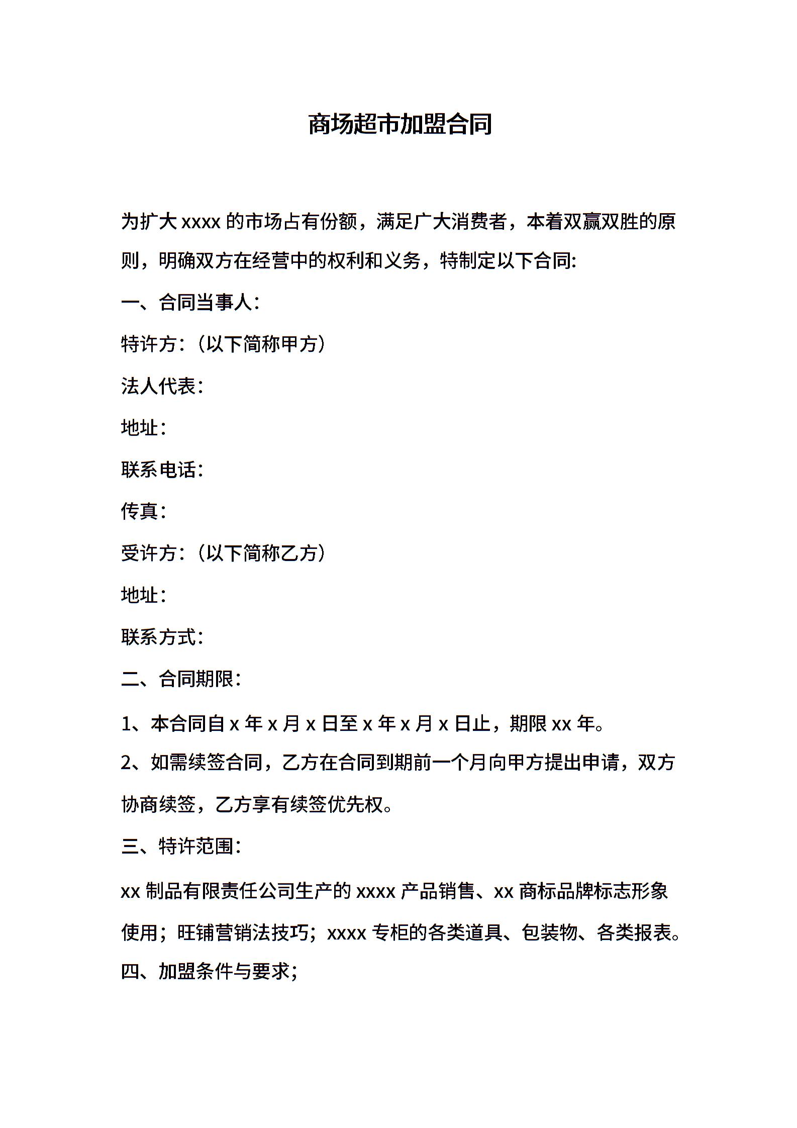 商场超市加盟合同