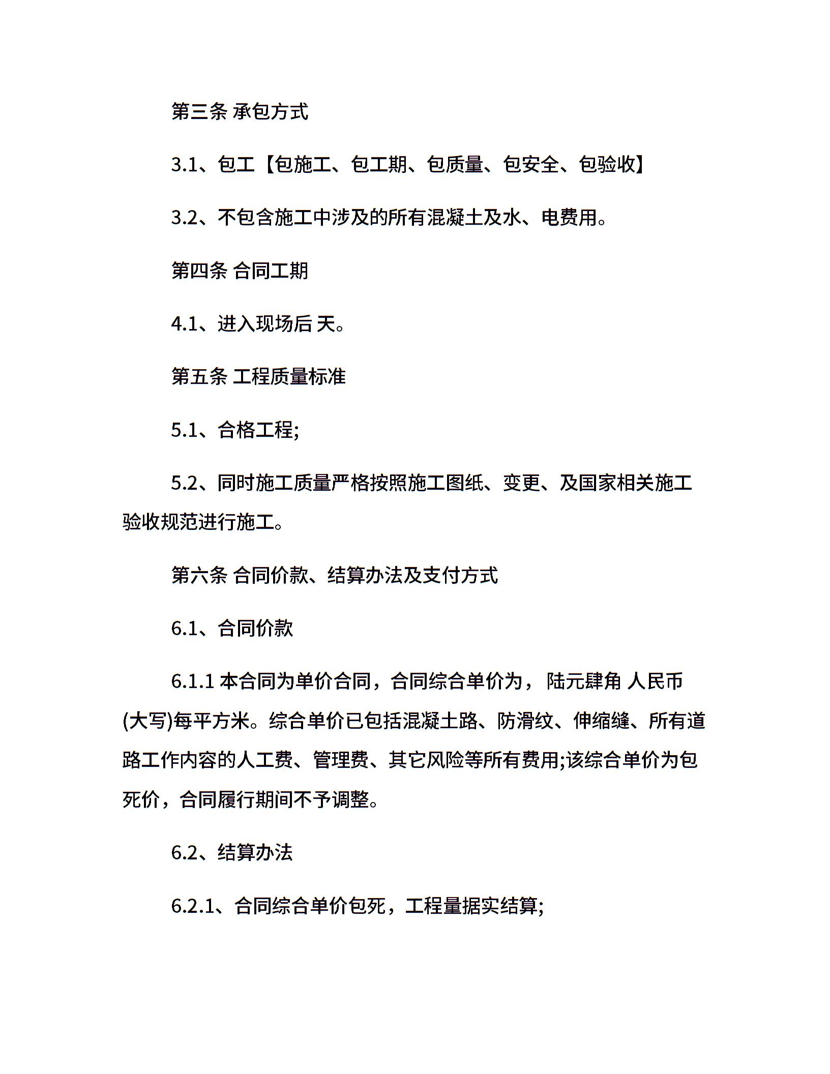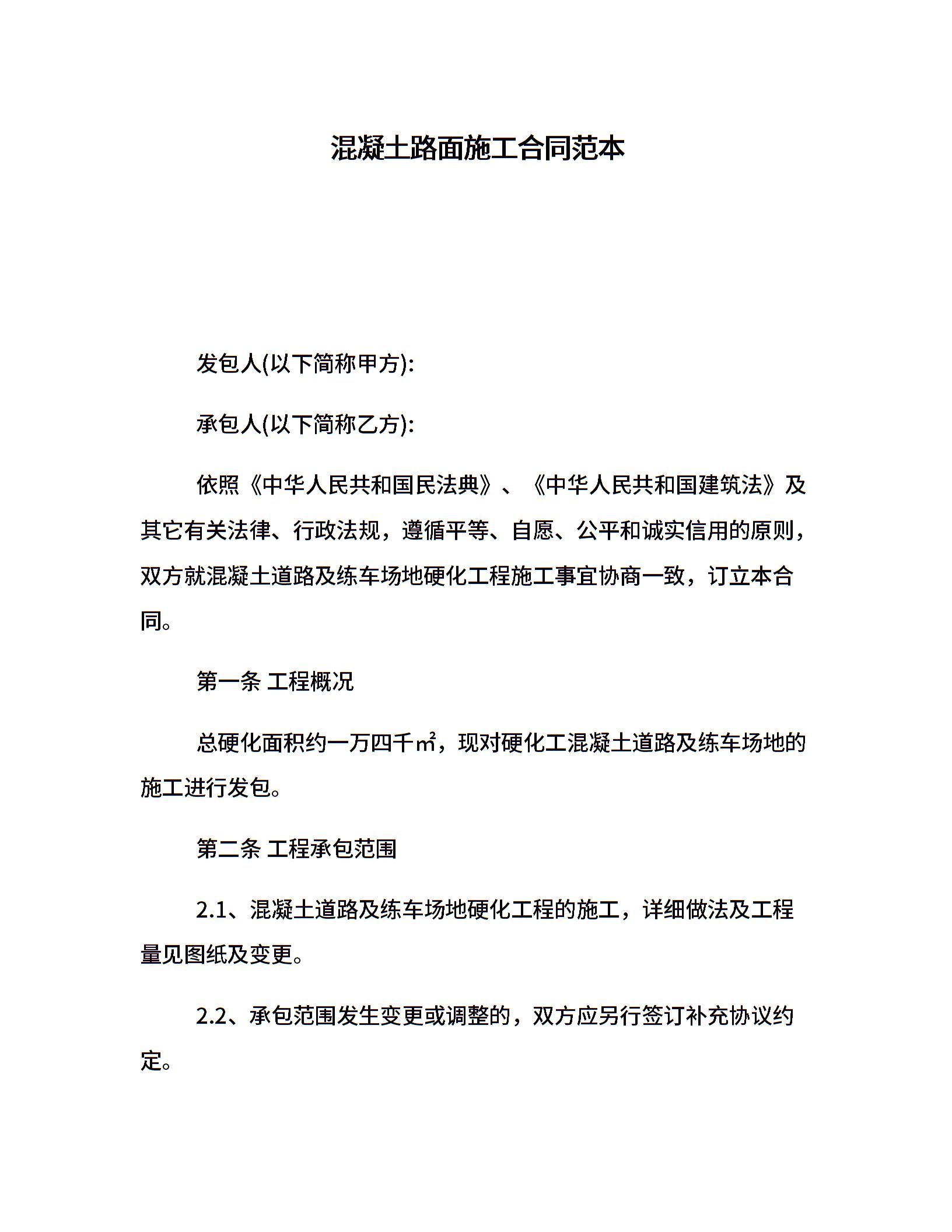 混凝土路面施工合同范本