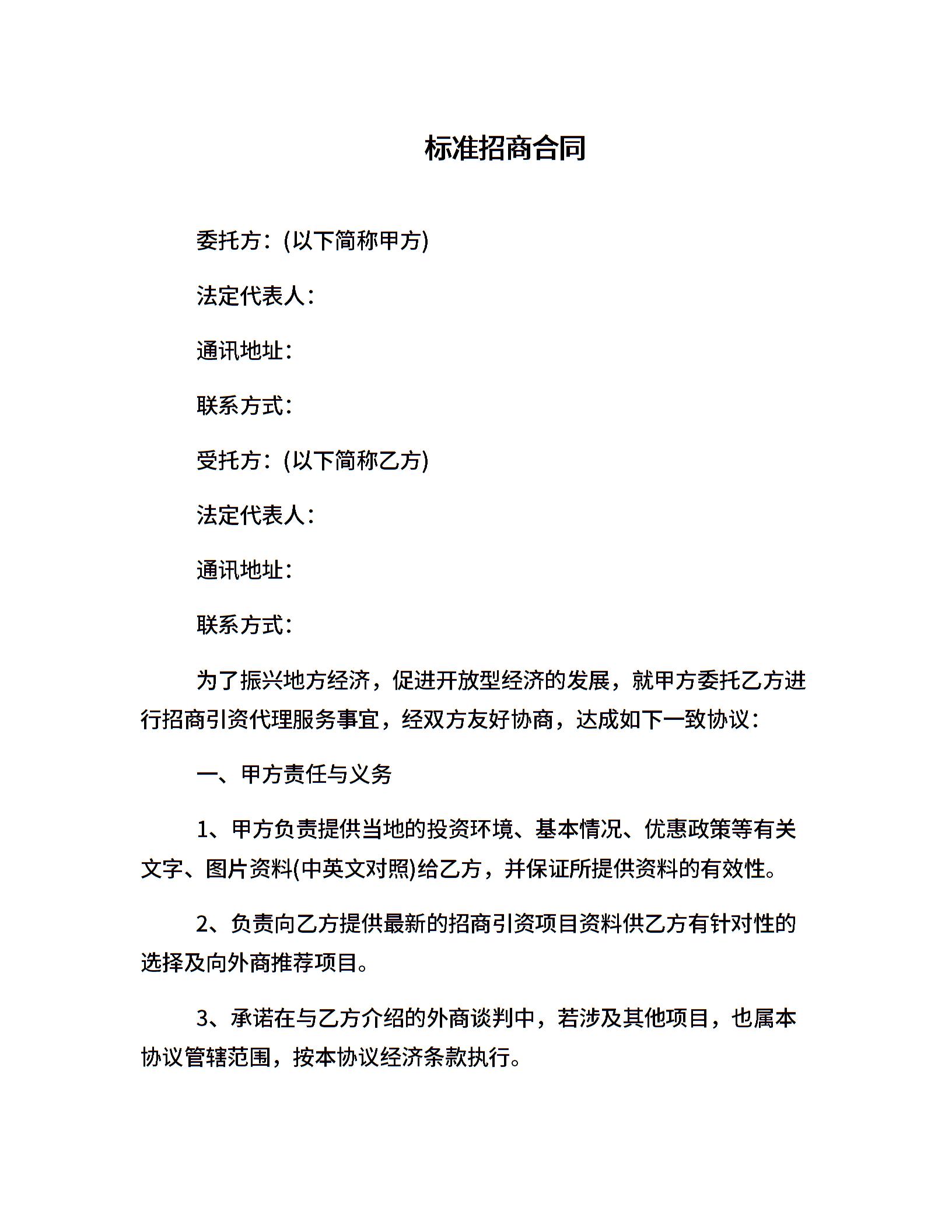 标准招商合同