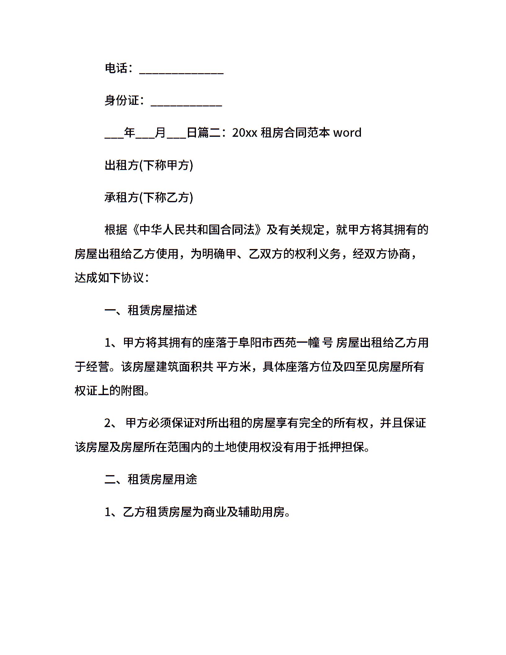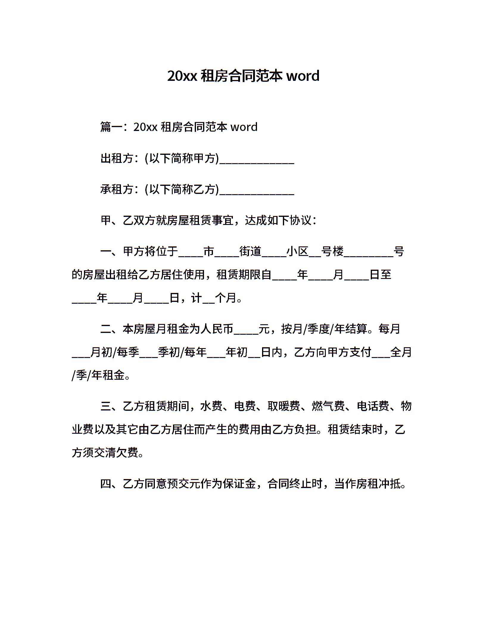 20xx租房合同范本word