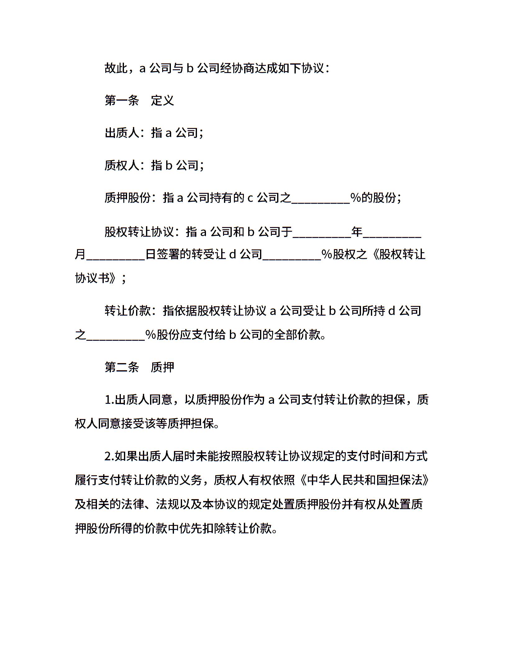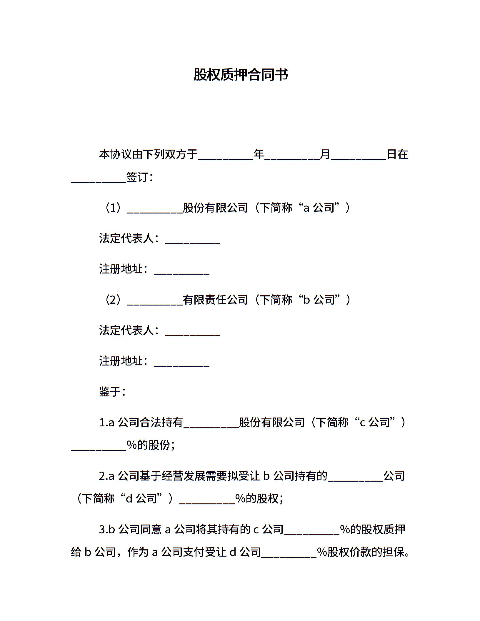 股权质押合同书
