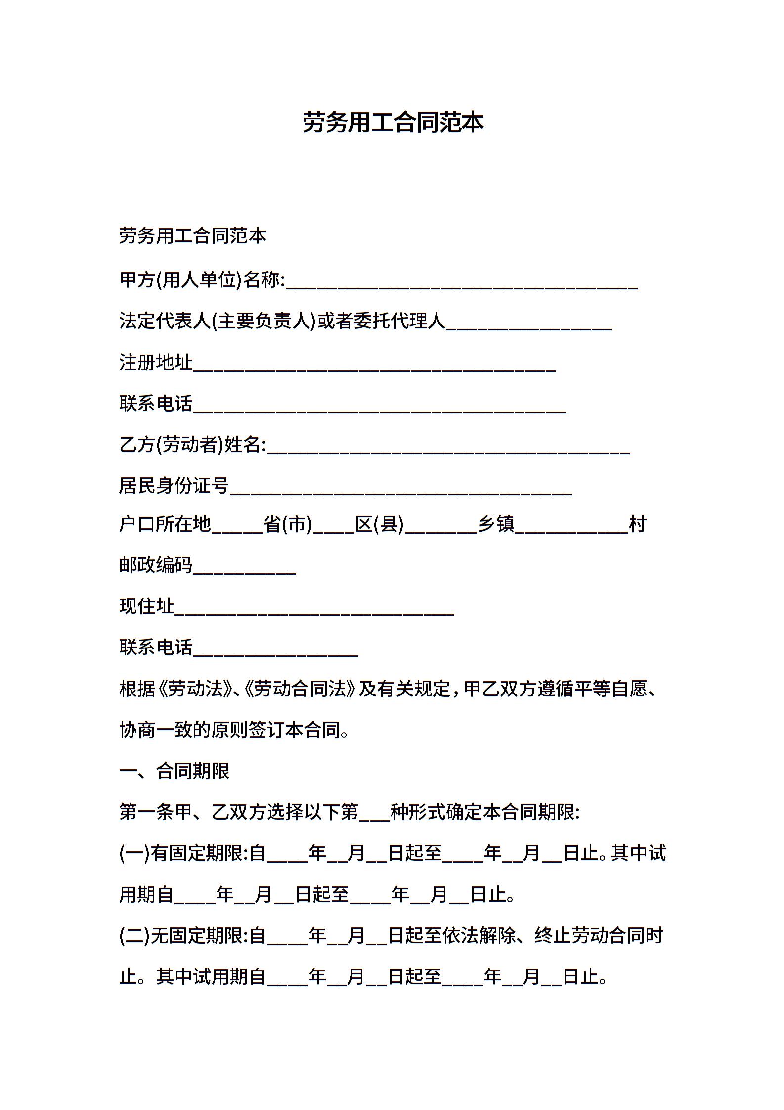 劳务用工合同范本 (2)