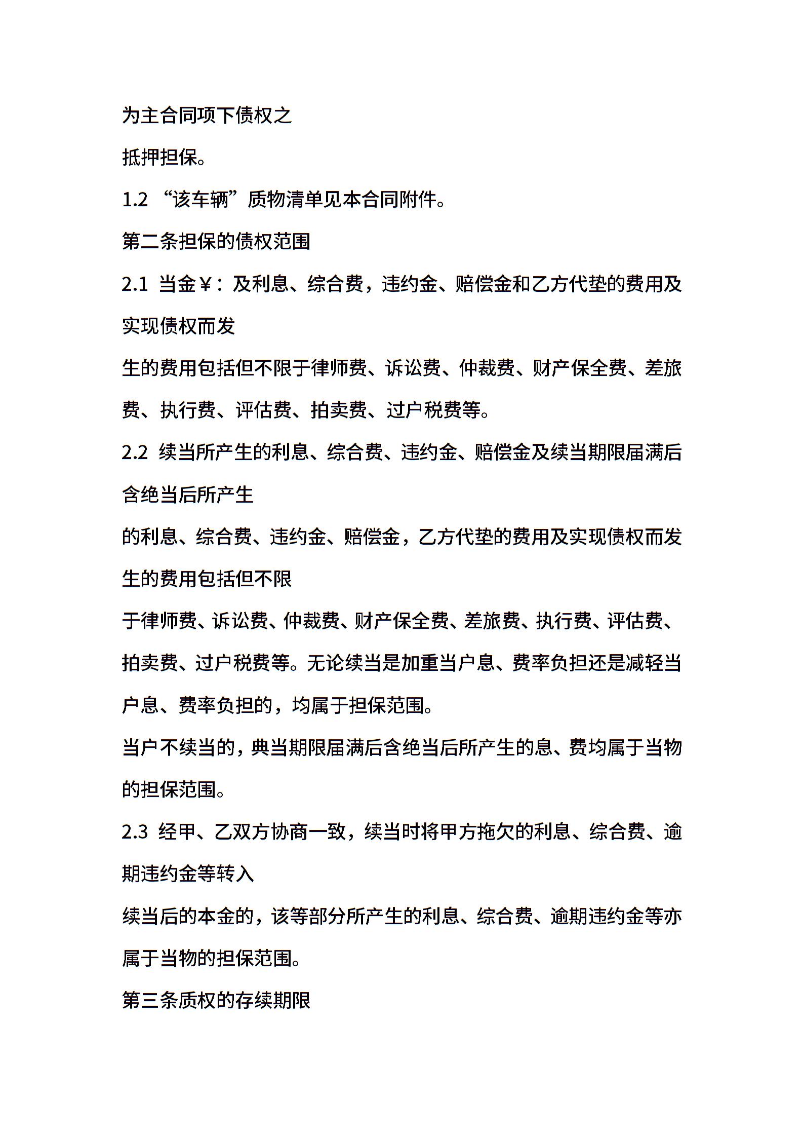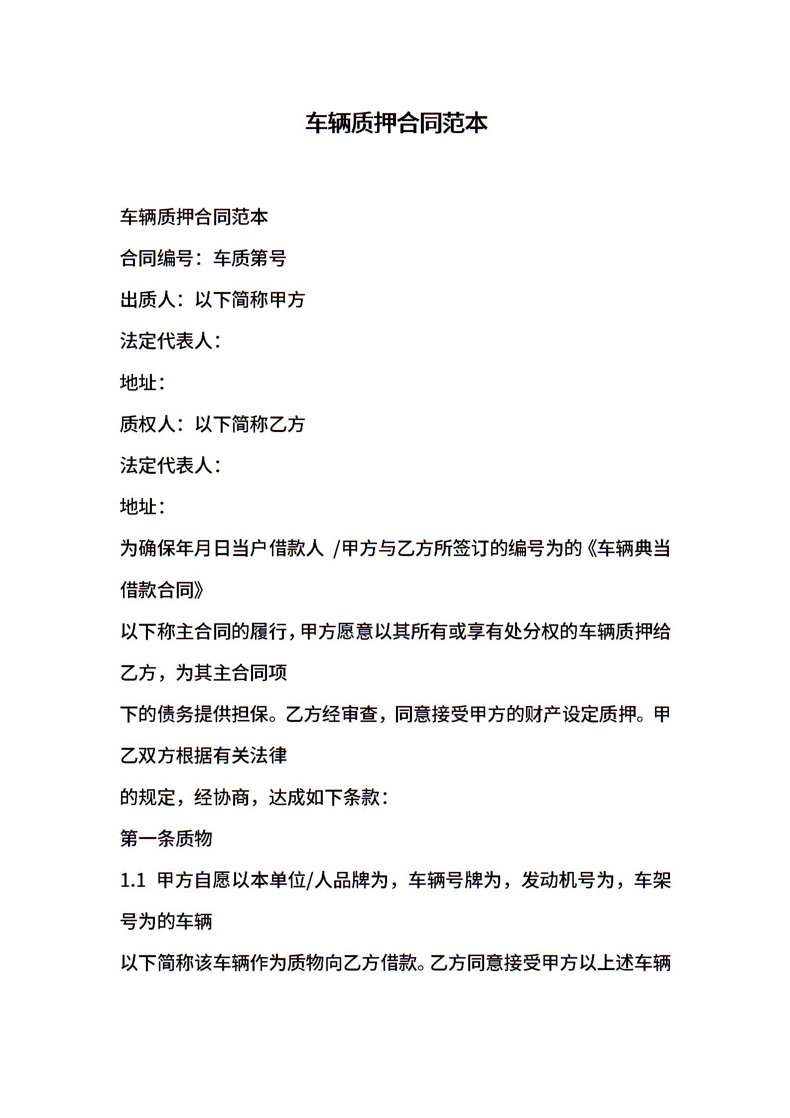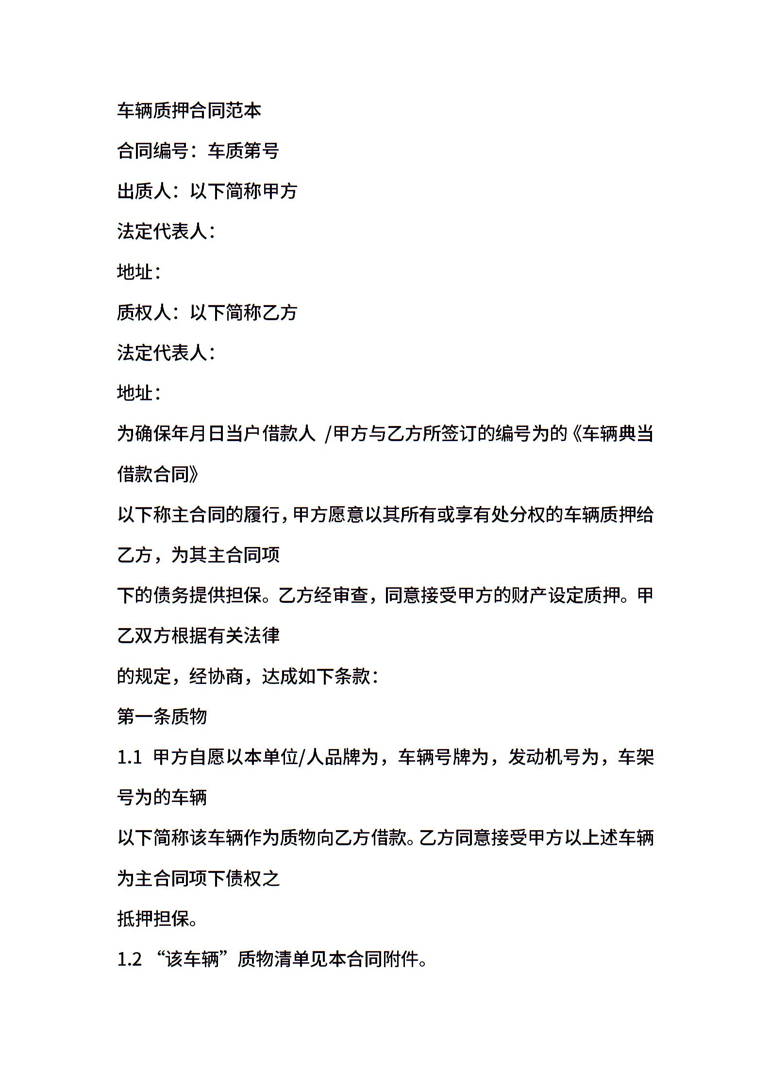 车辆质押合同范本