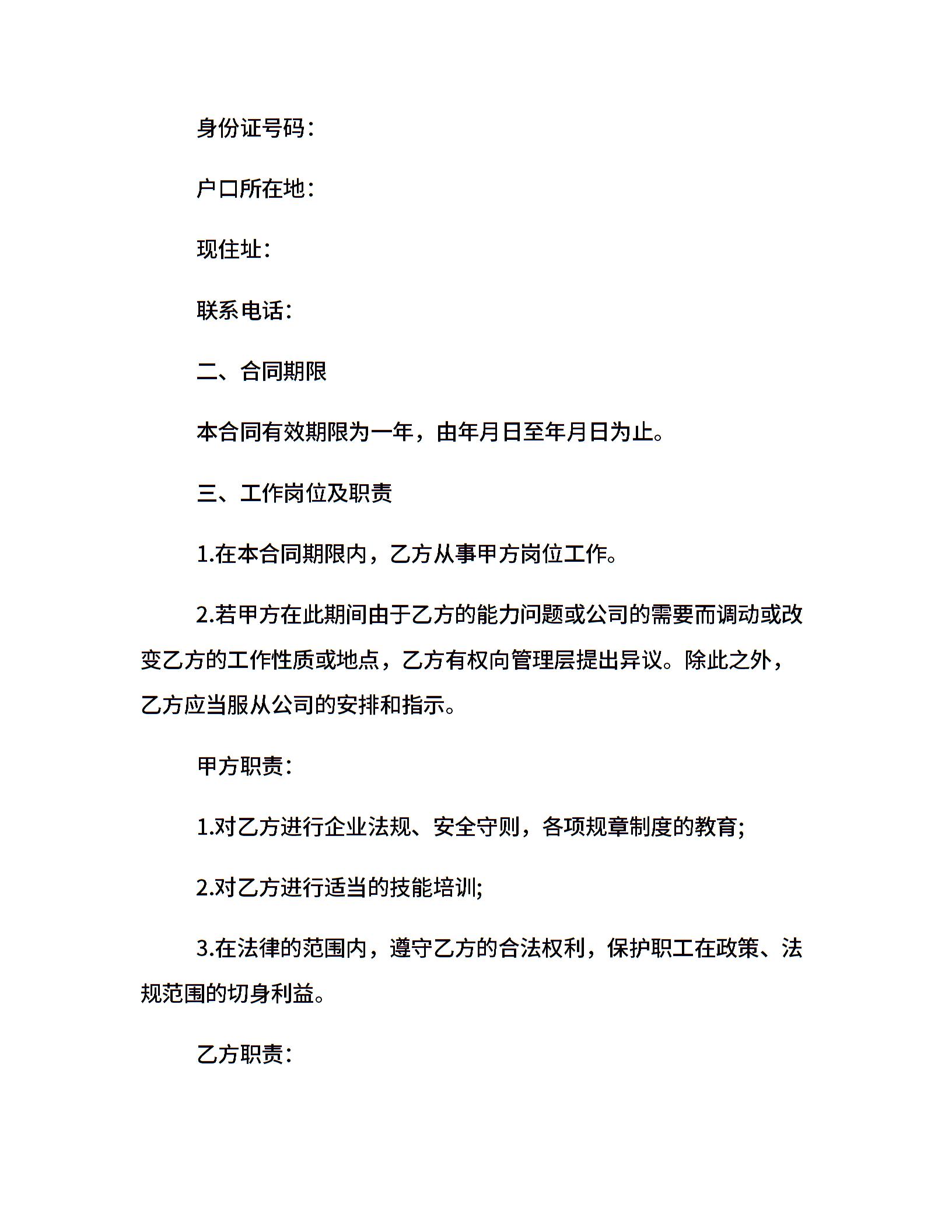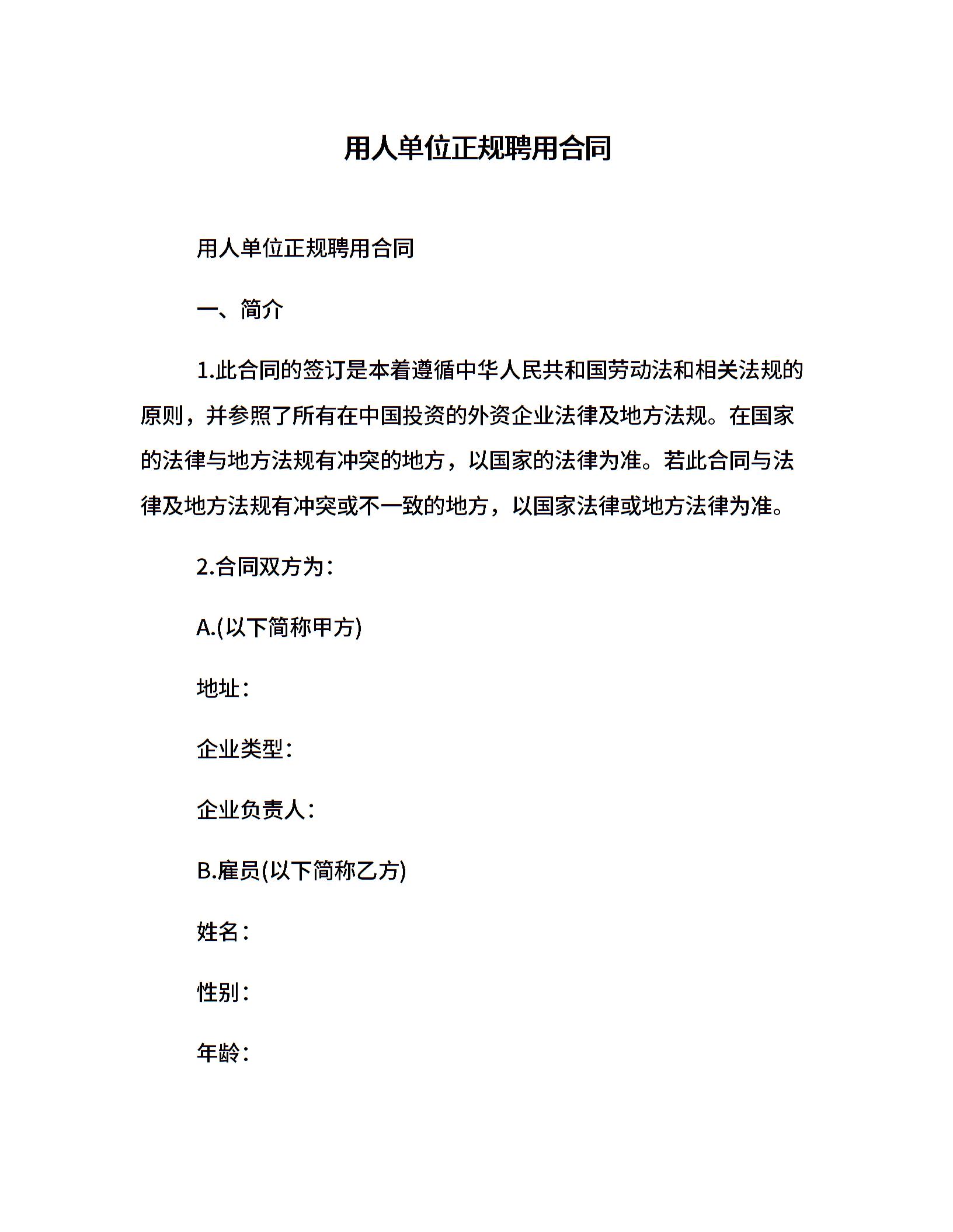 用人单位正规聘用合同