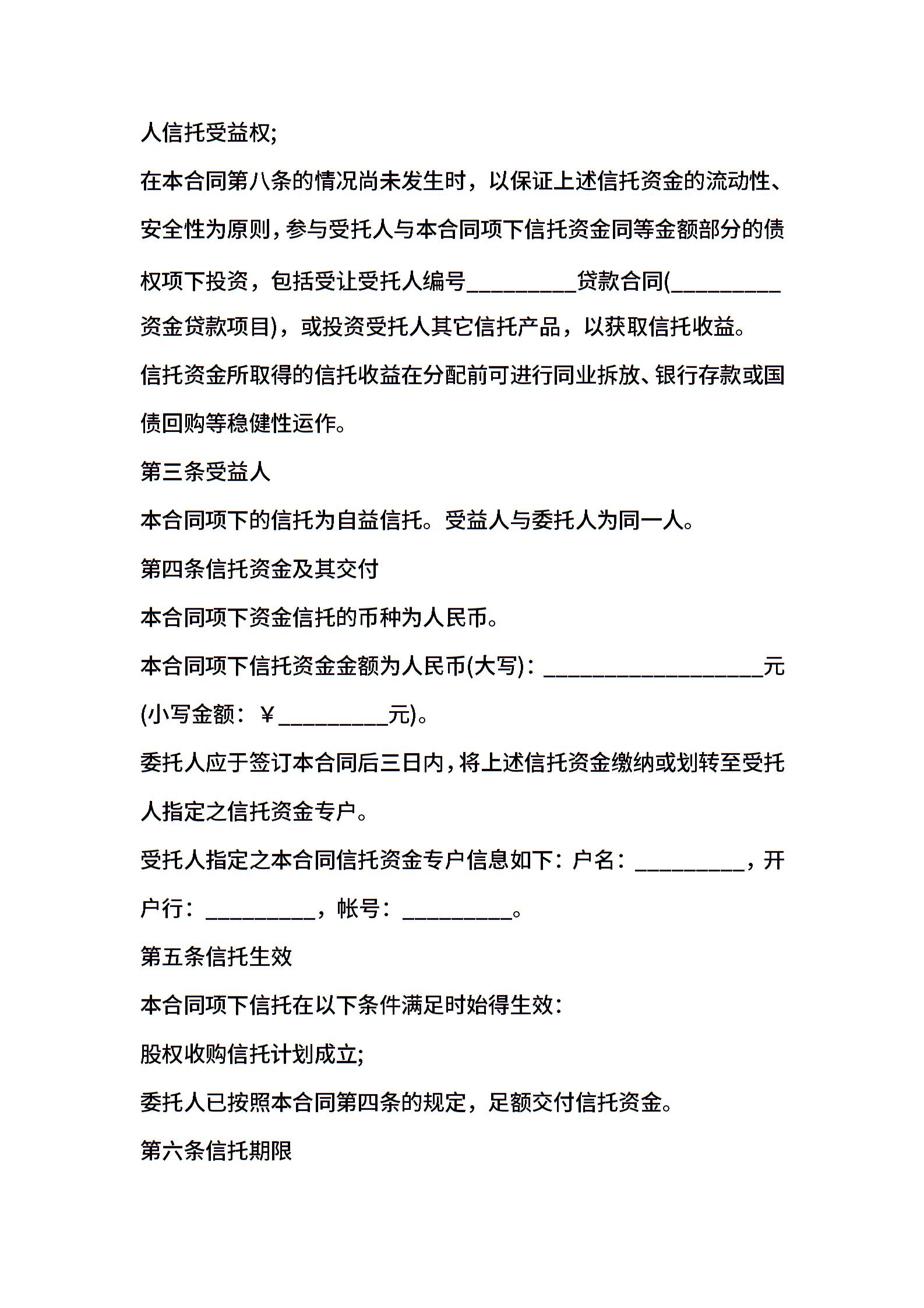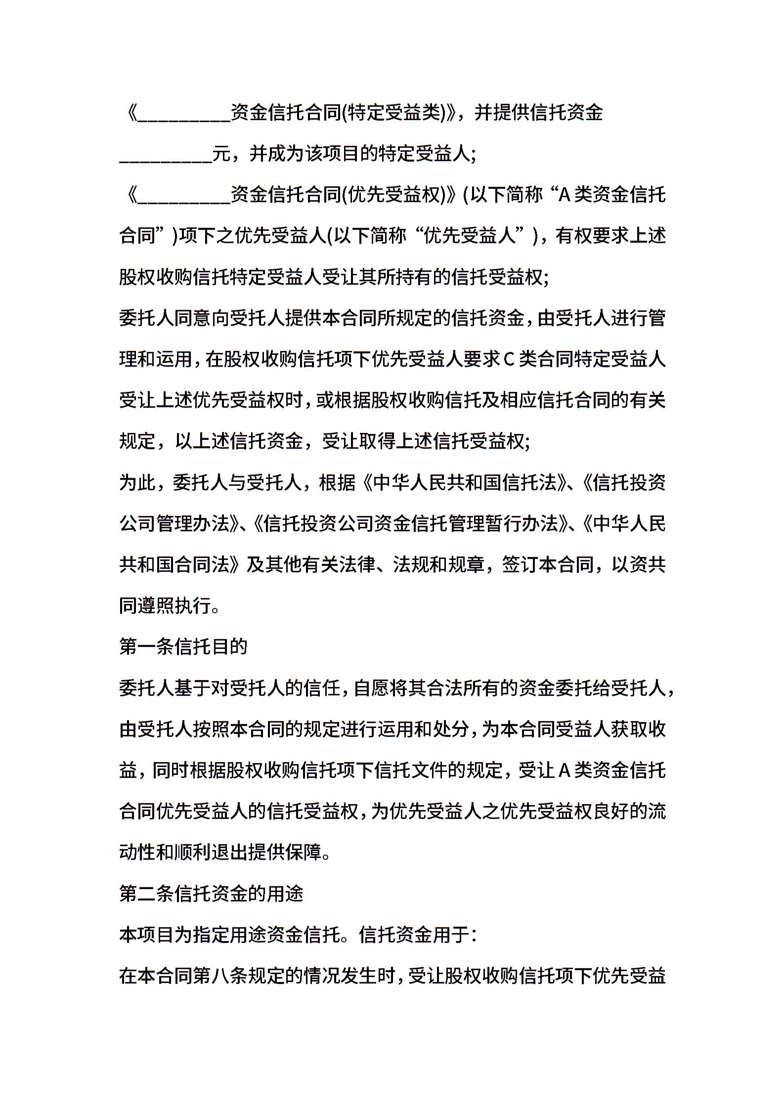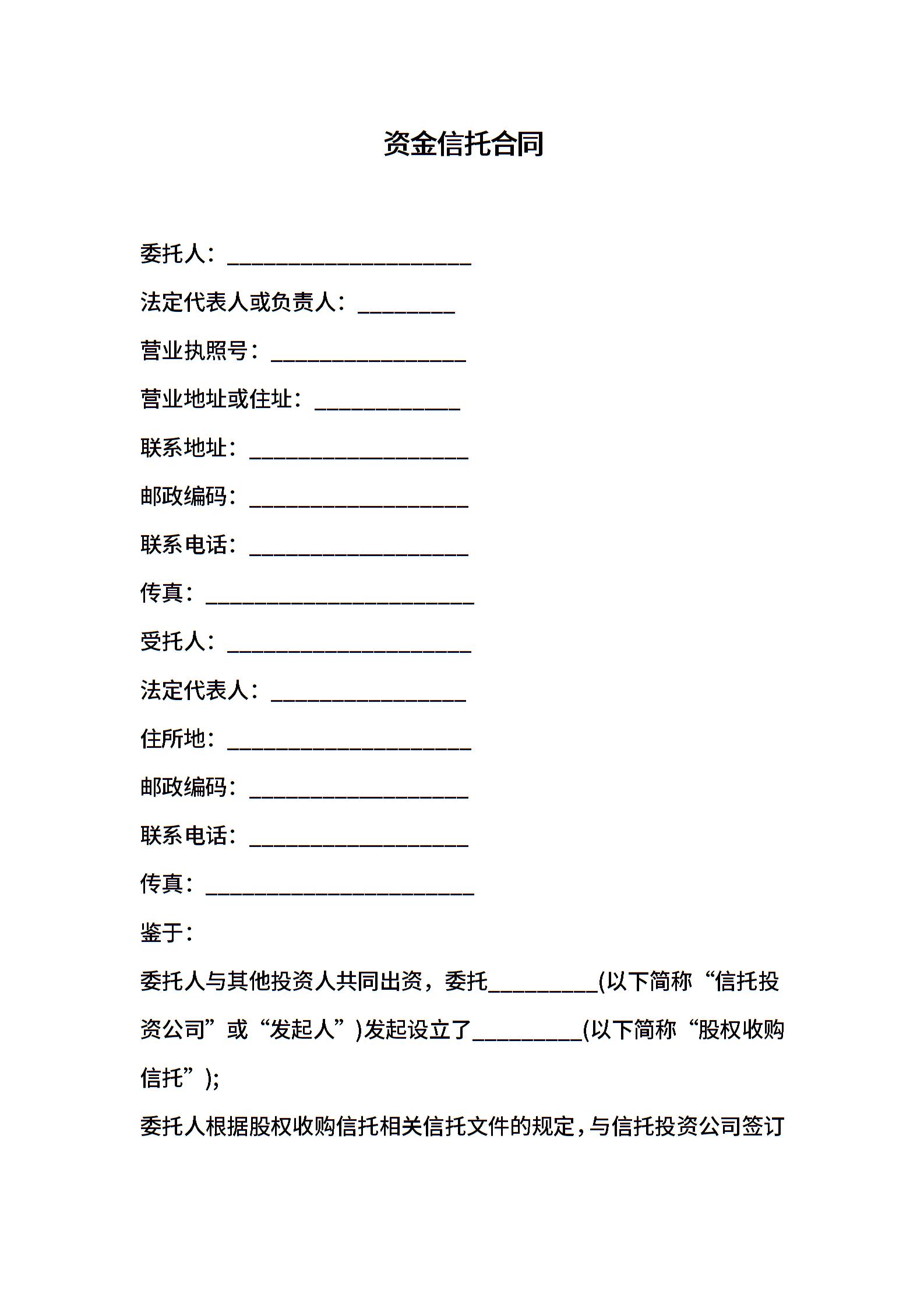 资金信托合同