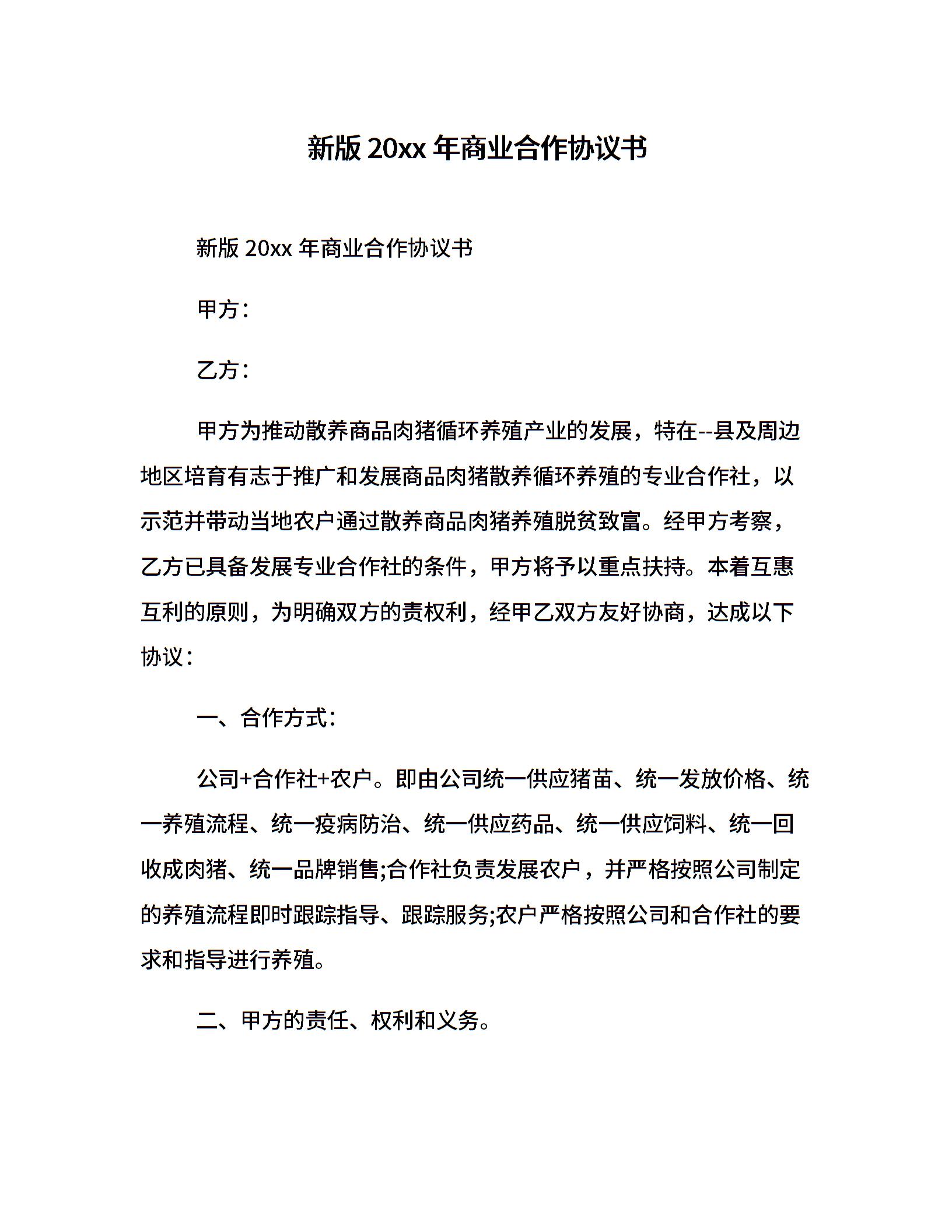 新版20xx年商业合作协议书