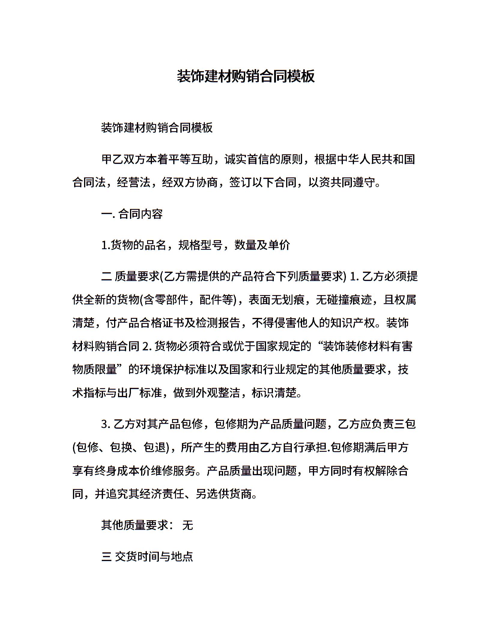 装饰建材购销合同模板