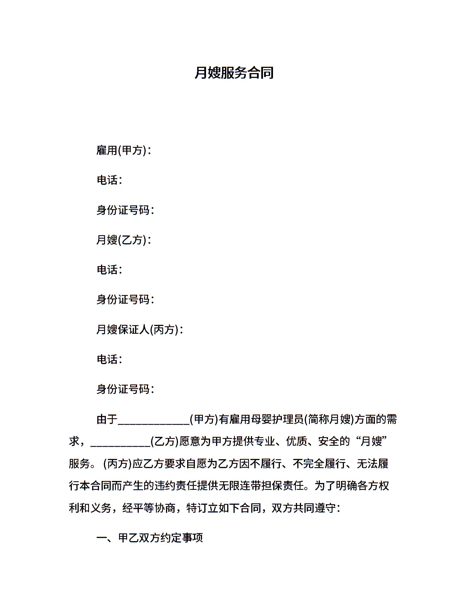 月嫂服务合同