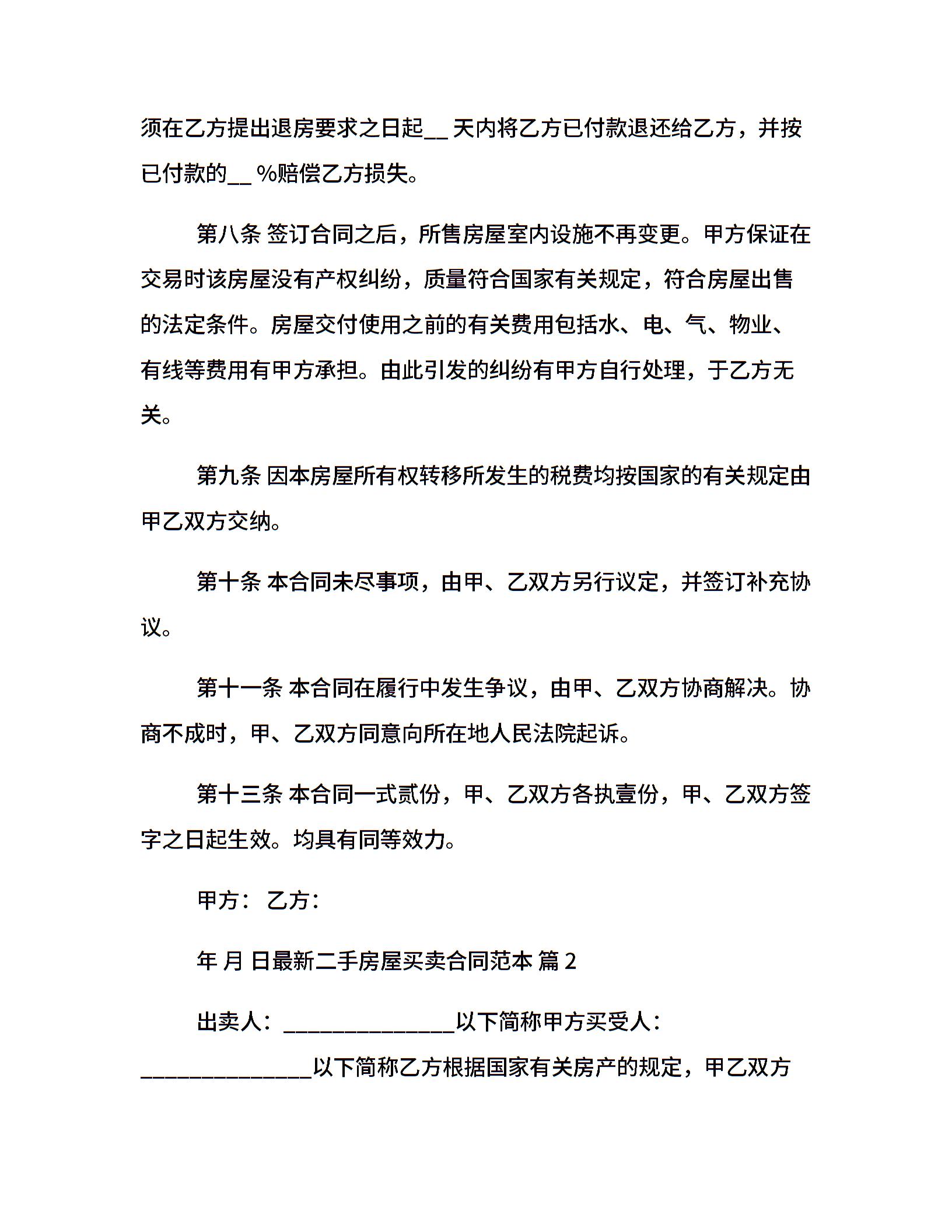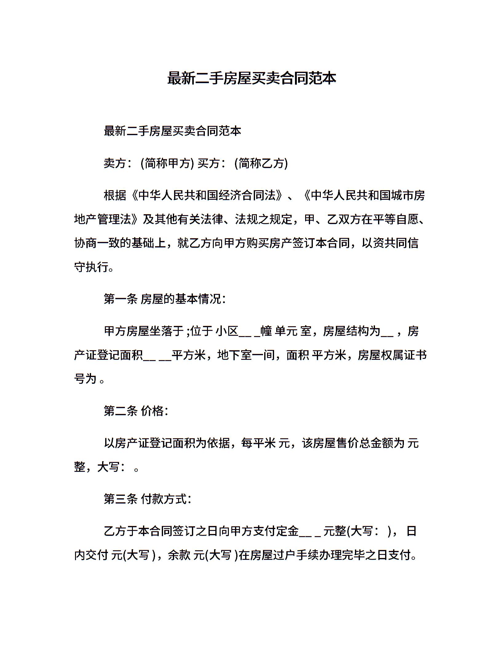 最新二手房屋买卖合同范本