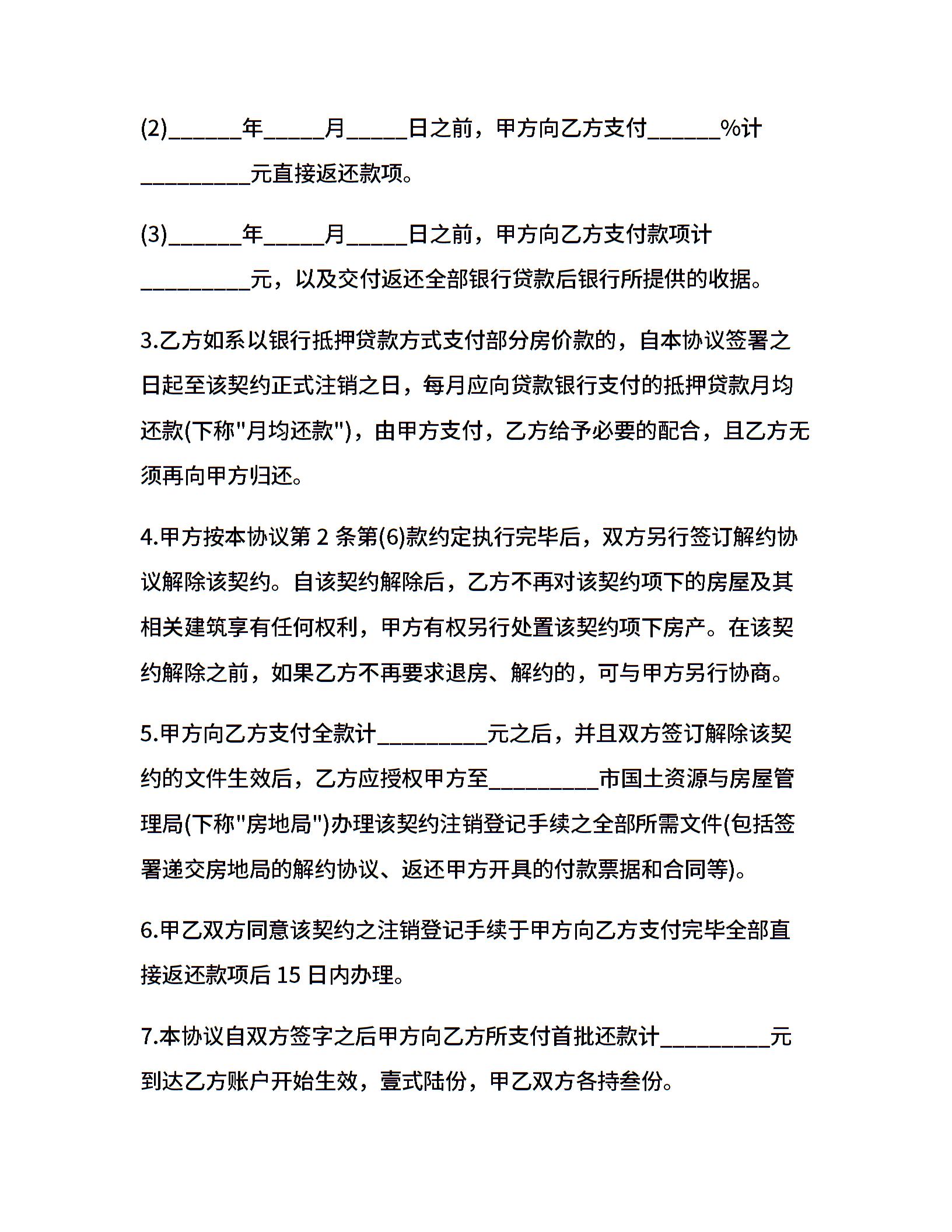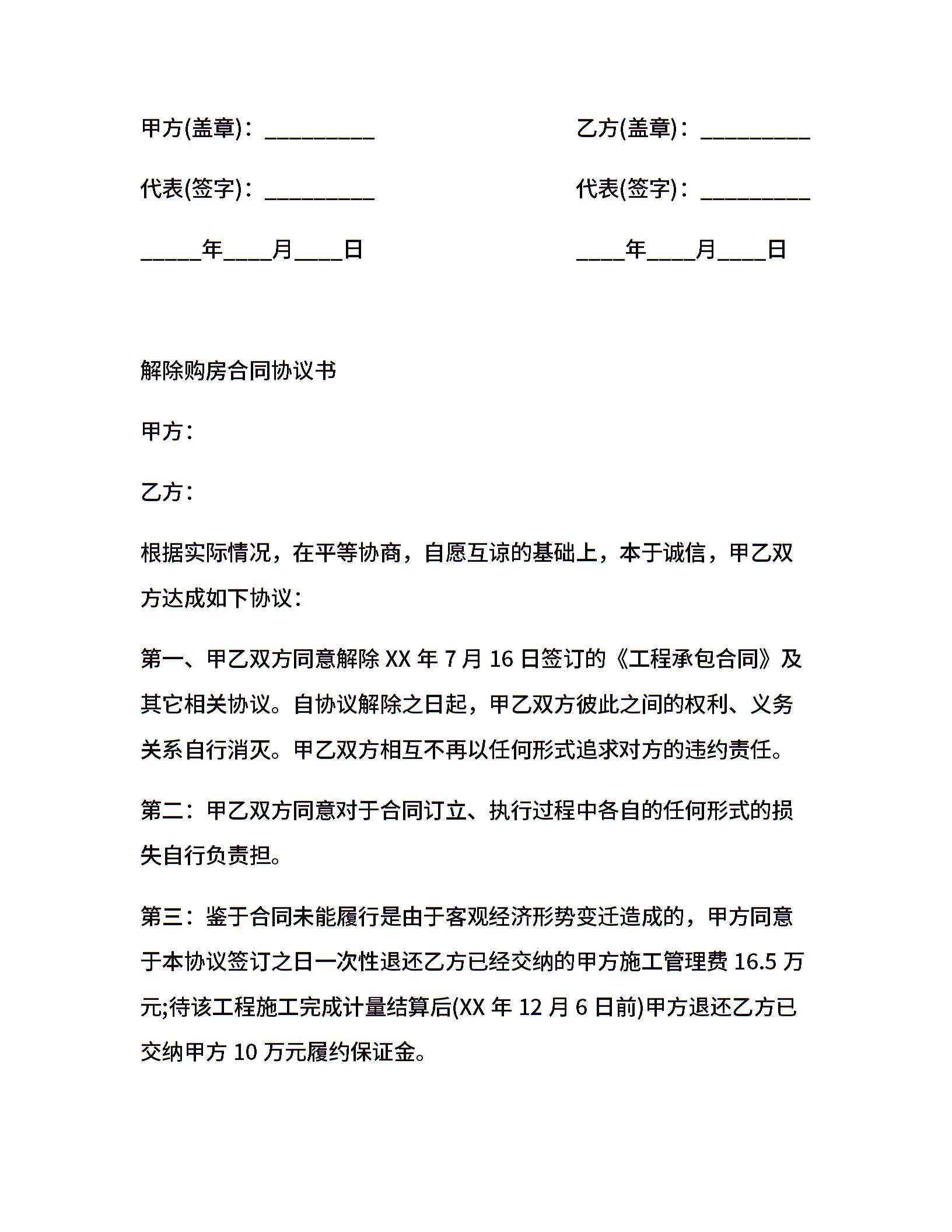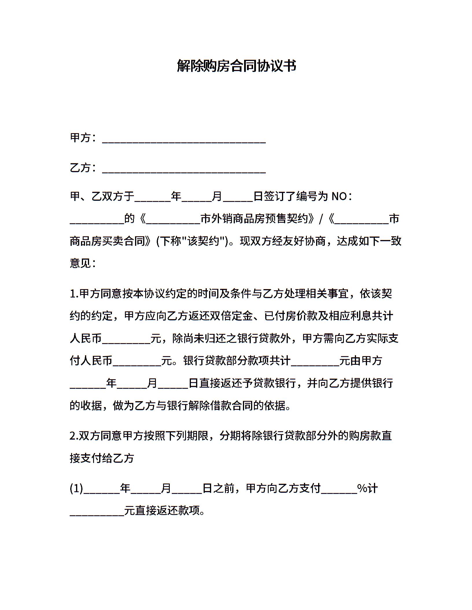 解除购房合同协议书
