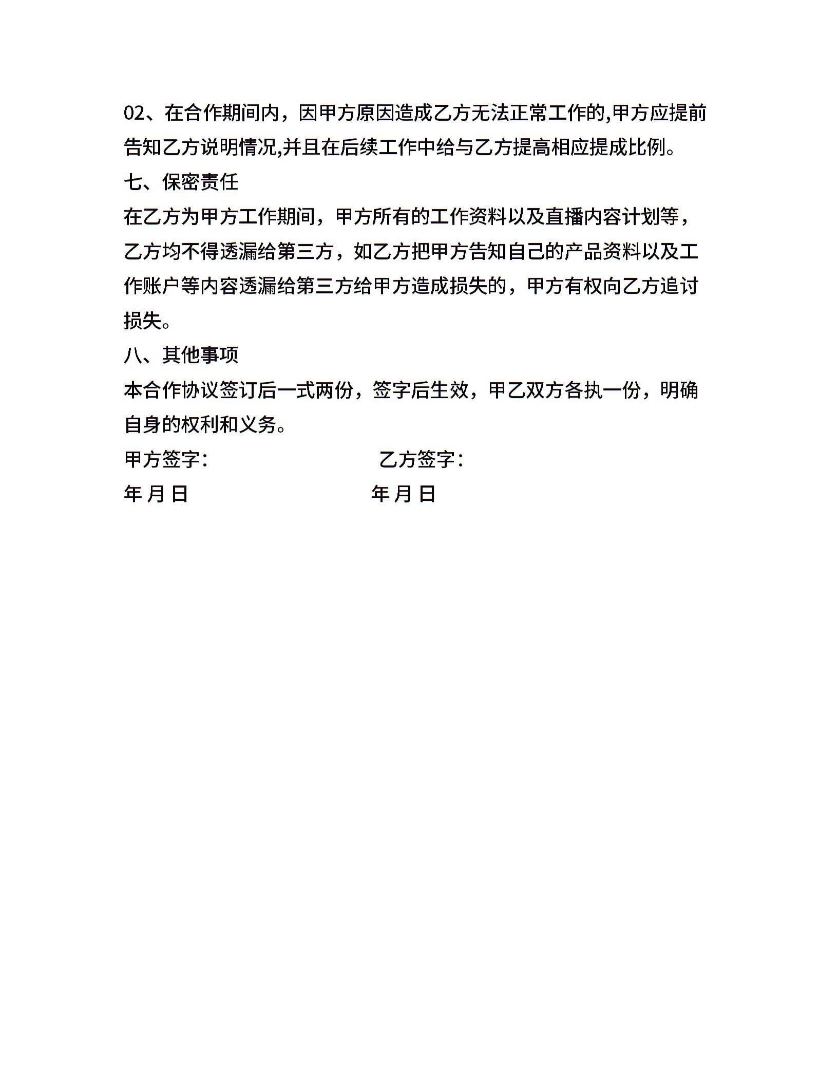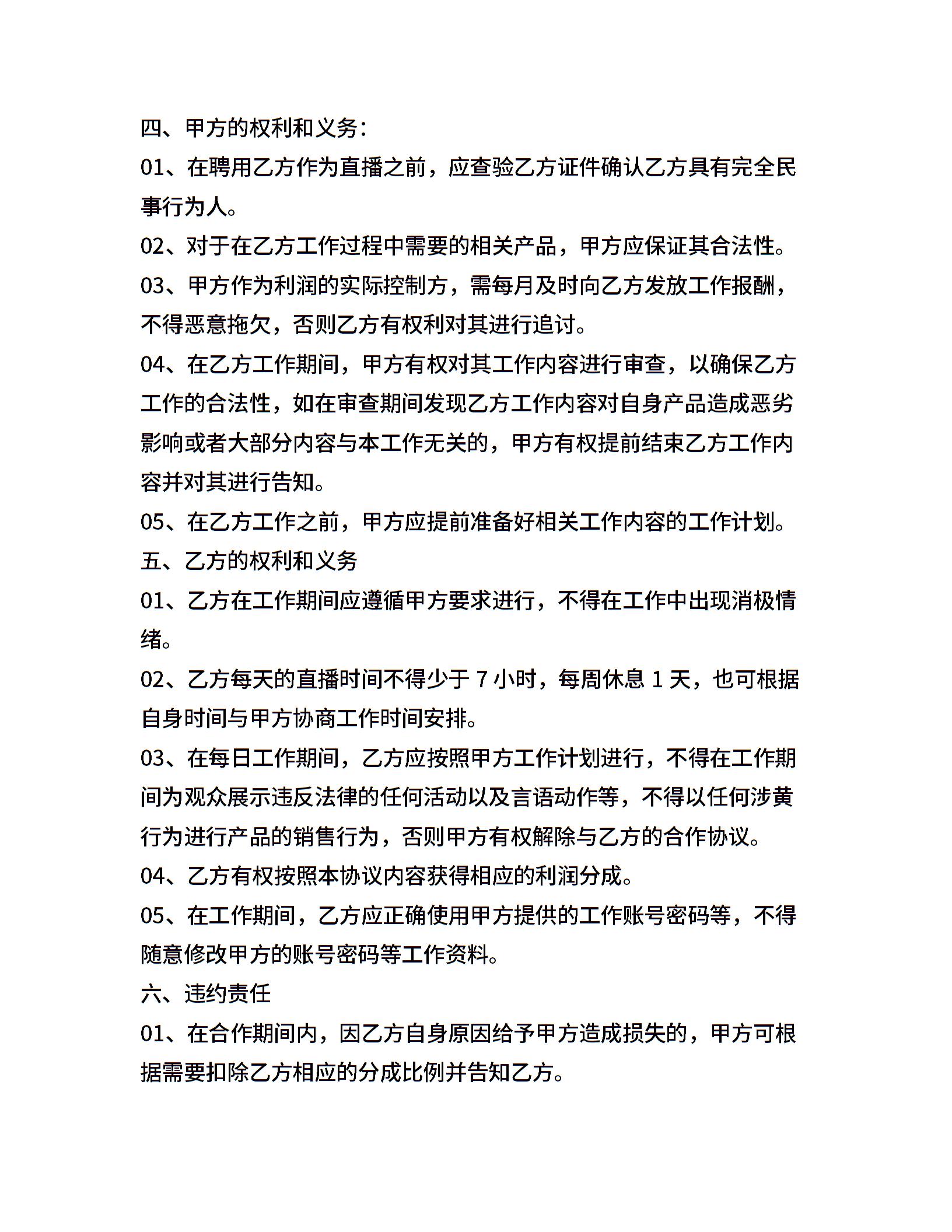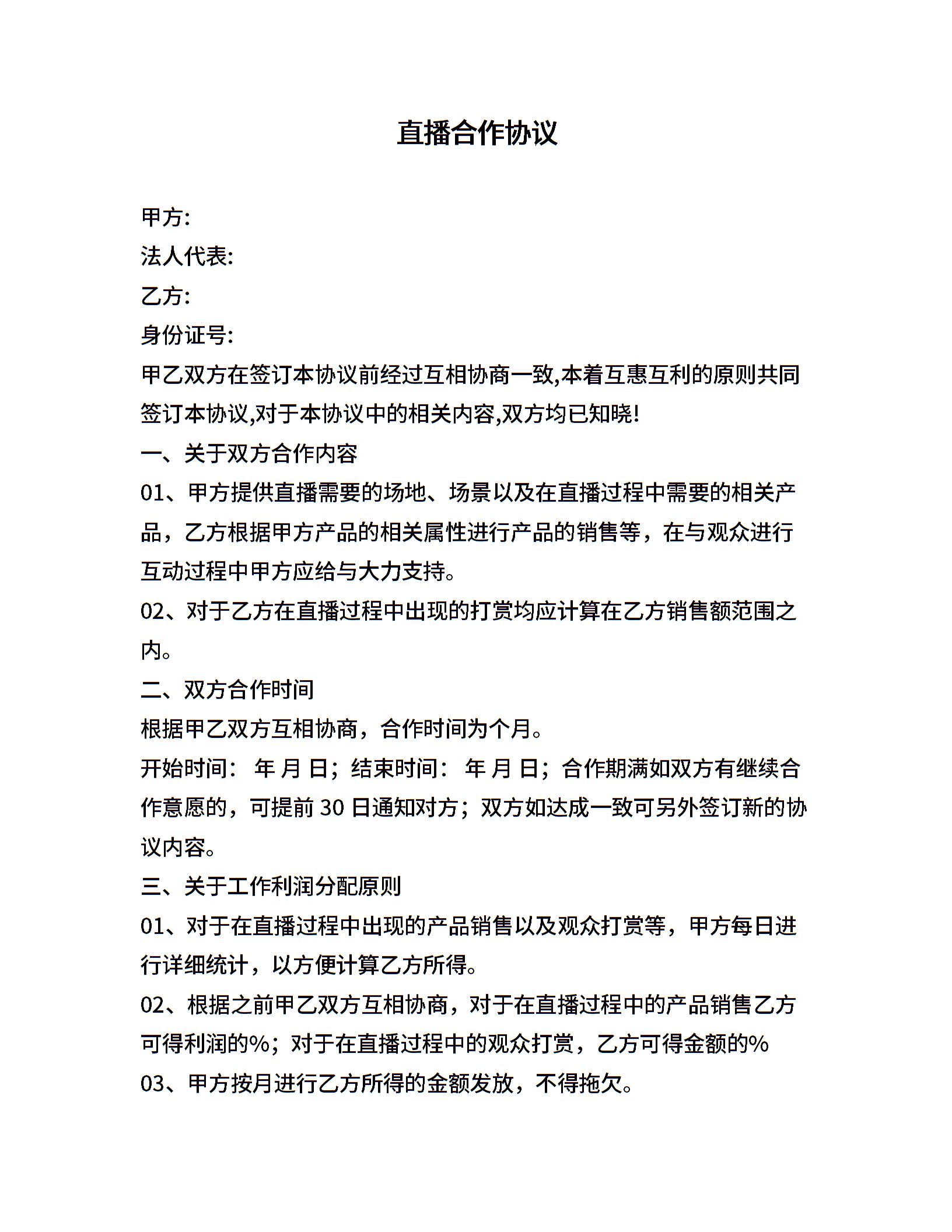 直播主播合作协议合同