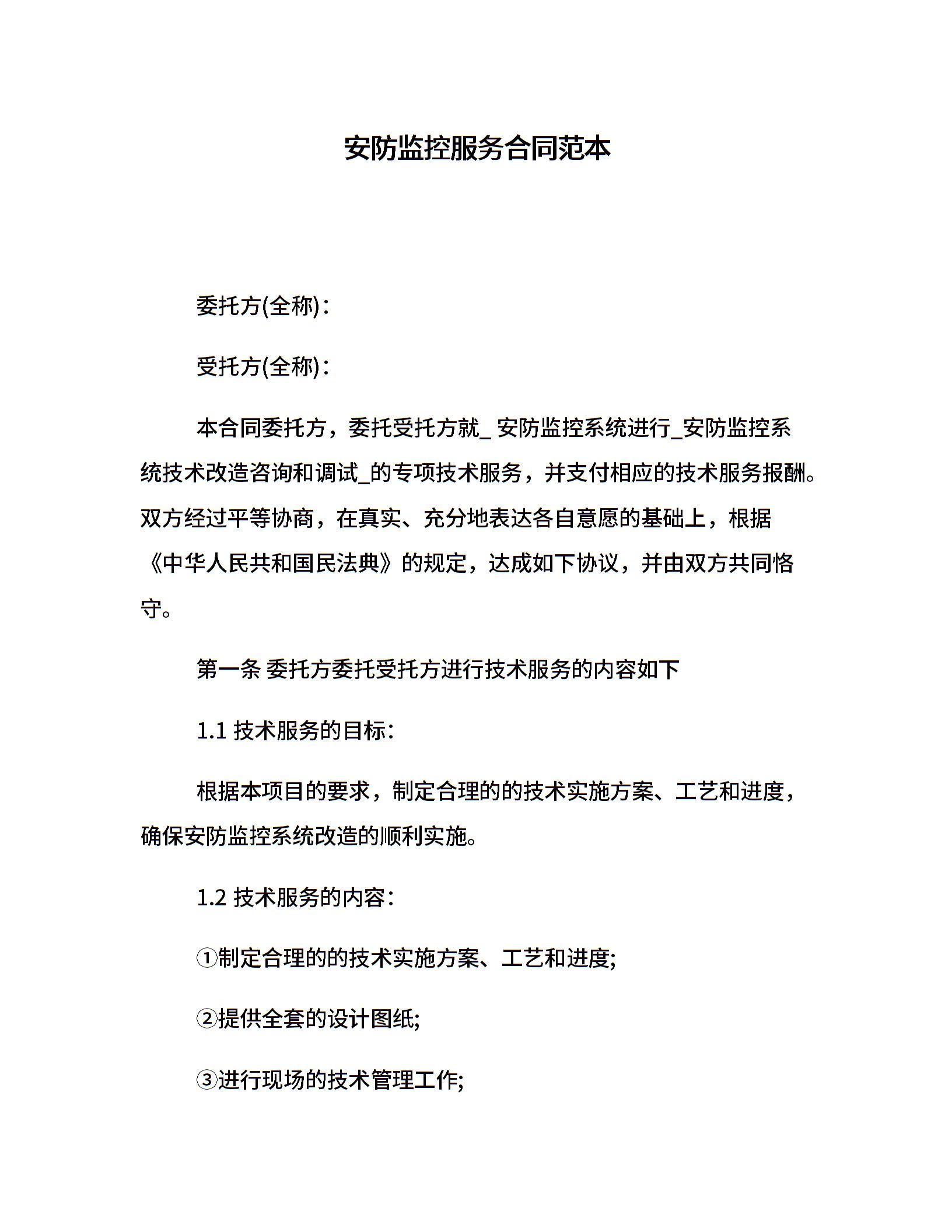 安防监控服务合同范本