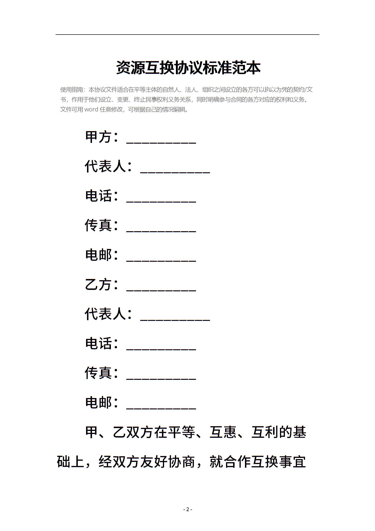 资源互换协议标准范本