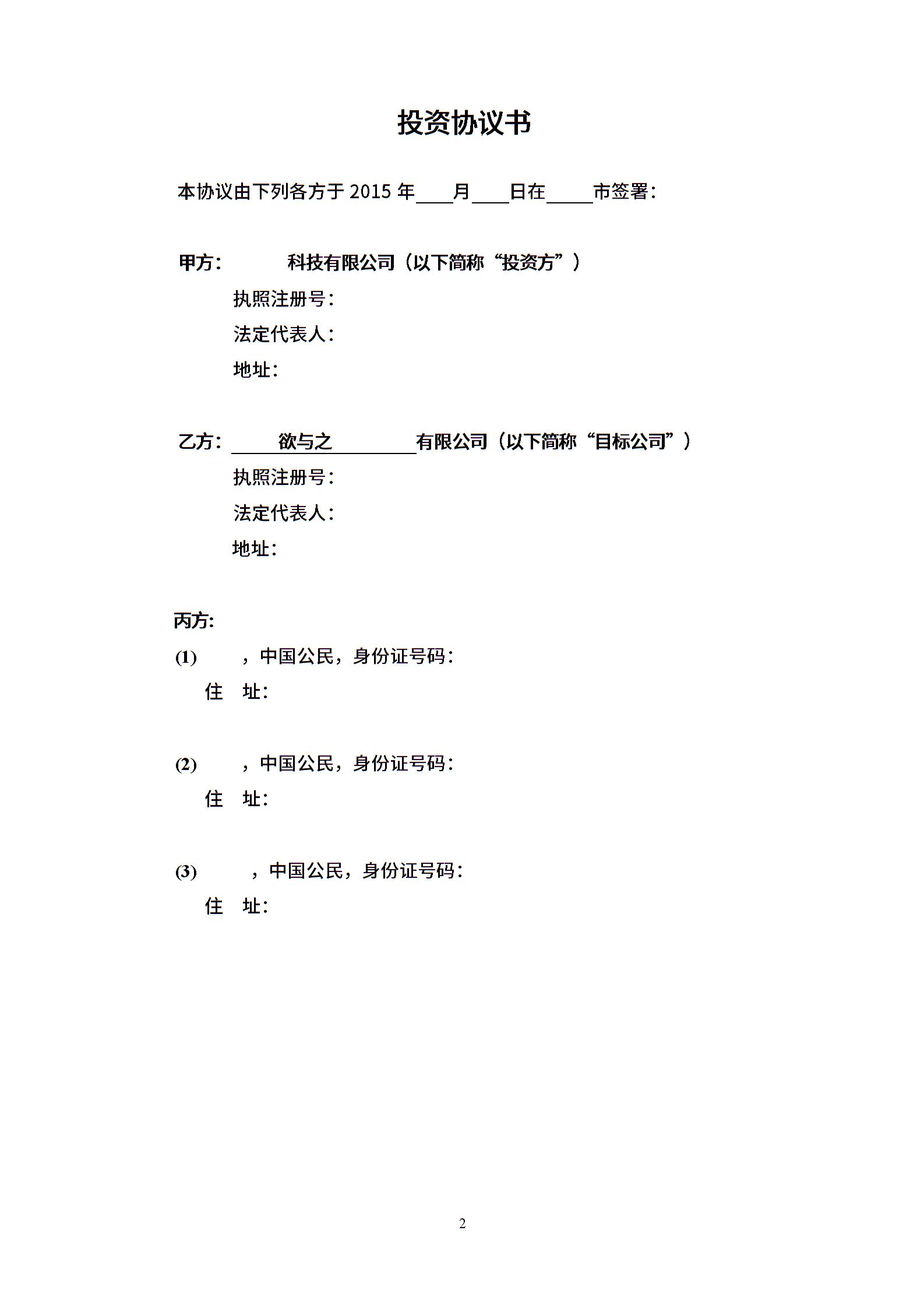 投资协议(增资)(2)