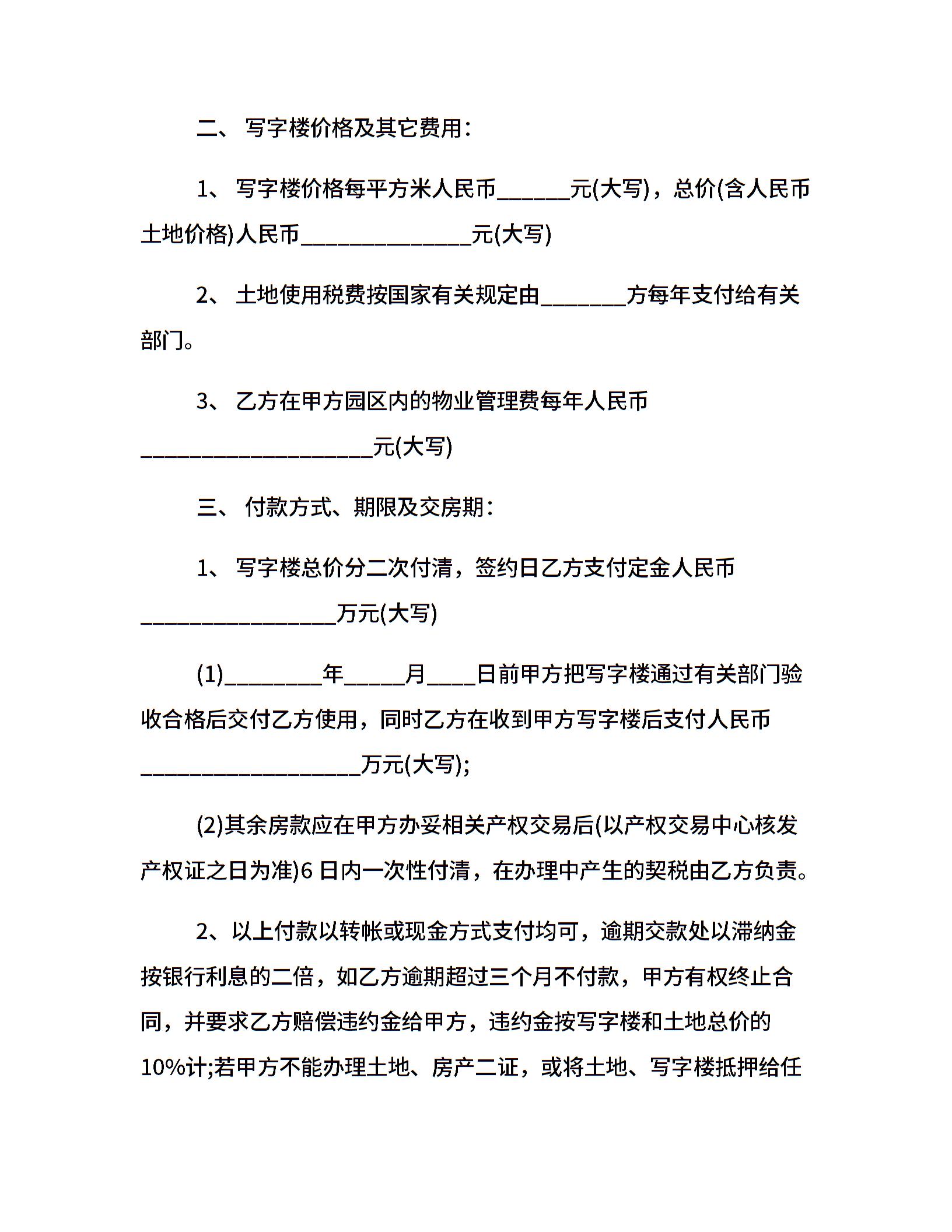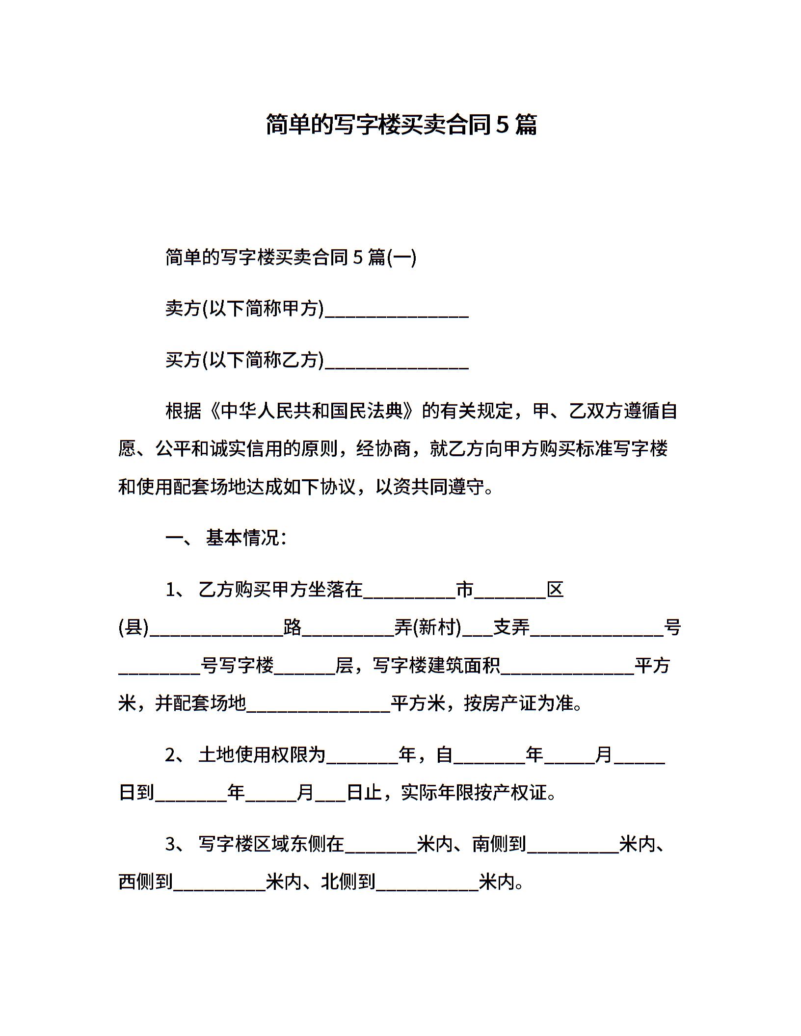 简单的写字楼买卖合同5篇