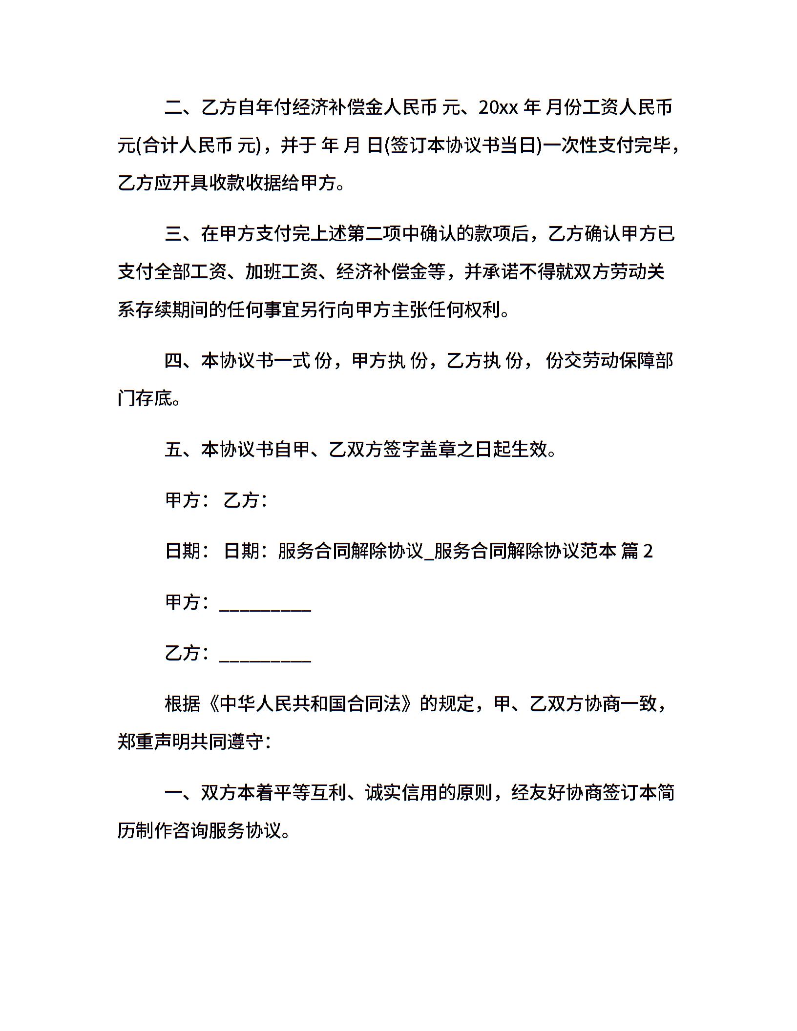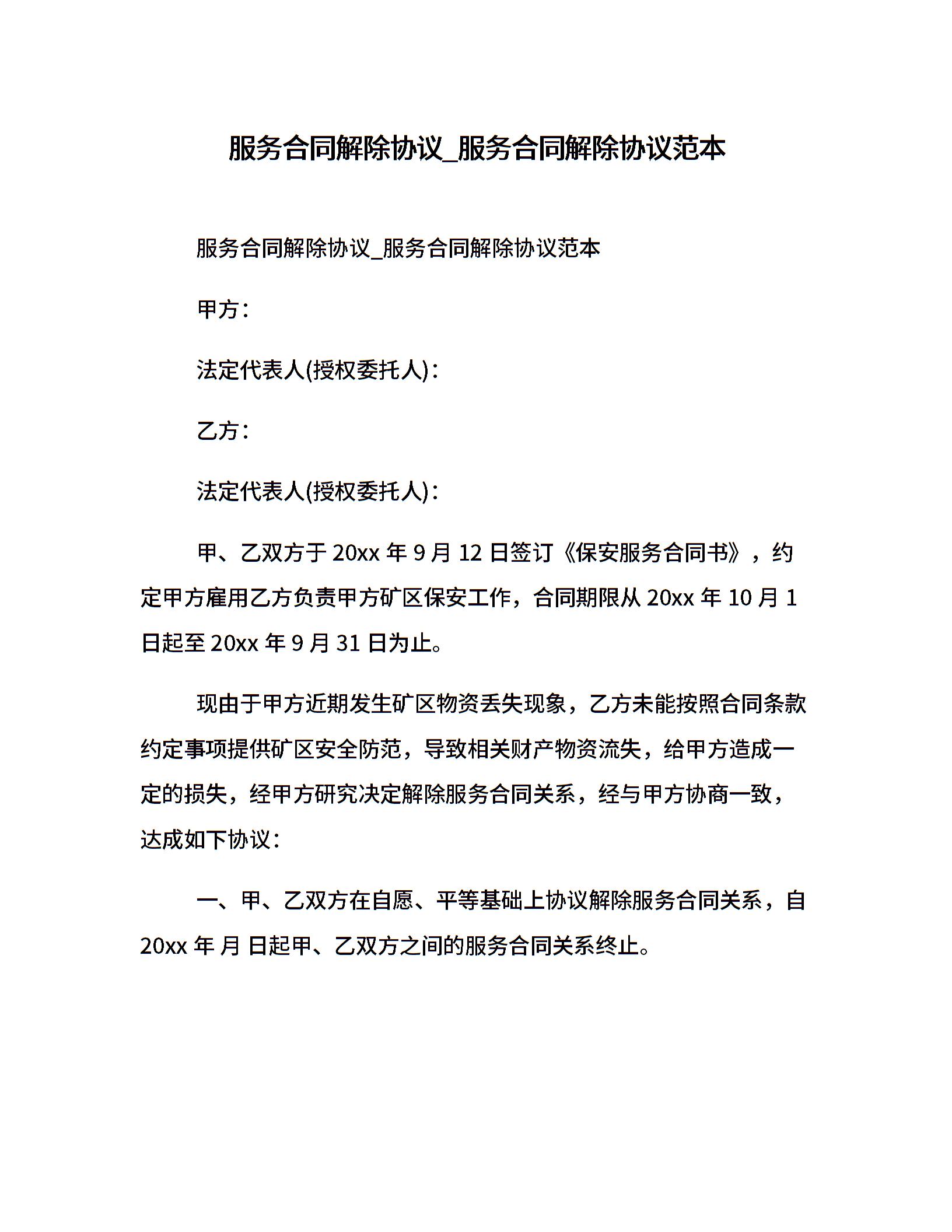 服务合同解除协议_服务合同解除协议范本