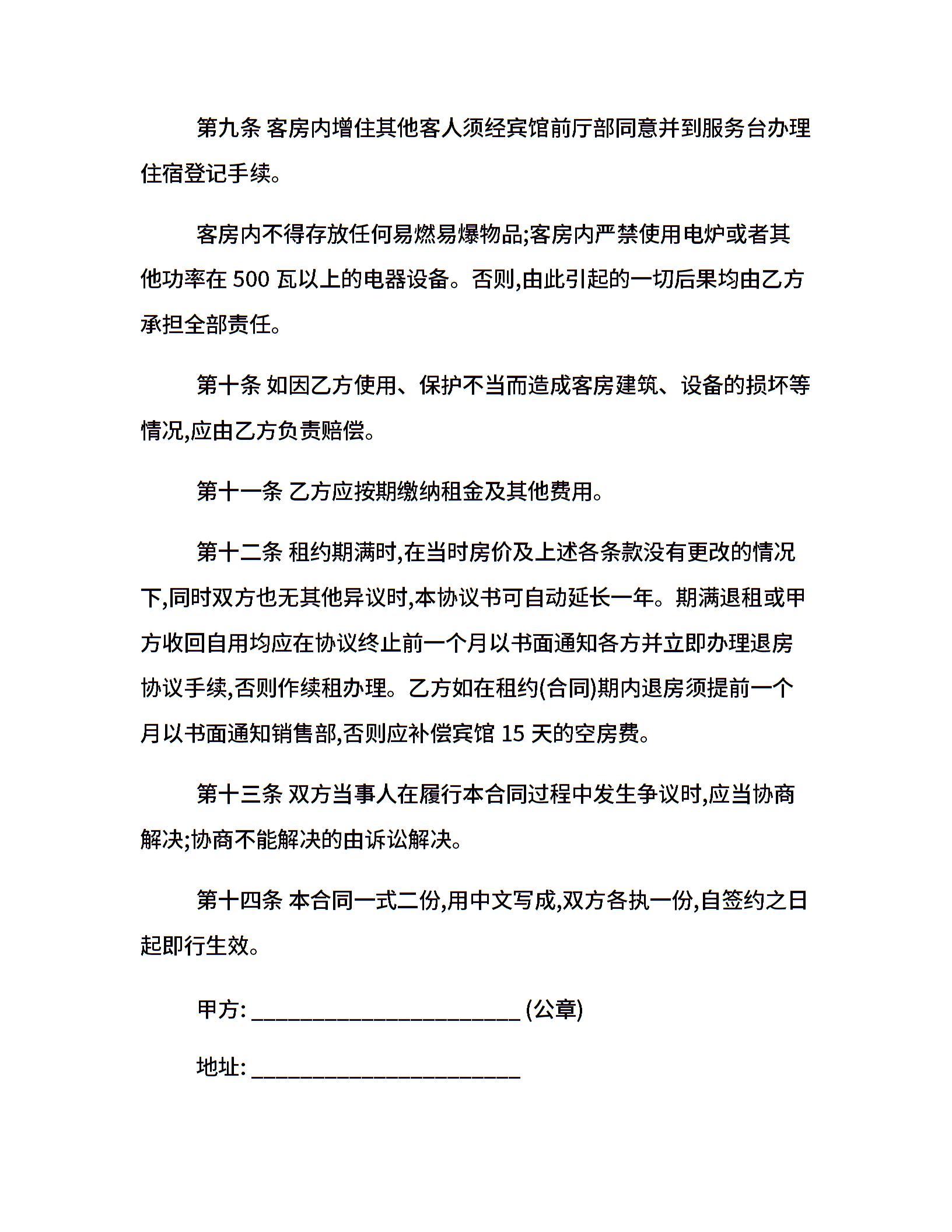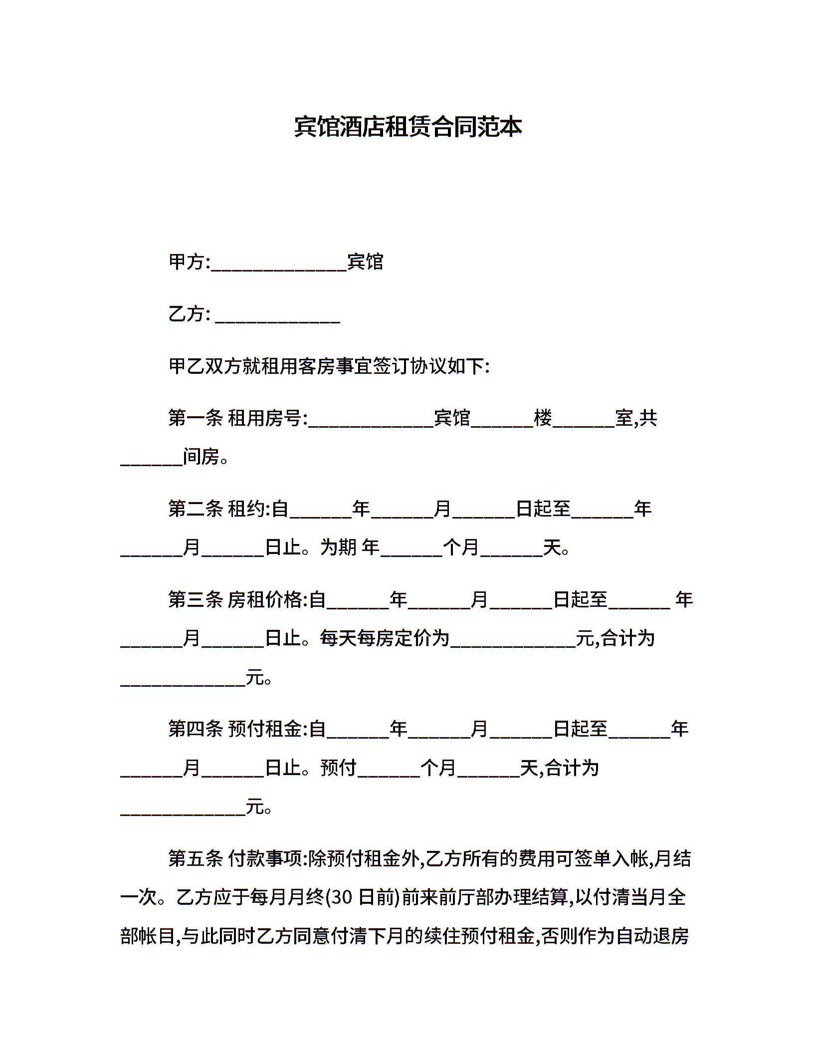 宾馆酒店租赁合同范本