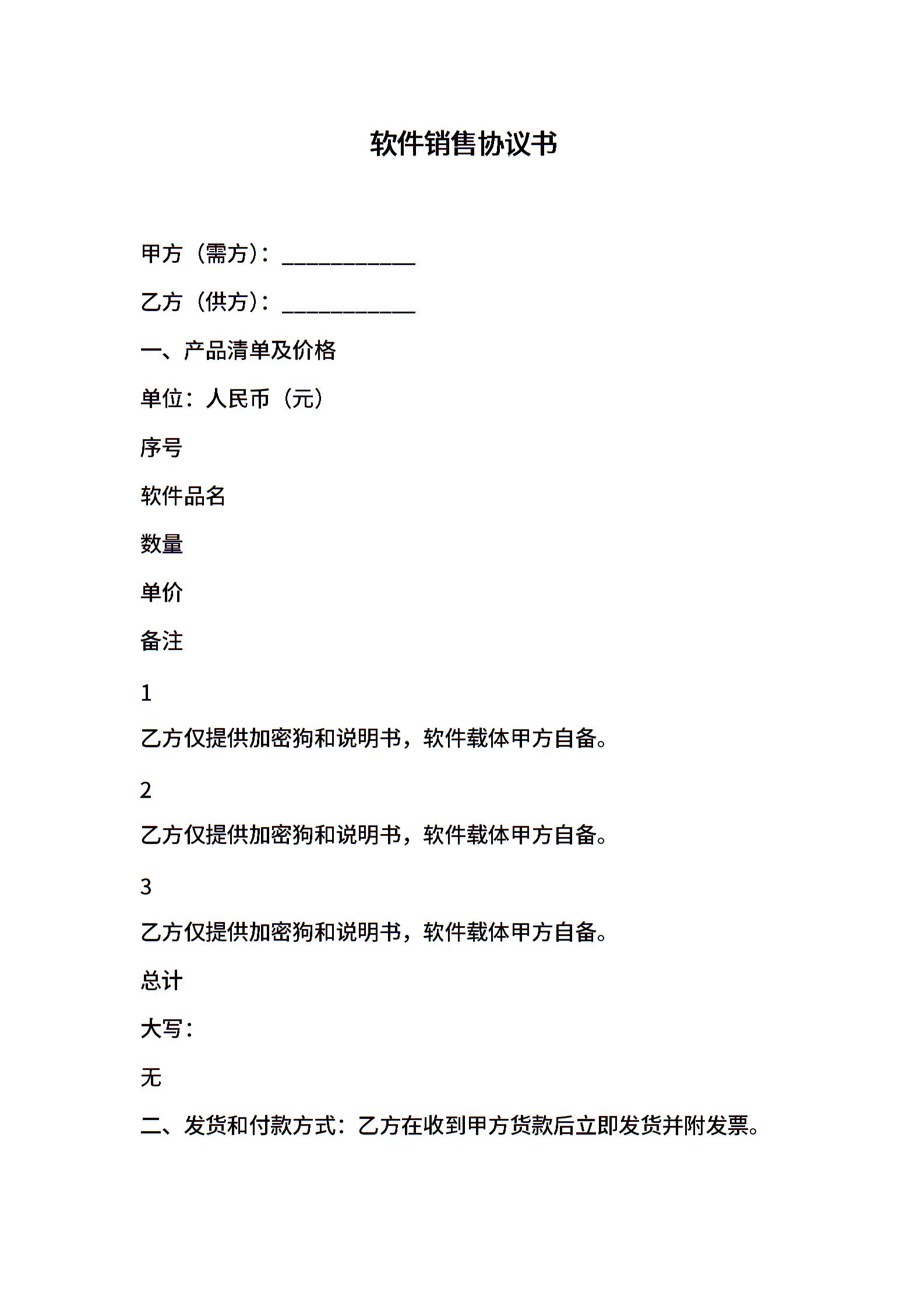 软件销售协议书