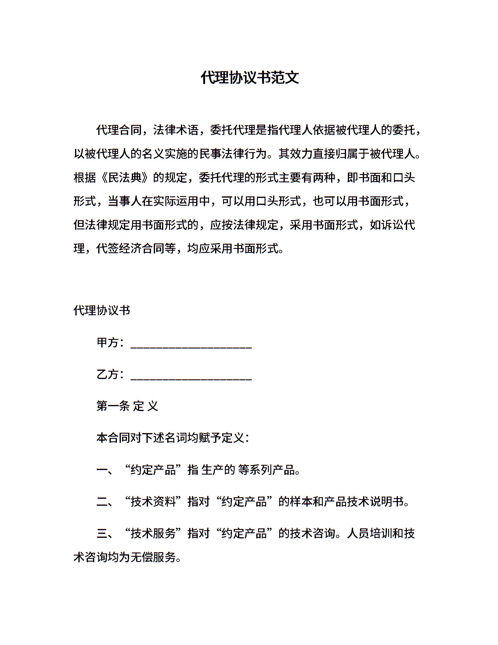 代理协议书范文