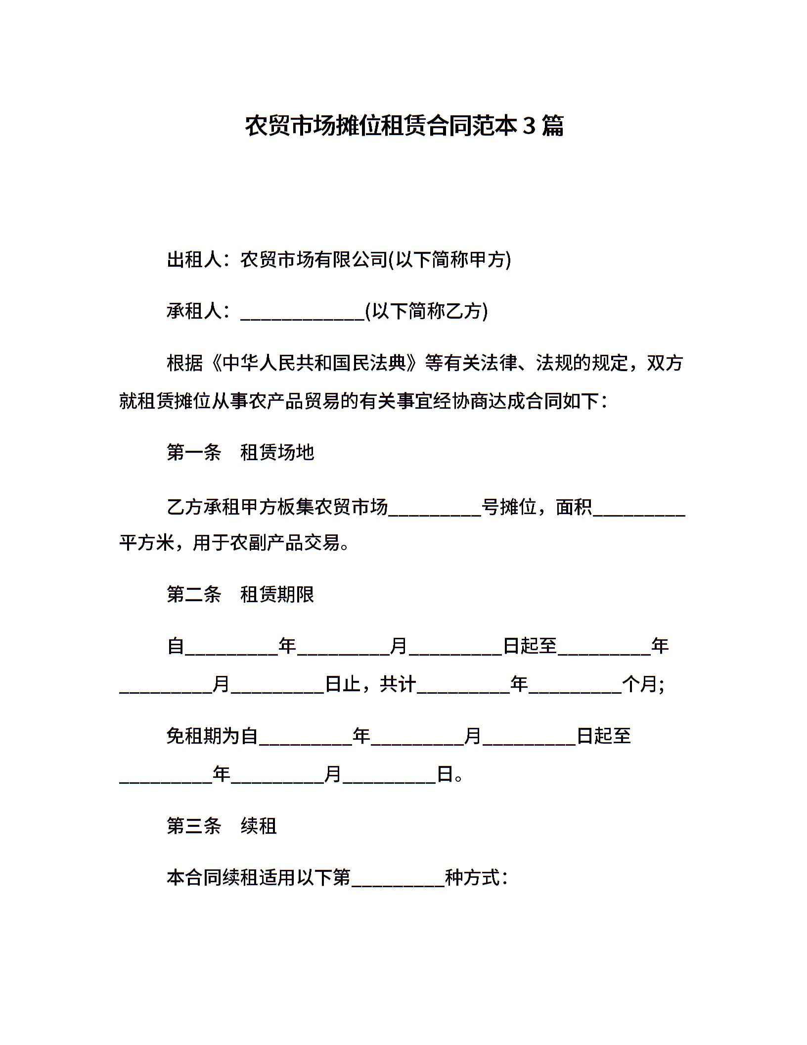农贸市场摊位租赁合同范本3篇