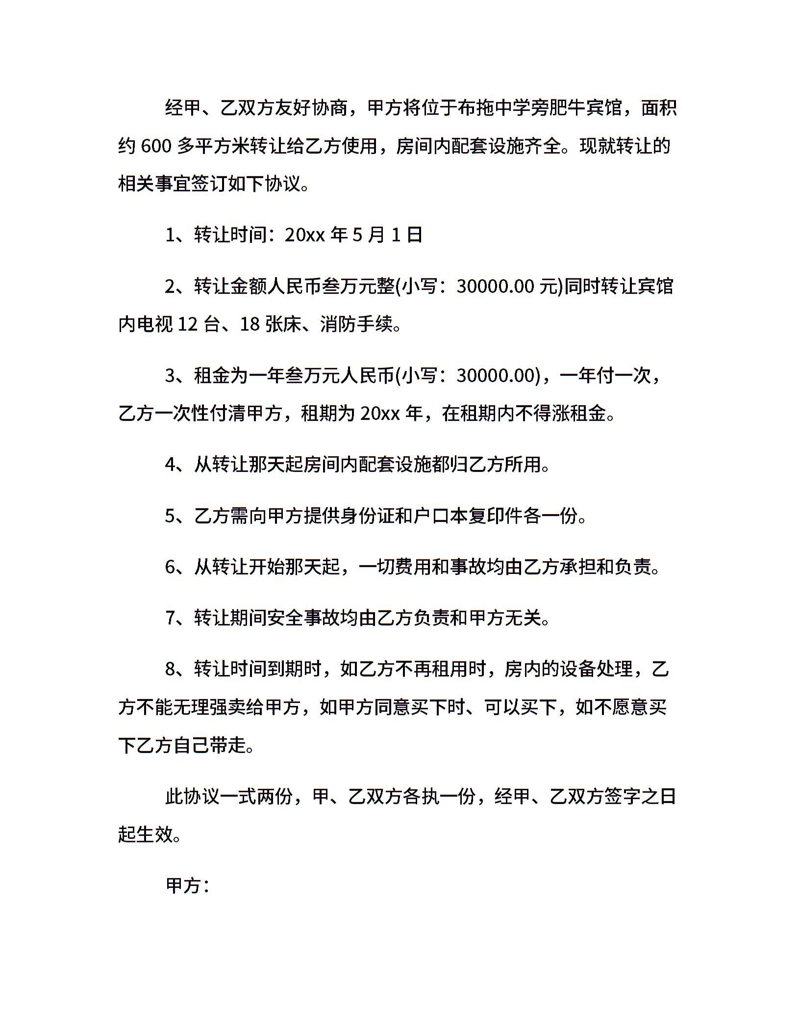 当前位置:量子办公 > 合同模板 > 转让合同 >