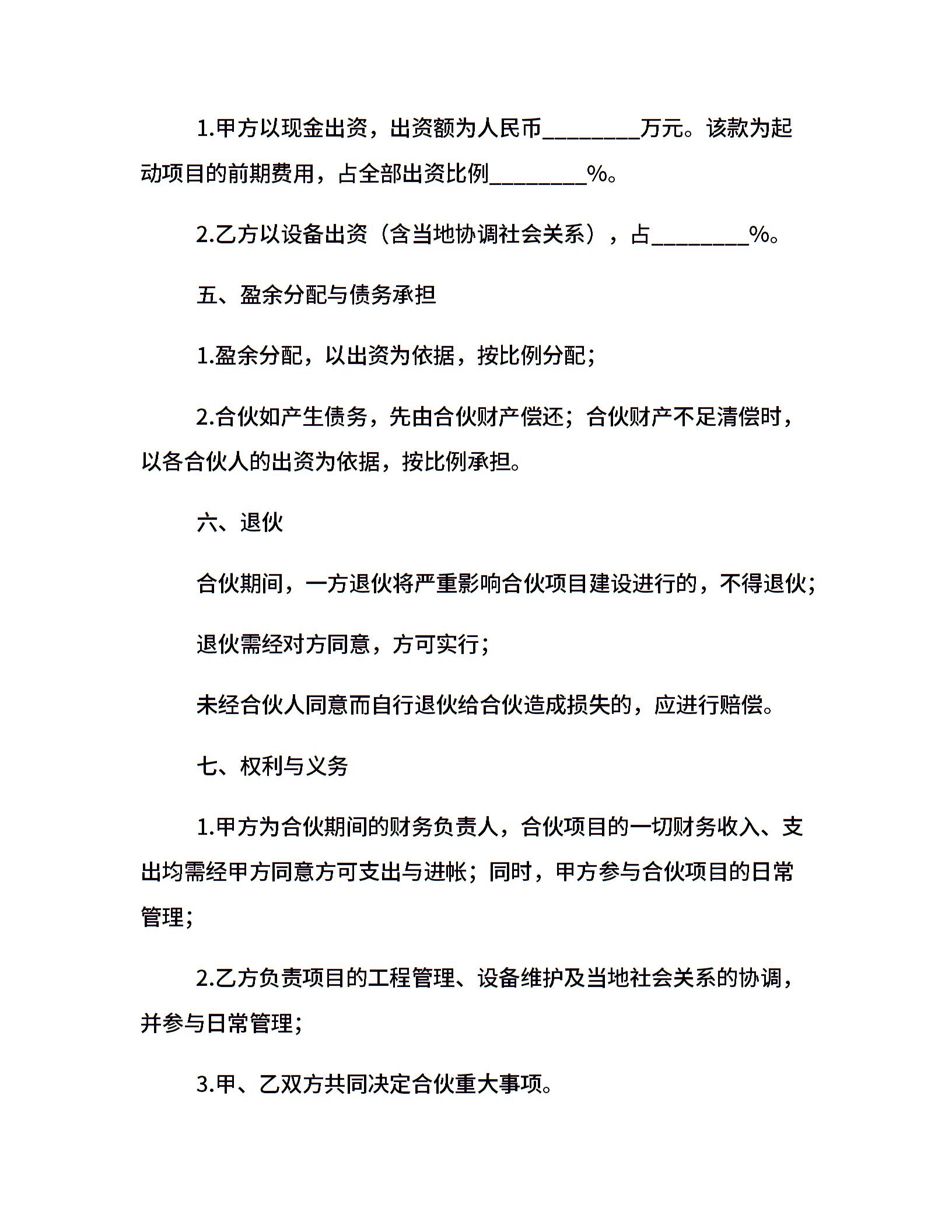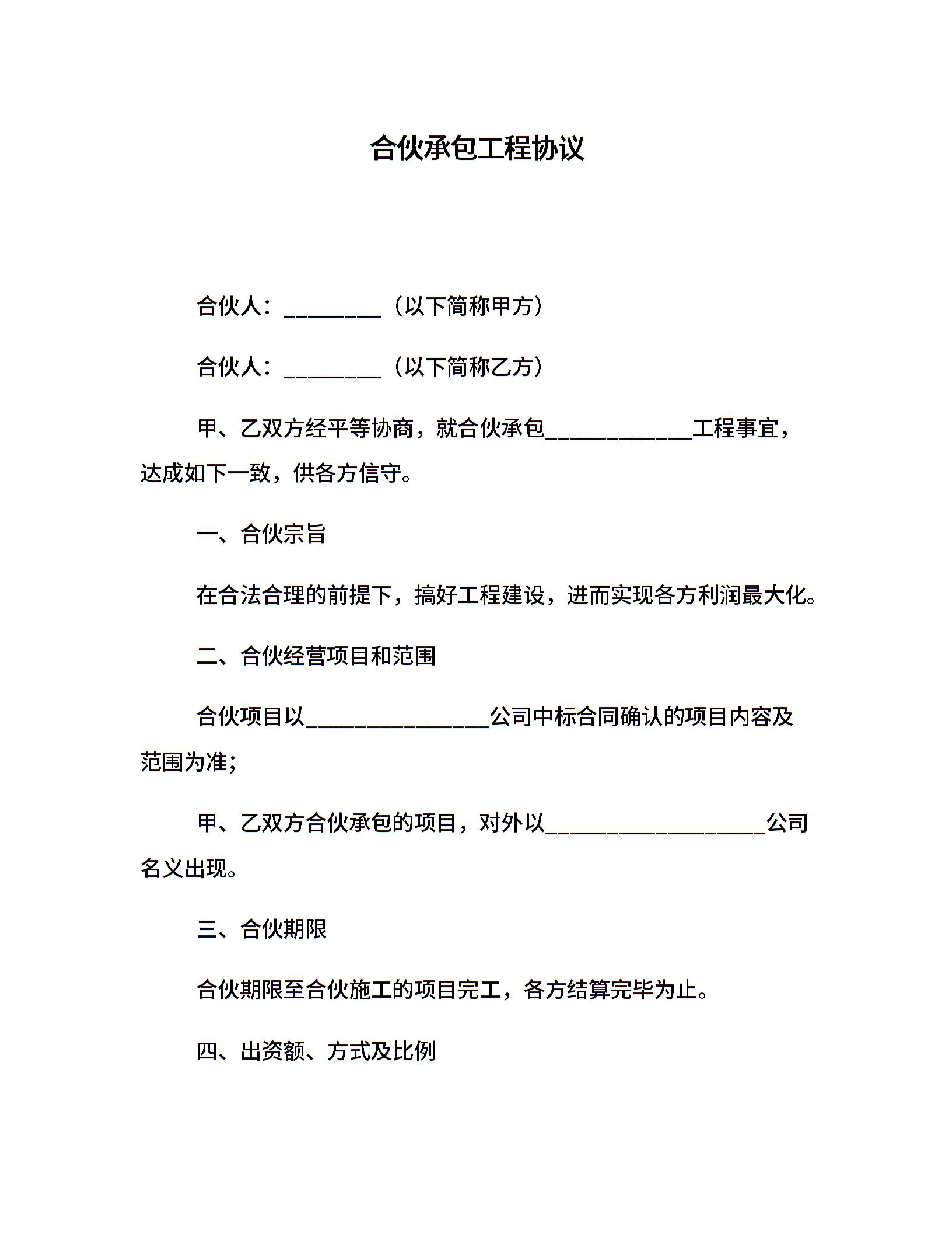 合伙承包工程协议