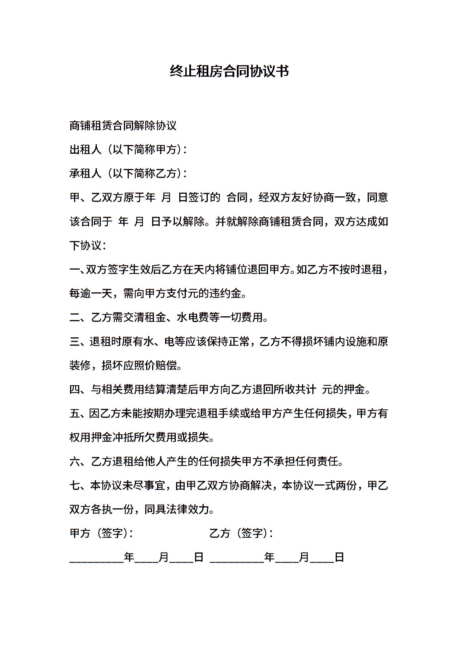 终止租房合同协议书
