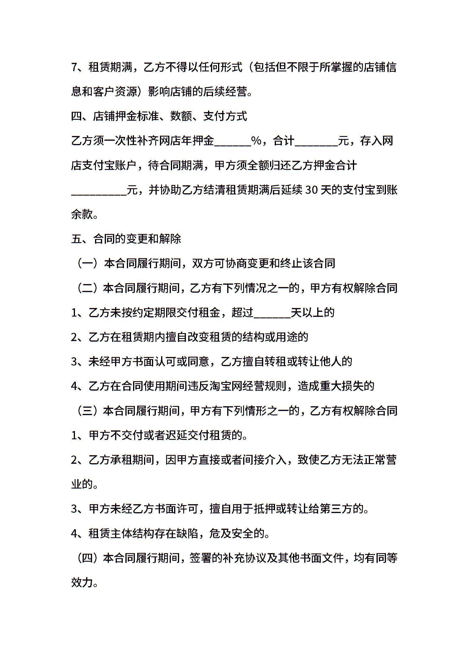 淘宝店铺出租合同
