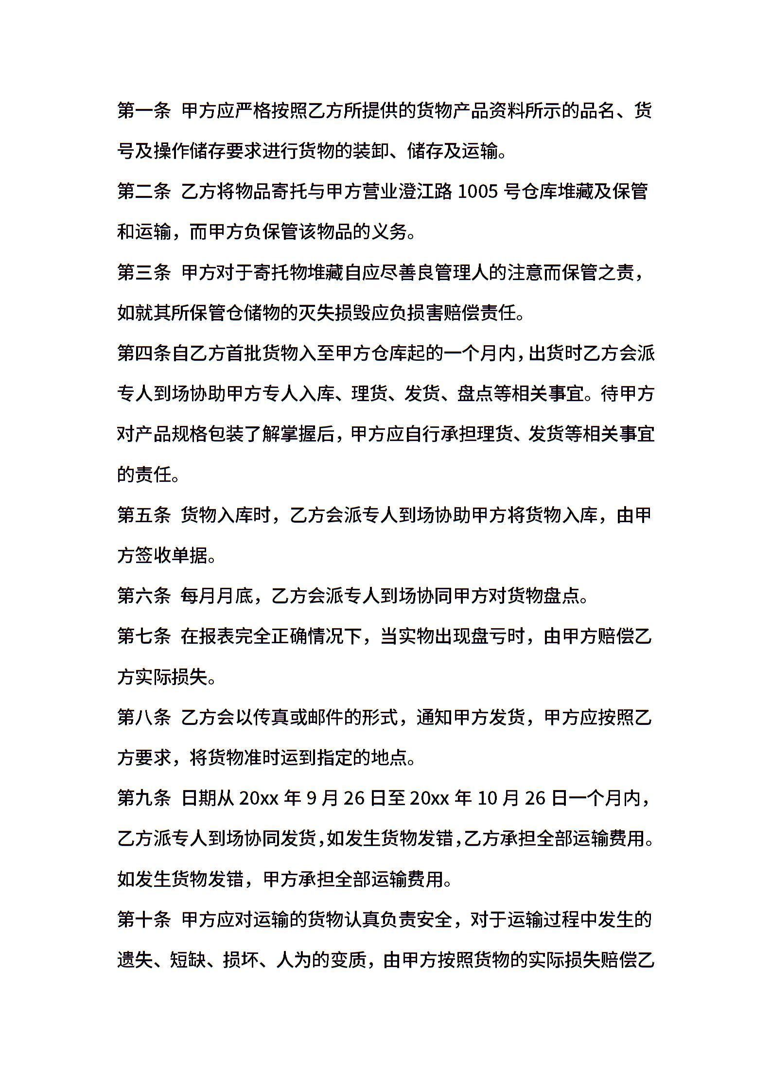 当前位置:量子办公 > 合同模板 > 仓储合同 >