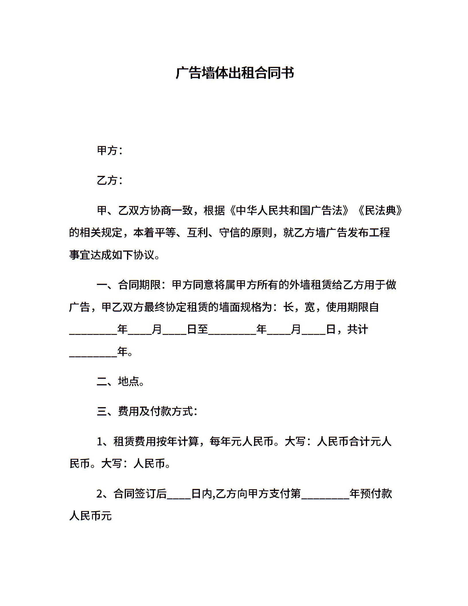 广告墙体出租合同书