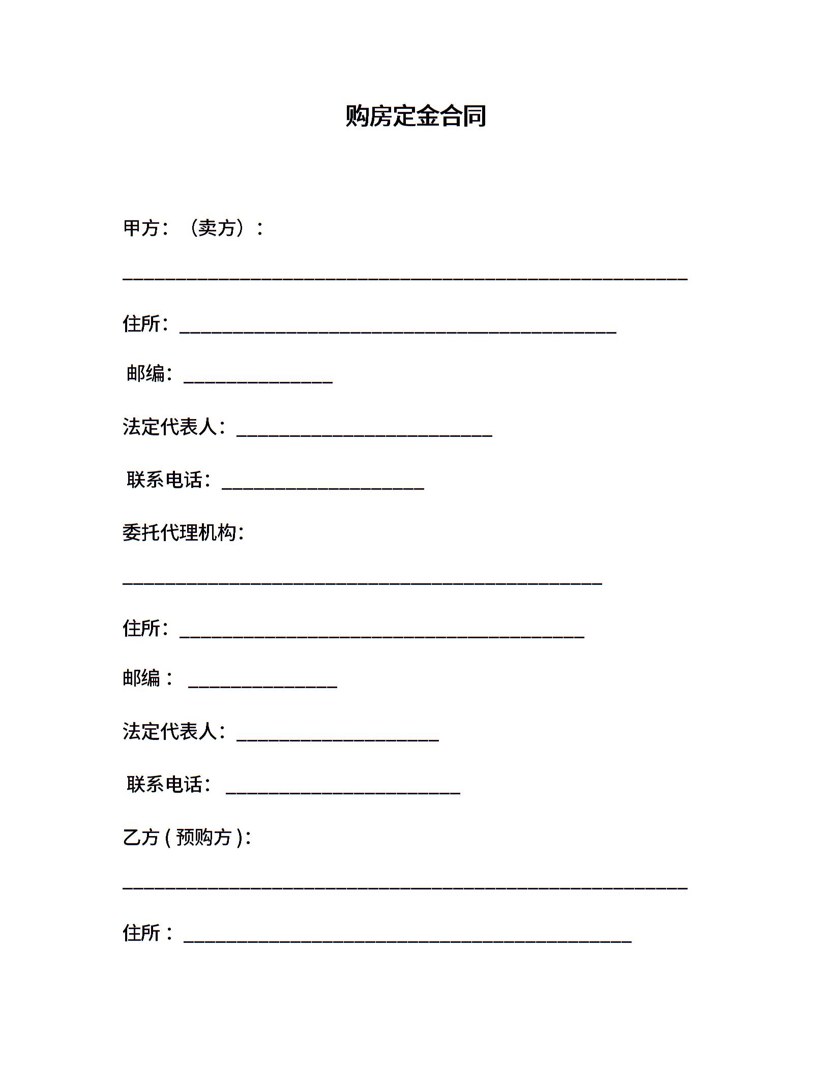 购房定金合同4篇