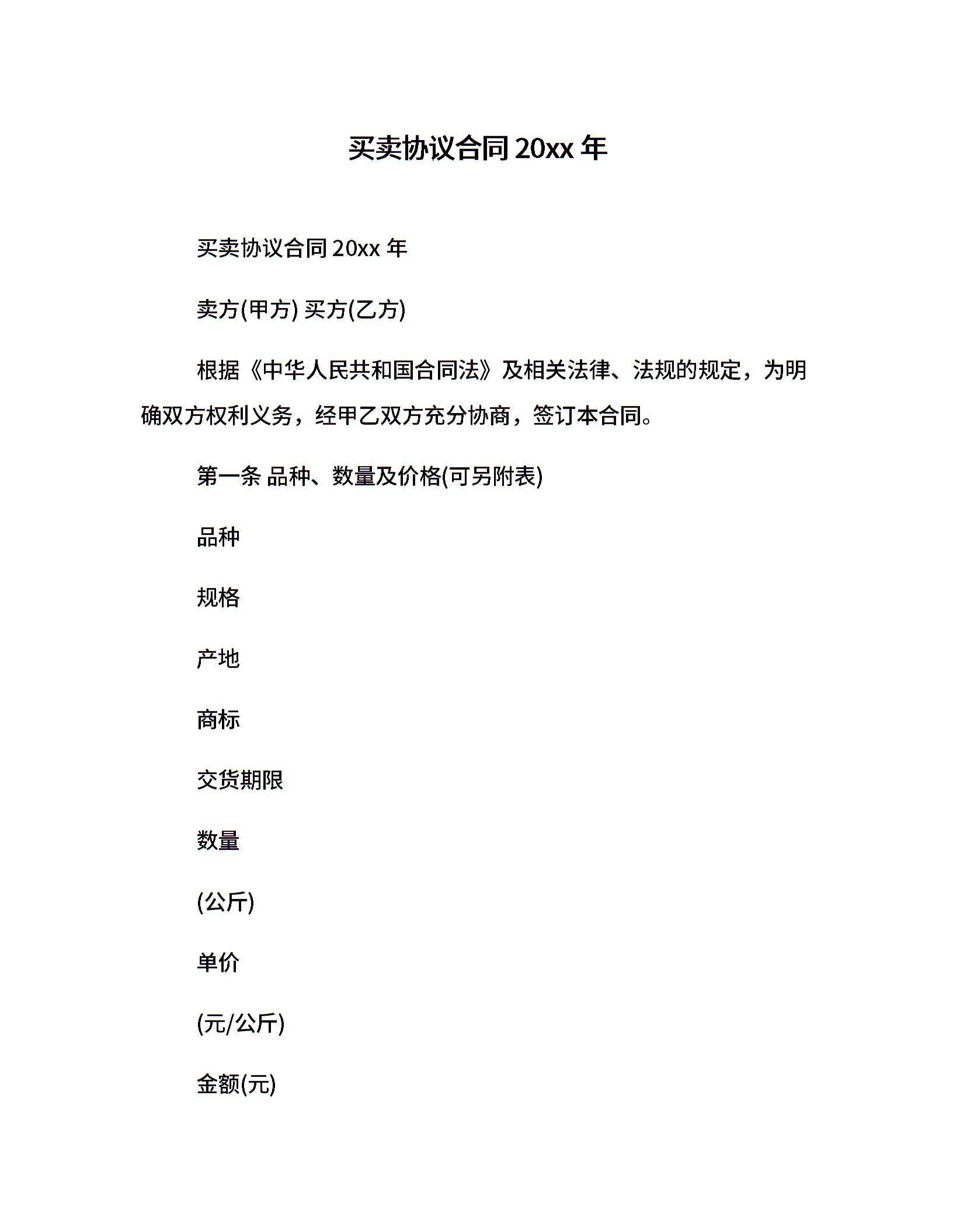 买卖协议合同20xx年