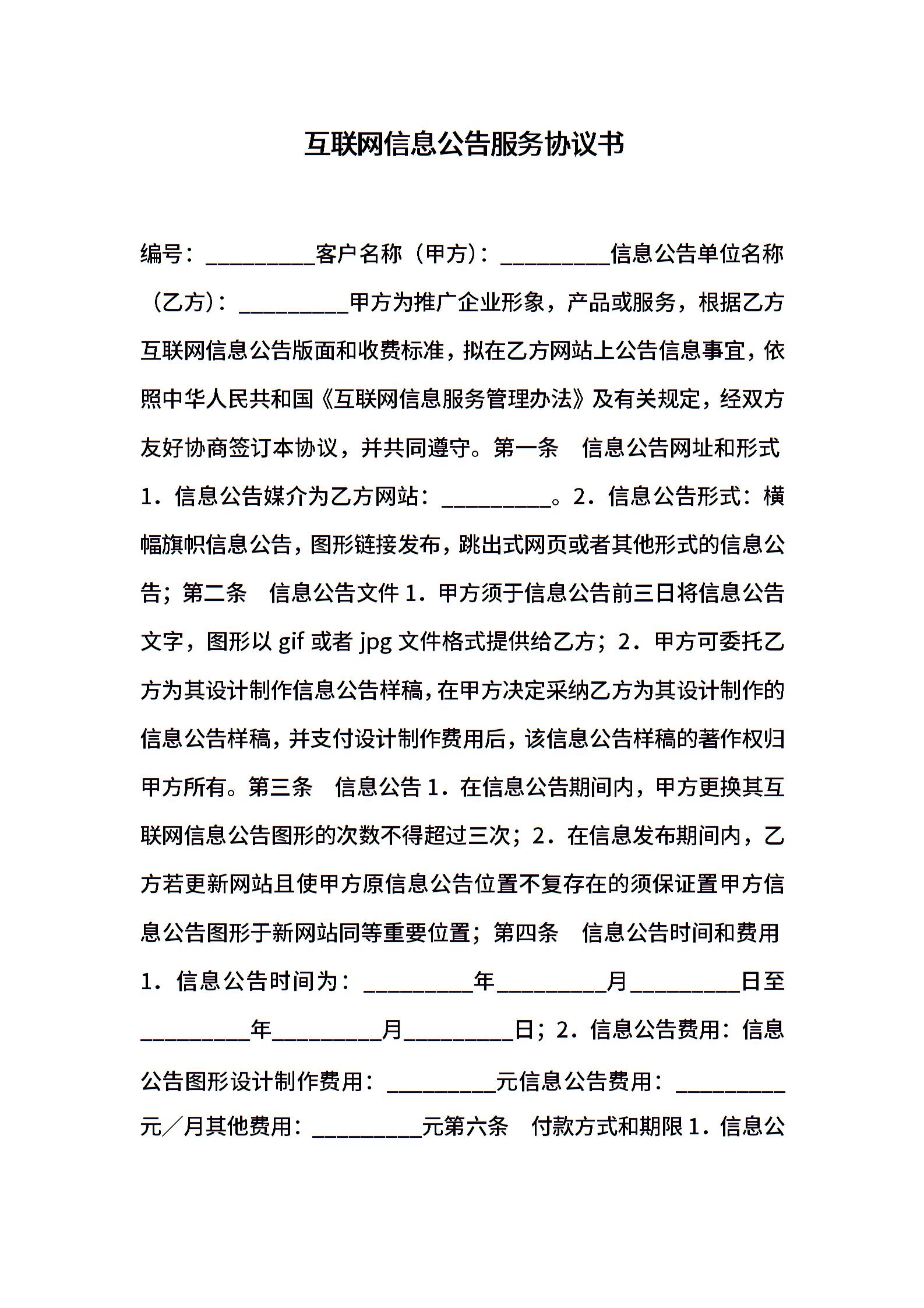 互联网信息公告服务协议书