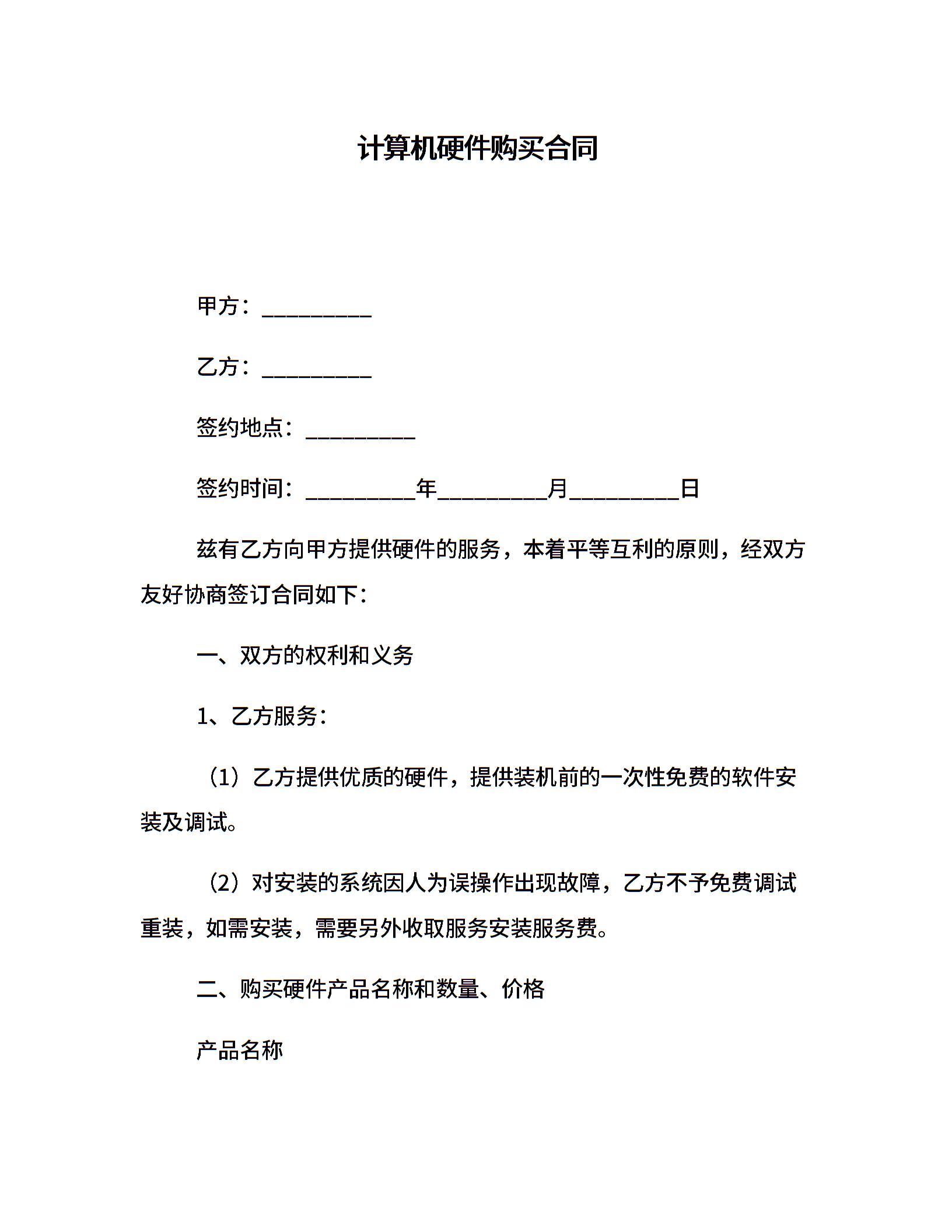 计算机硬件购买合同