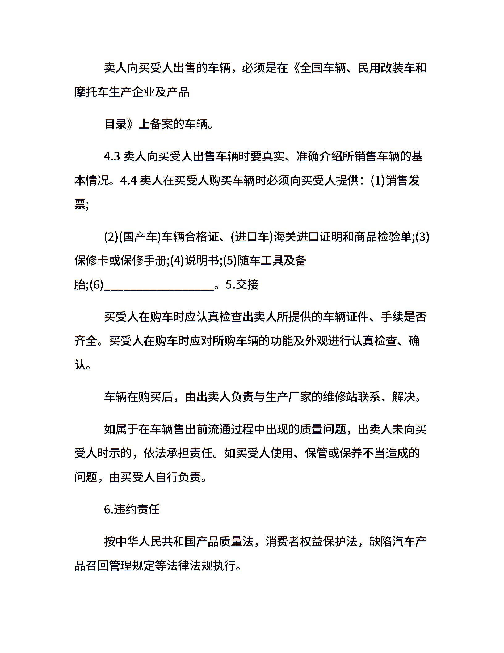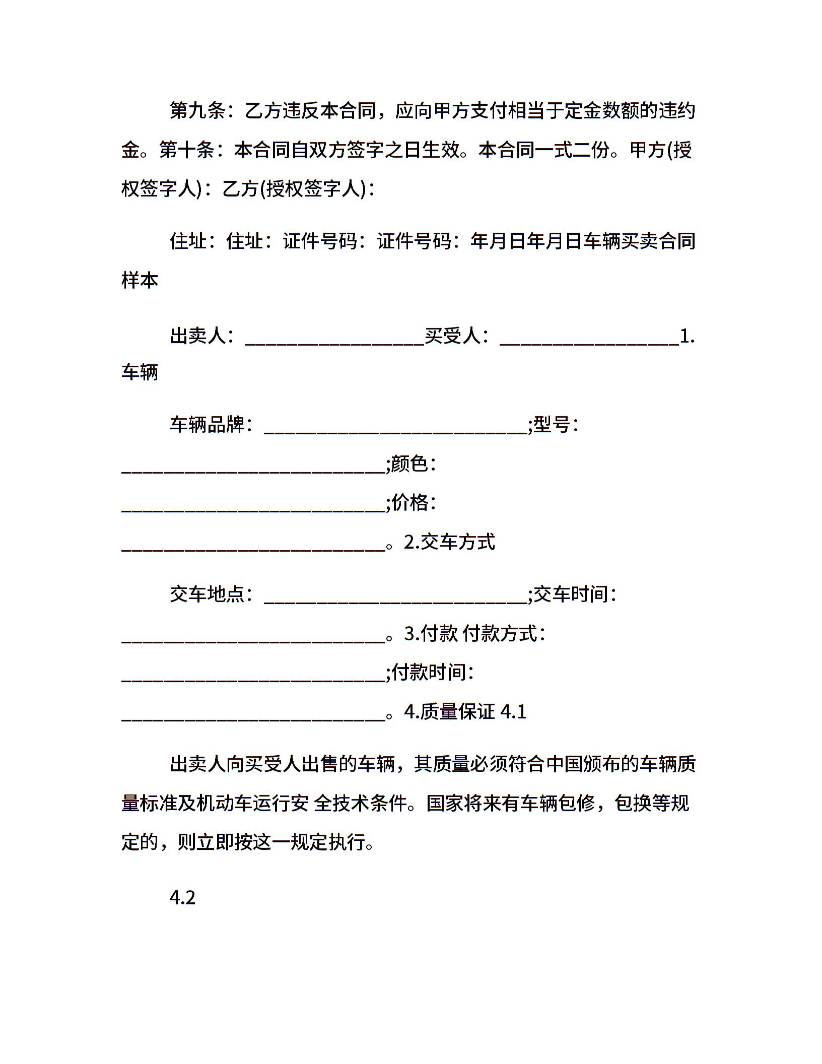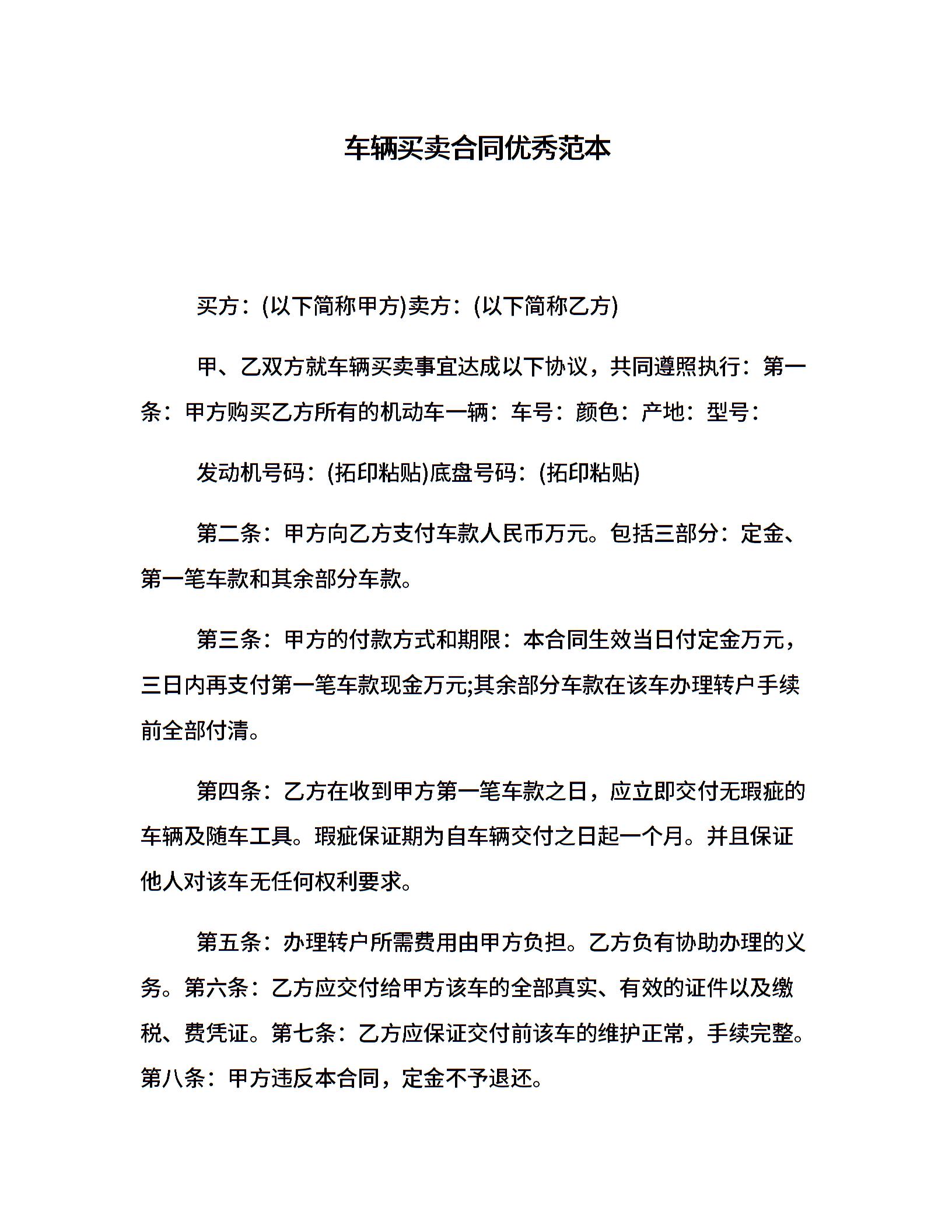 车辆买卖合同优秀范本