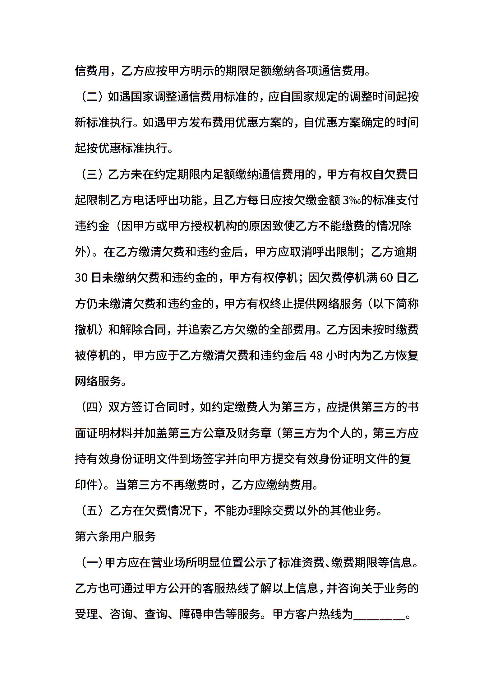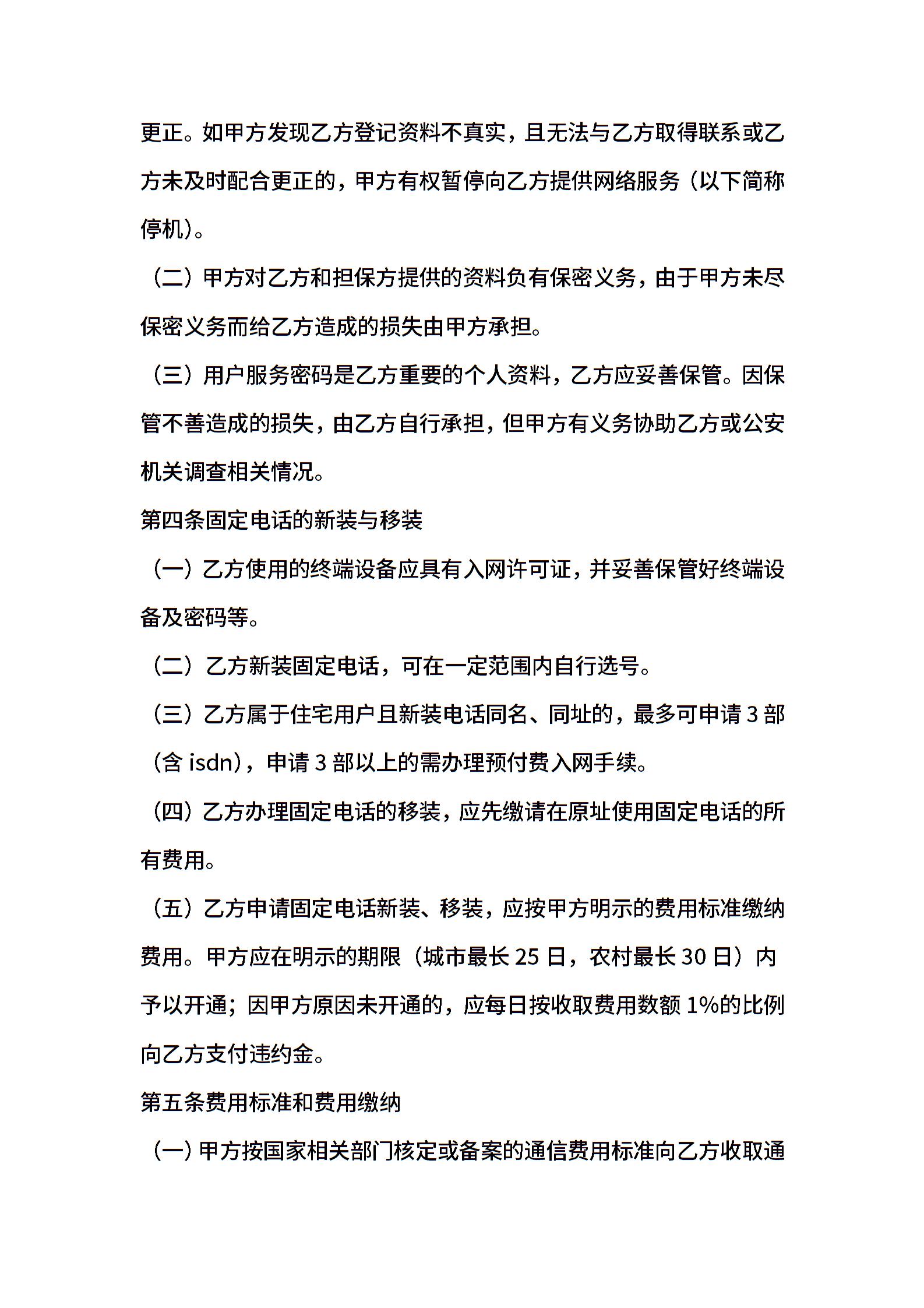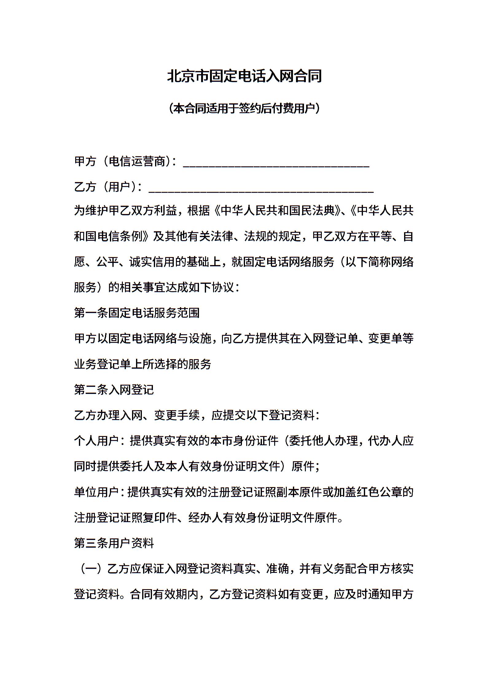 XX市固定电话入网合同(本合同适用于签约后付费用户)