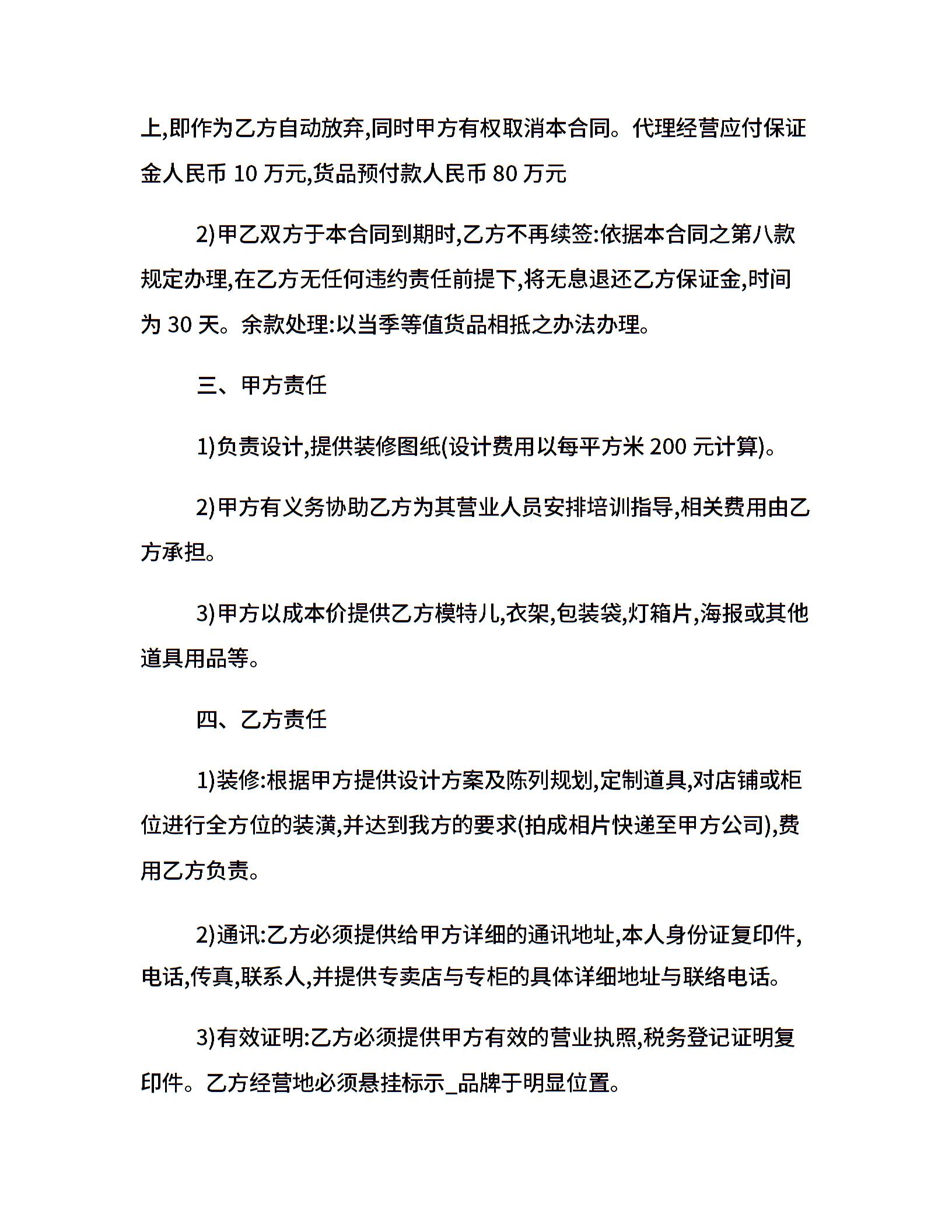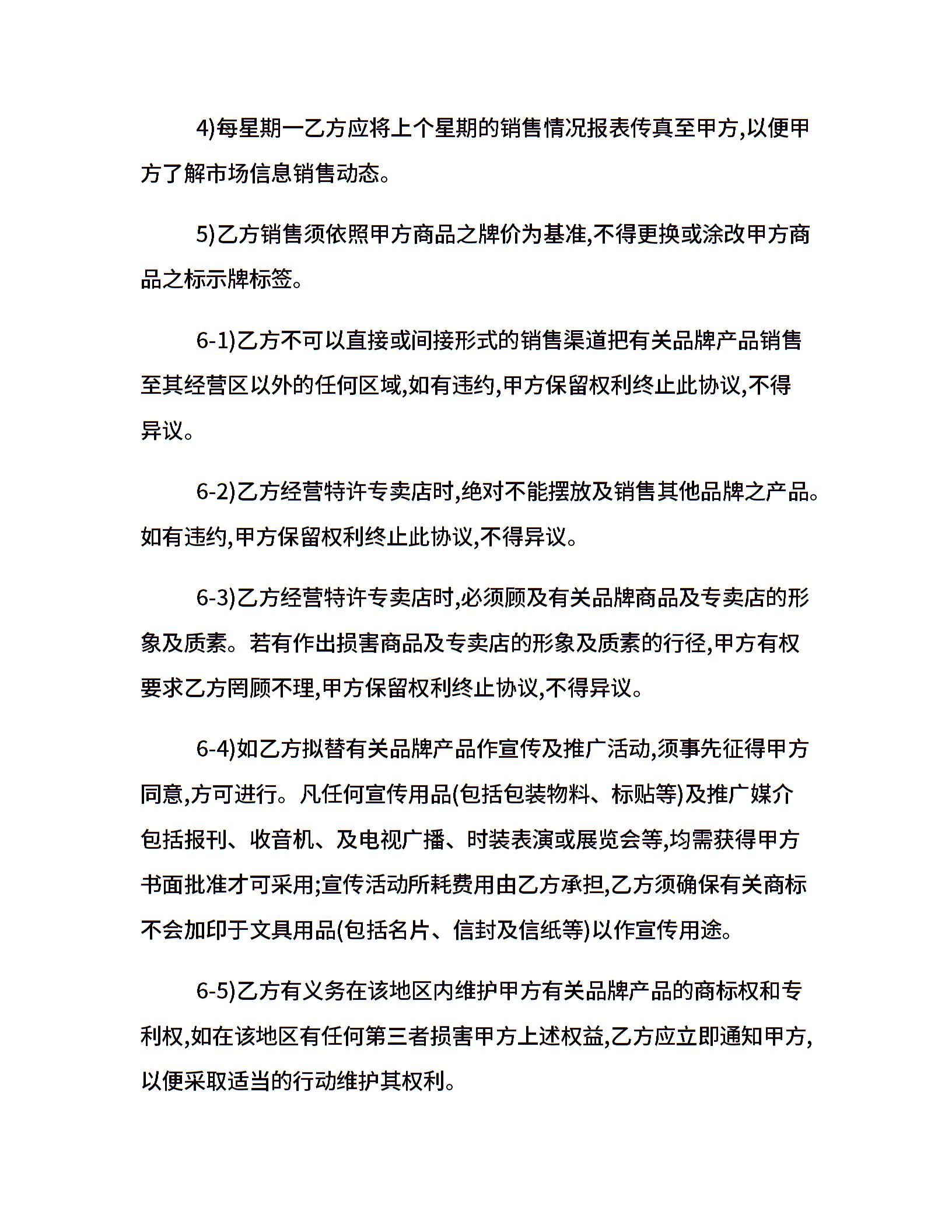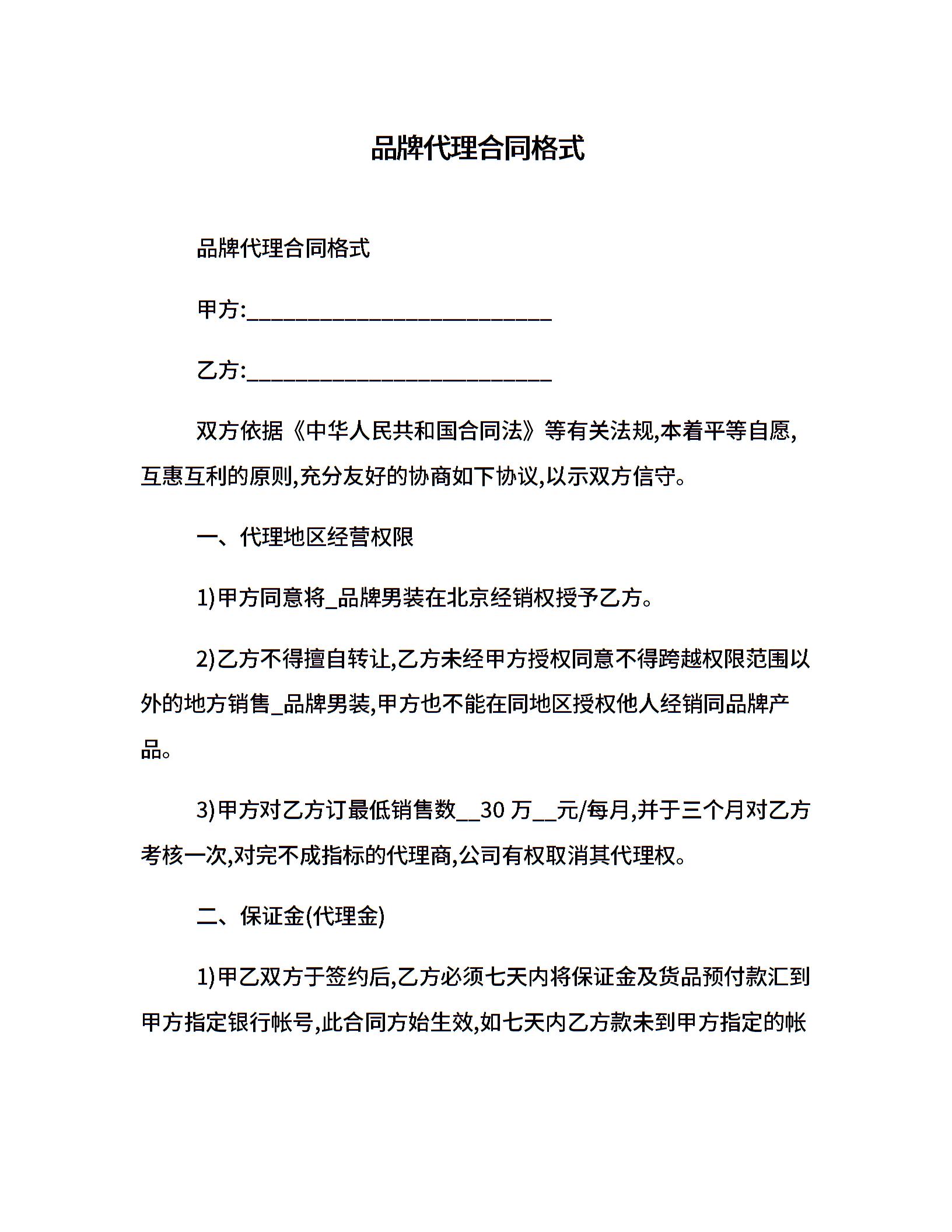 品牌代理合同格式