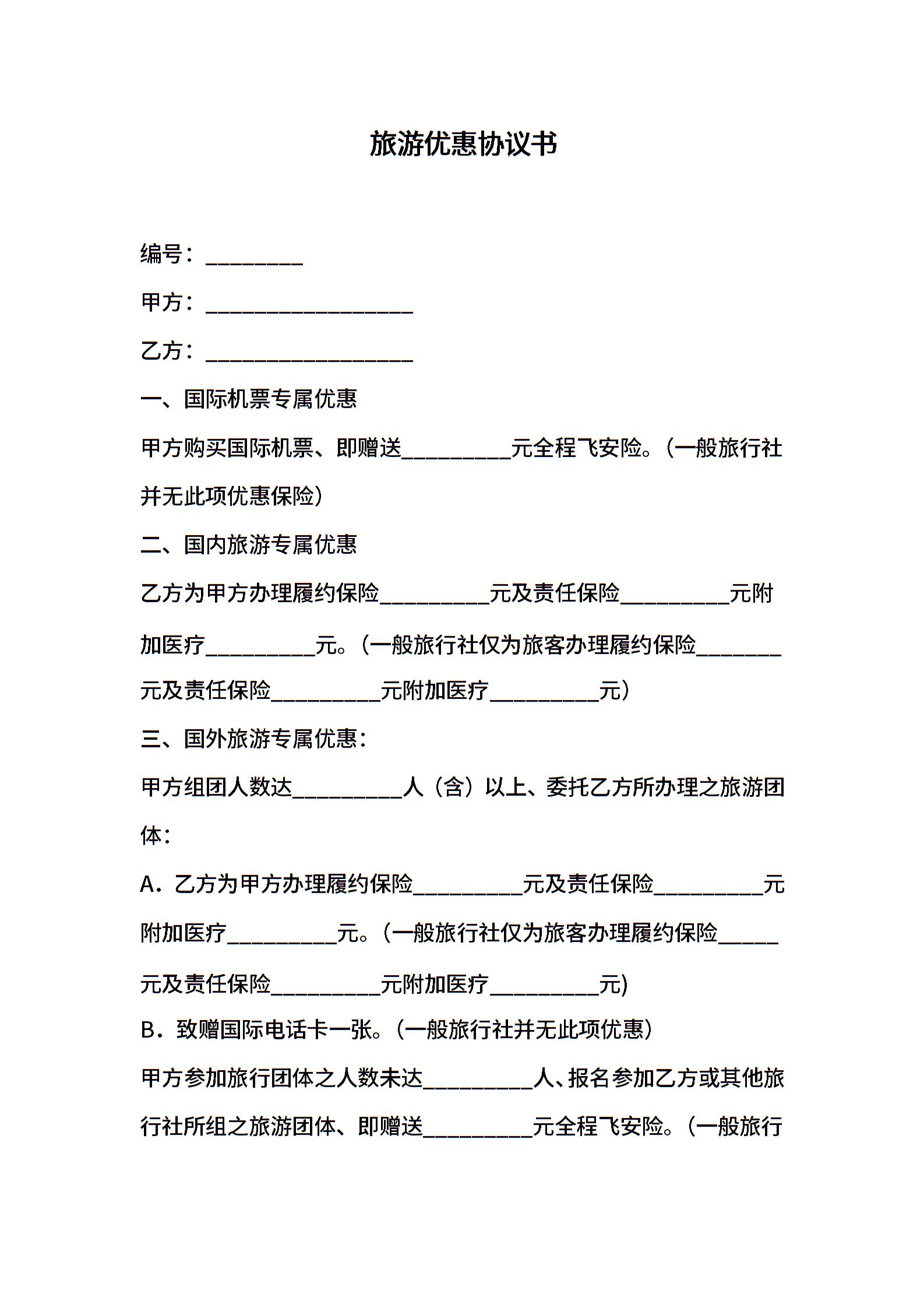 旅游优惠协议书