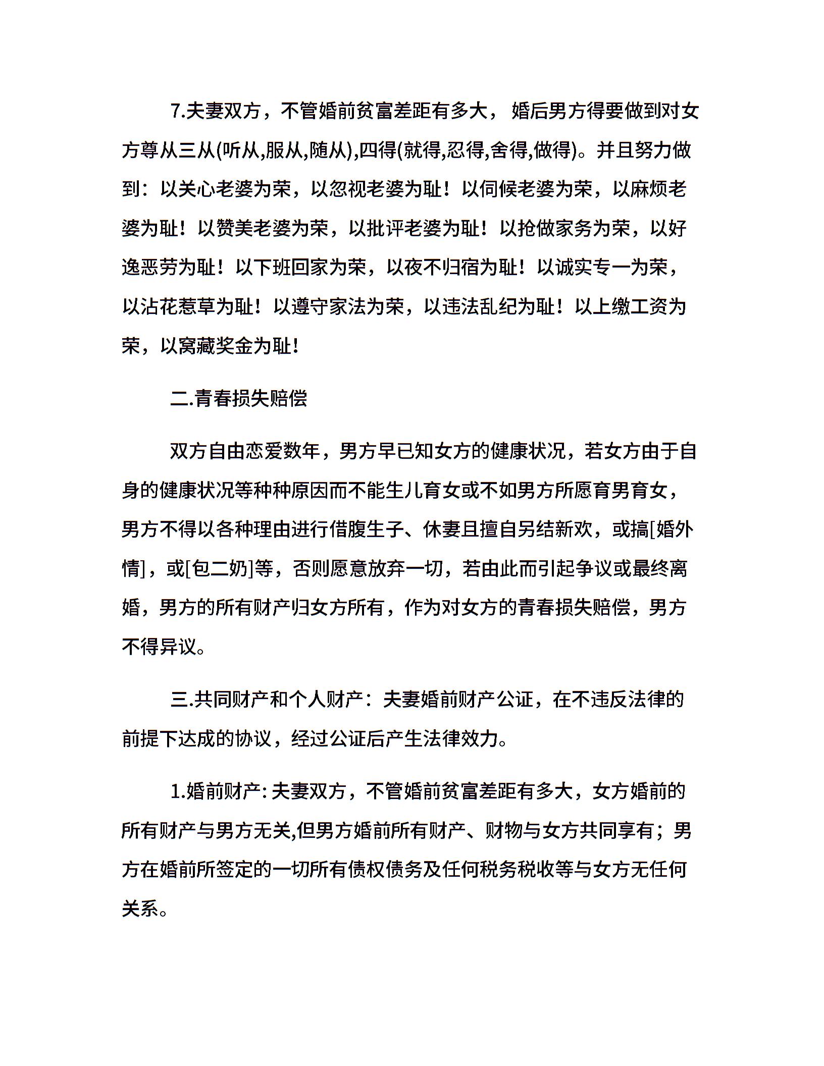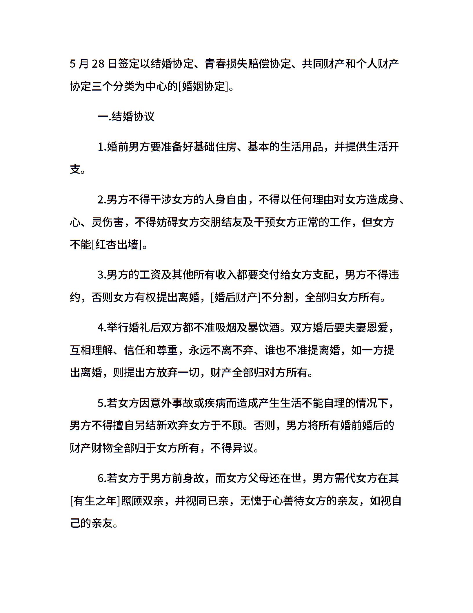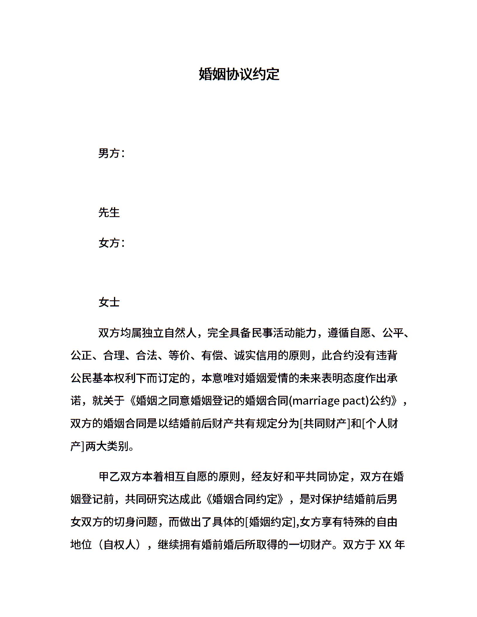 婚姻协议约定